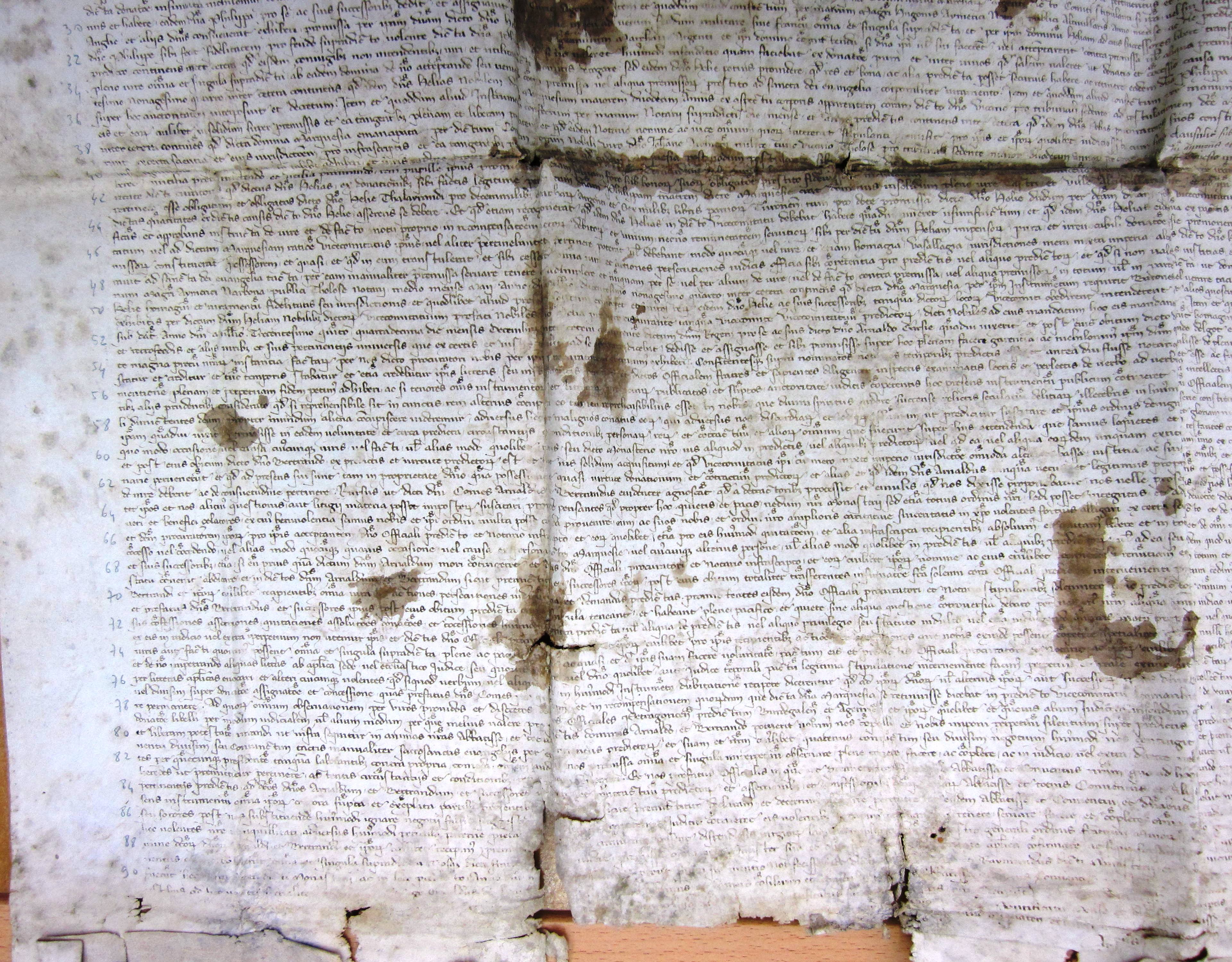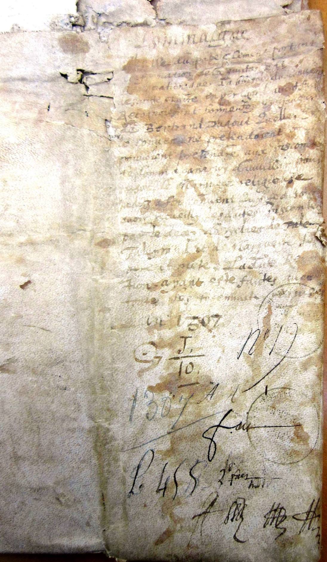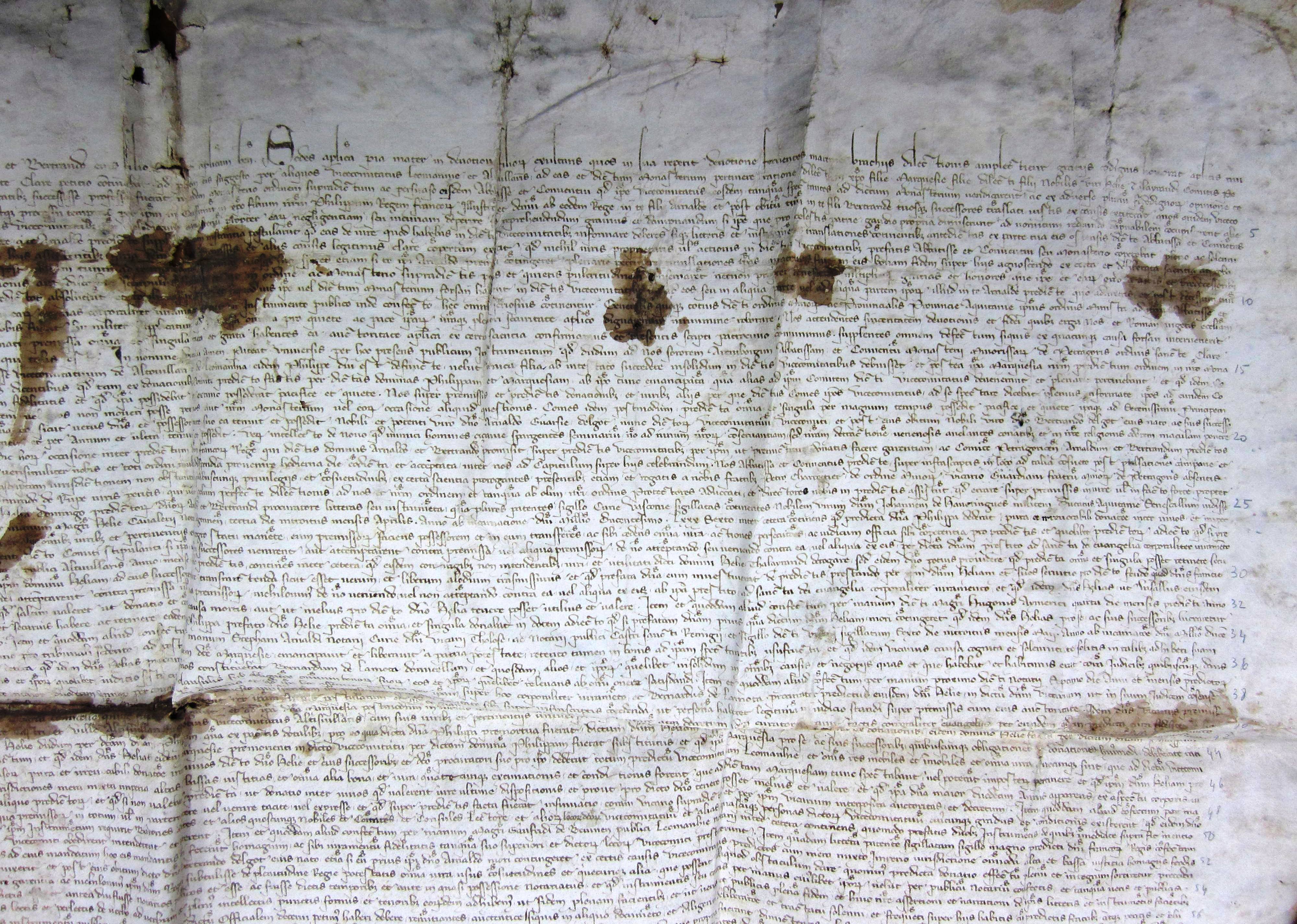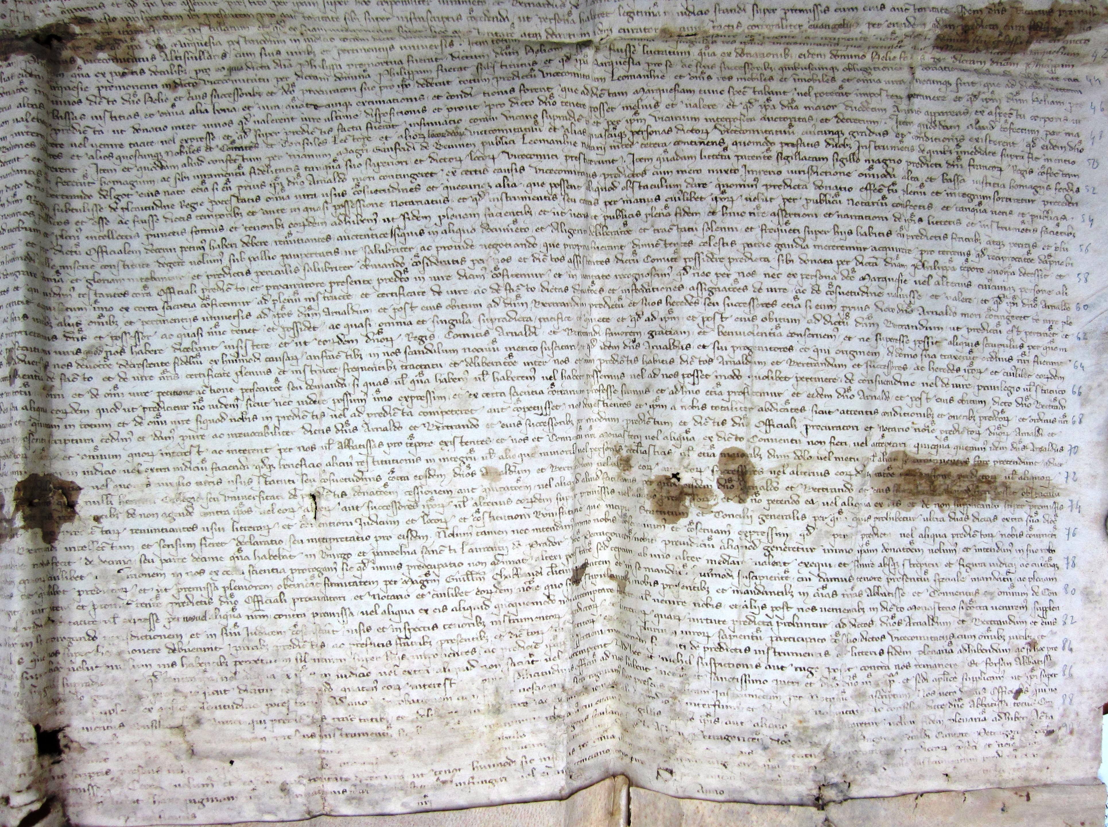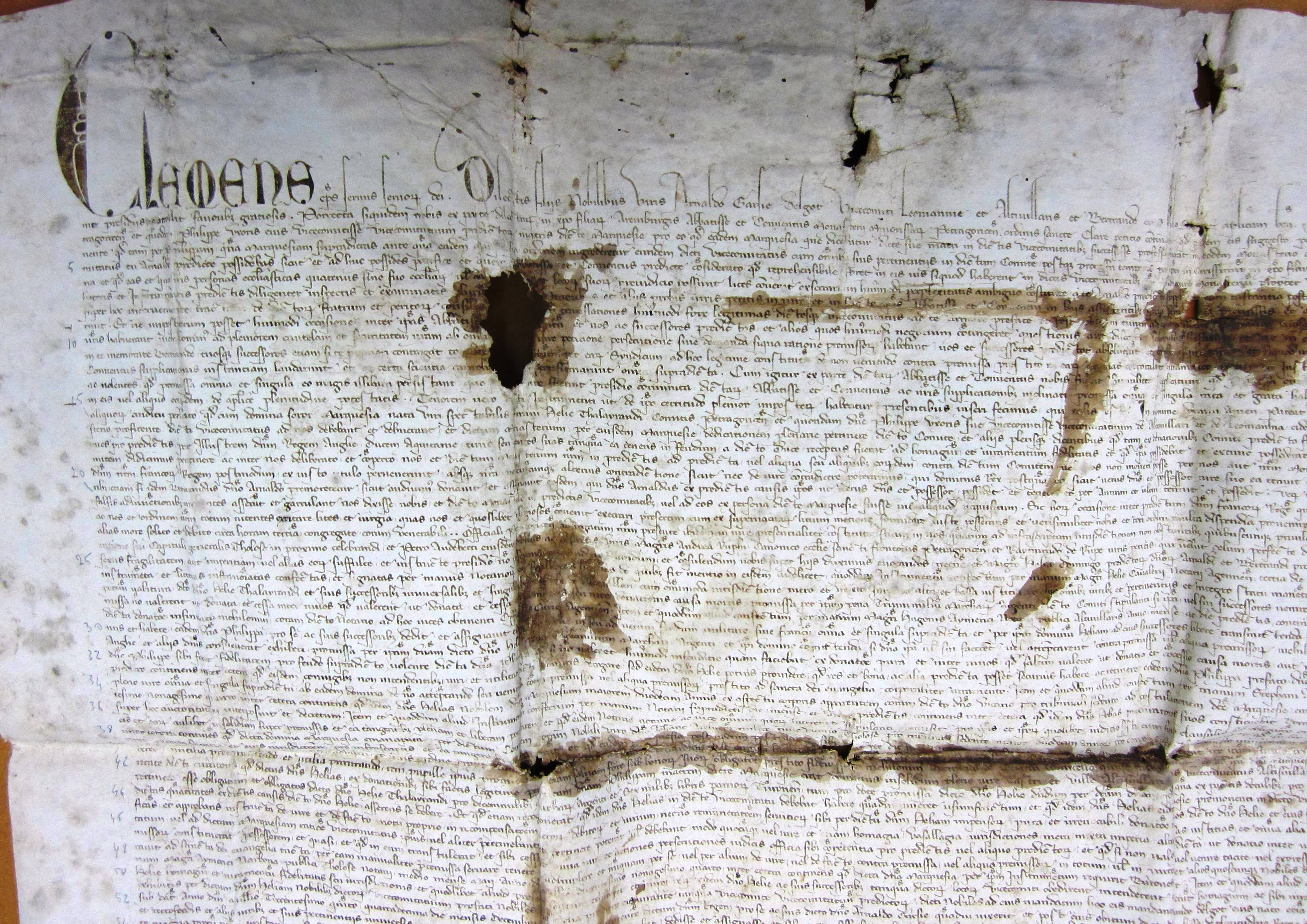 E 616 Bulle du pape Clément V ratifiant une transaction passée entre Arnaud Garcie, vicomte de Lomagne, et l'abbesse du monastère de Sainte-Claire de Périgueux au sujet des vicomtés de Lomagne et d'Auvilllars (1307) (exemplaire n° 1) |