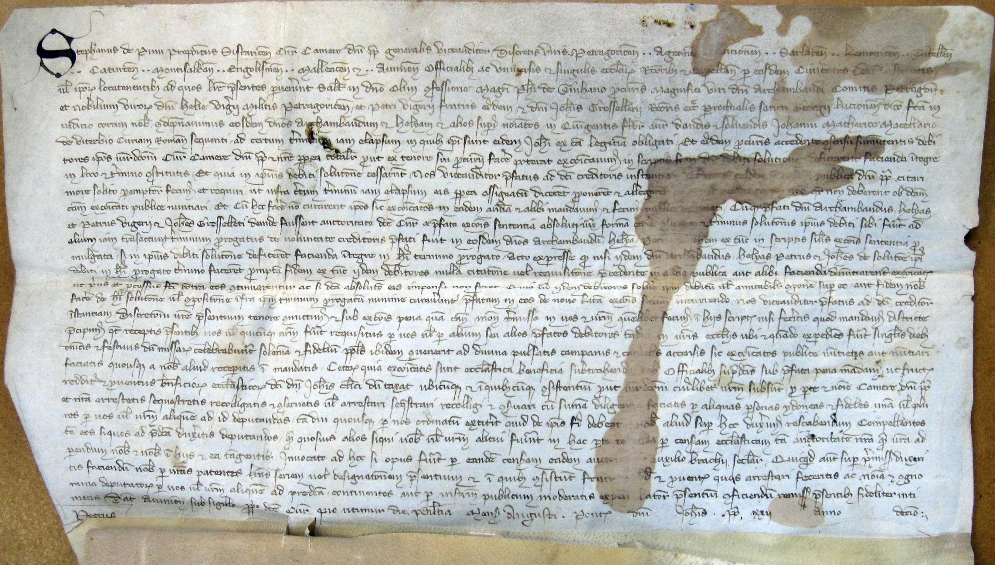 1 Stephanus de Pinu, prepositus Sistaricensis curie camere domini pape, generalis viceauditor, discretis viris Petragoricensis, Agennensis, Lucionensis, Sarlatensis, Lemovicensis, Tutellensis,