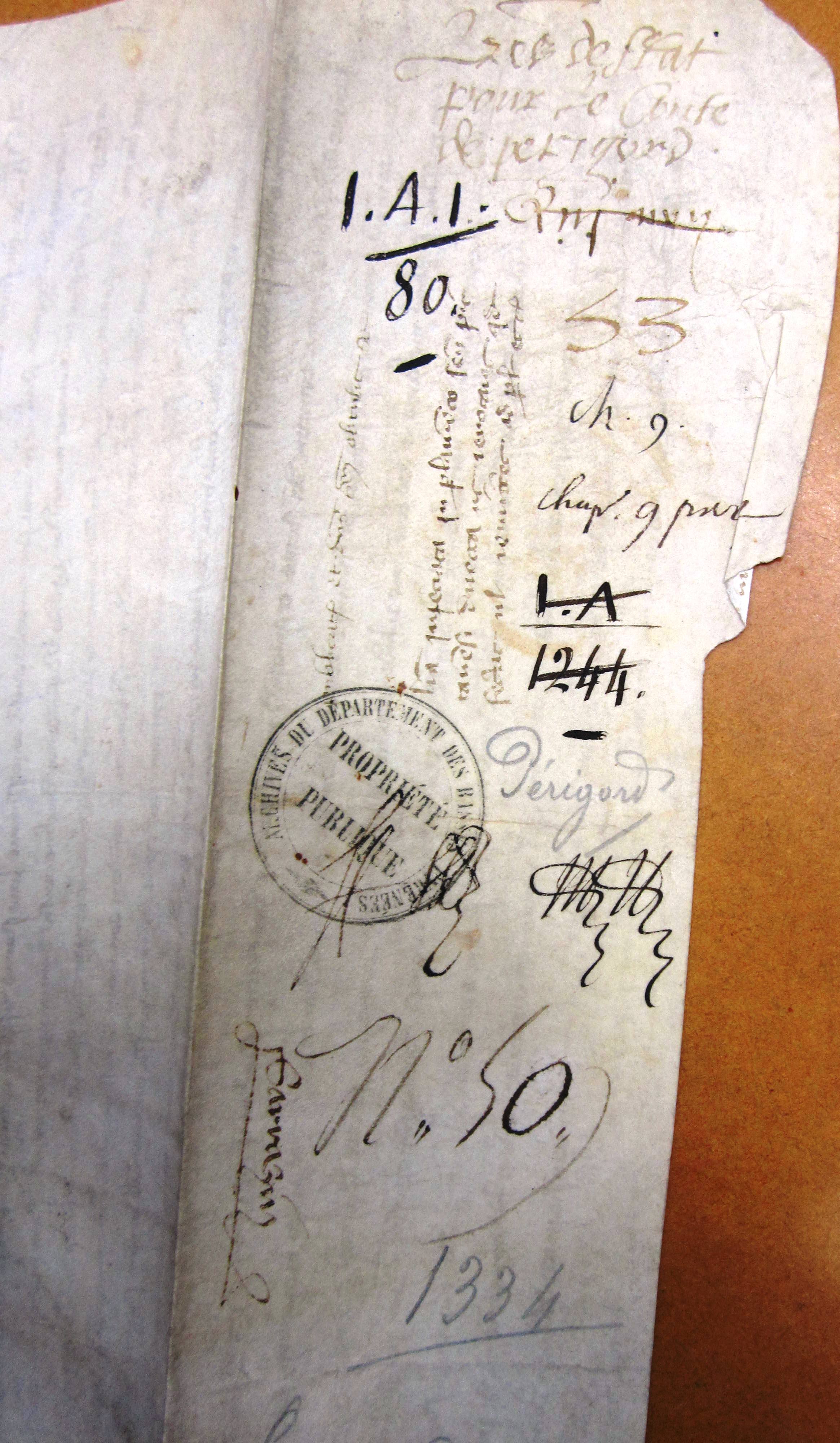 - chapitre 9 (donations, transports, promesses, assignations de rente, gages, états et pensions) cotté n° 53 (inventaire de Jean Fabri - E607, f° 151 v°)