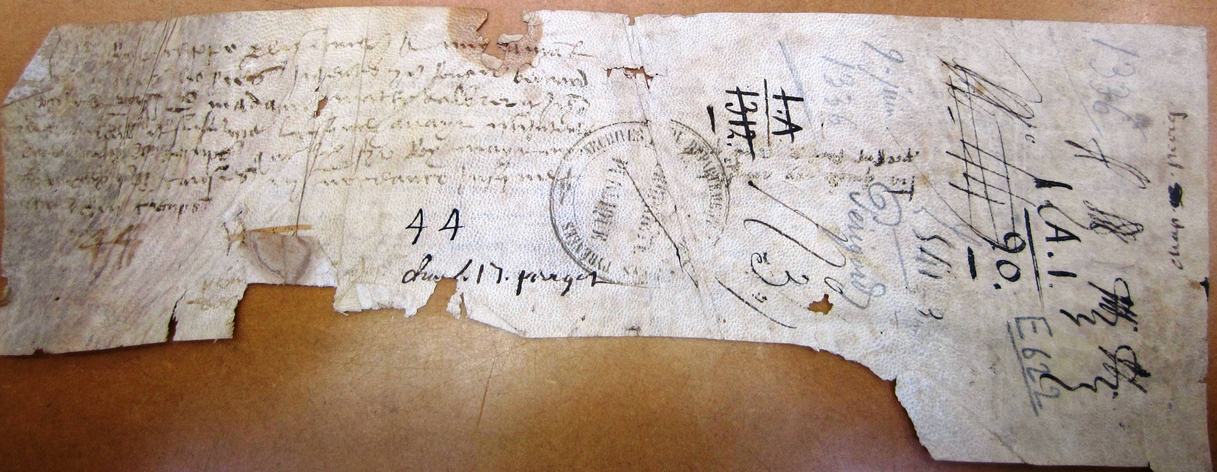 - chapitre 17 (procès généraux du comté de Périgord, etc.), cotté n° 44 (inventaire de Jean Fabri - E 607, f° 240 v°)