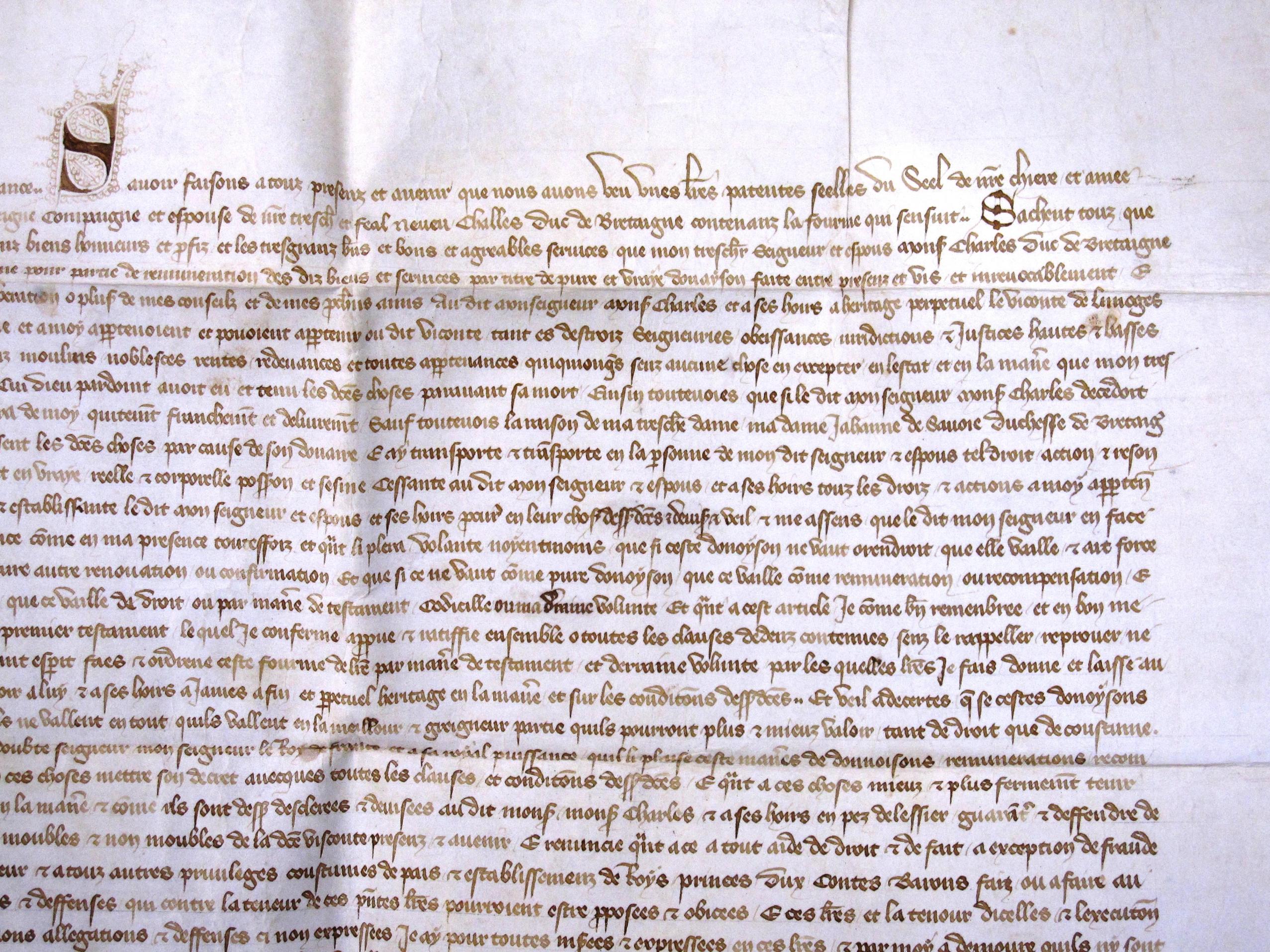 donation de la vicomté de Limoges, faite par Jeanne, duchesse de Bretagne,