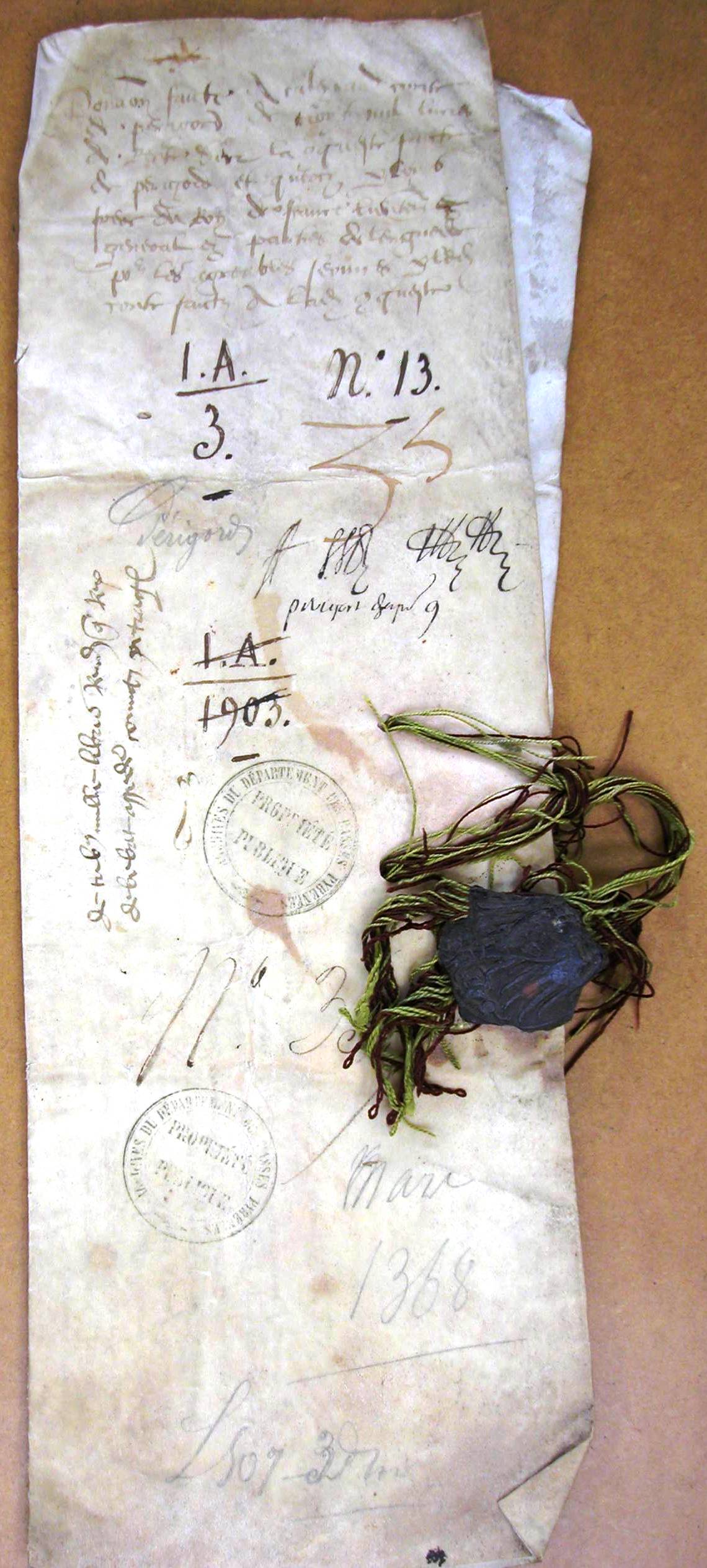 Lettres de Louis, duc d'Anjou, frère de Charles V (1) (1368).