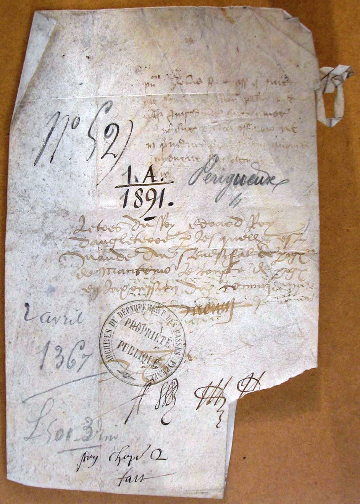 Lettre du roi d'Angleterre Edouard au comte de Périgord (1367).
