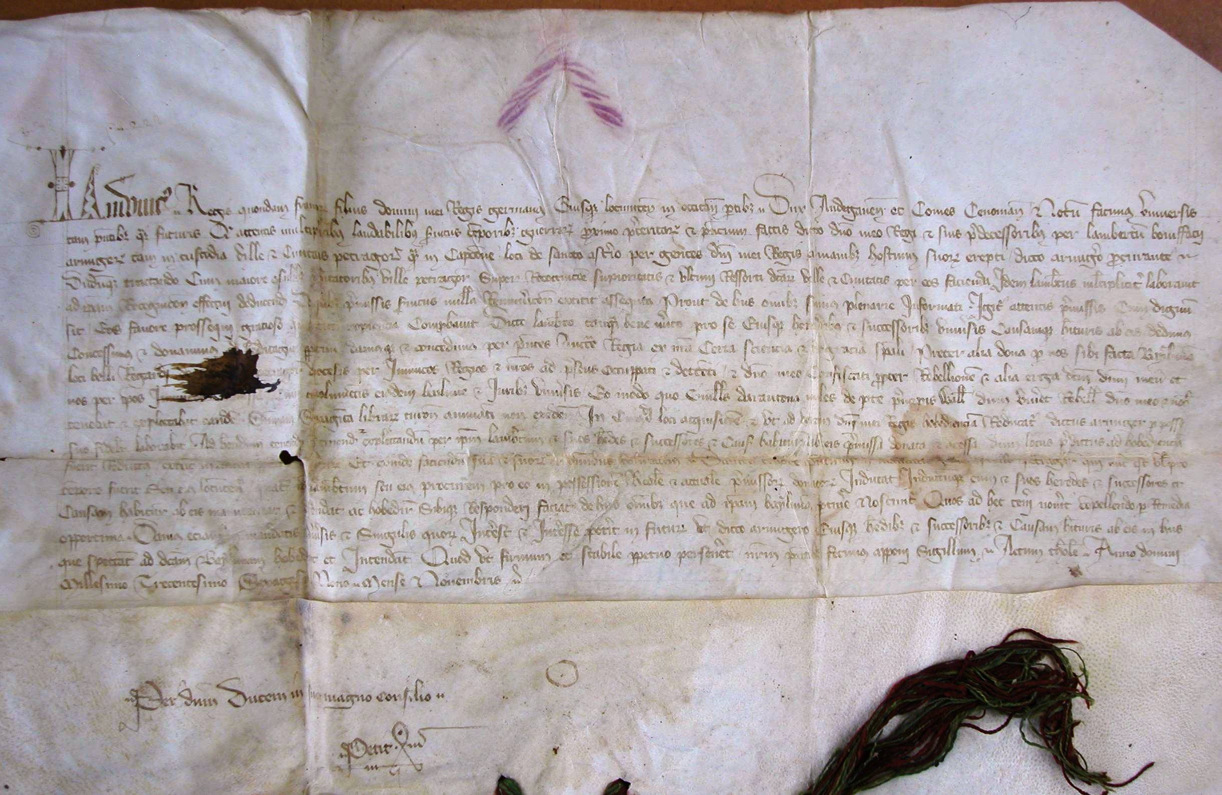 Donation par Louis, duc d'Anjou, à Lambert Boniface, écuyer, des biens de Guillaume d'Arauton, chevalier rebelle, en récompense de la prise de Saint-Astier qu'il avait remis au roi de France, etc. (1369)