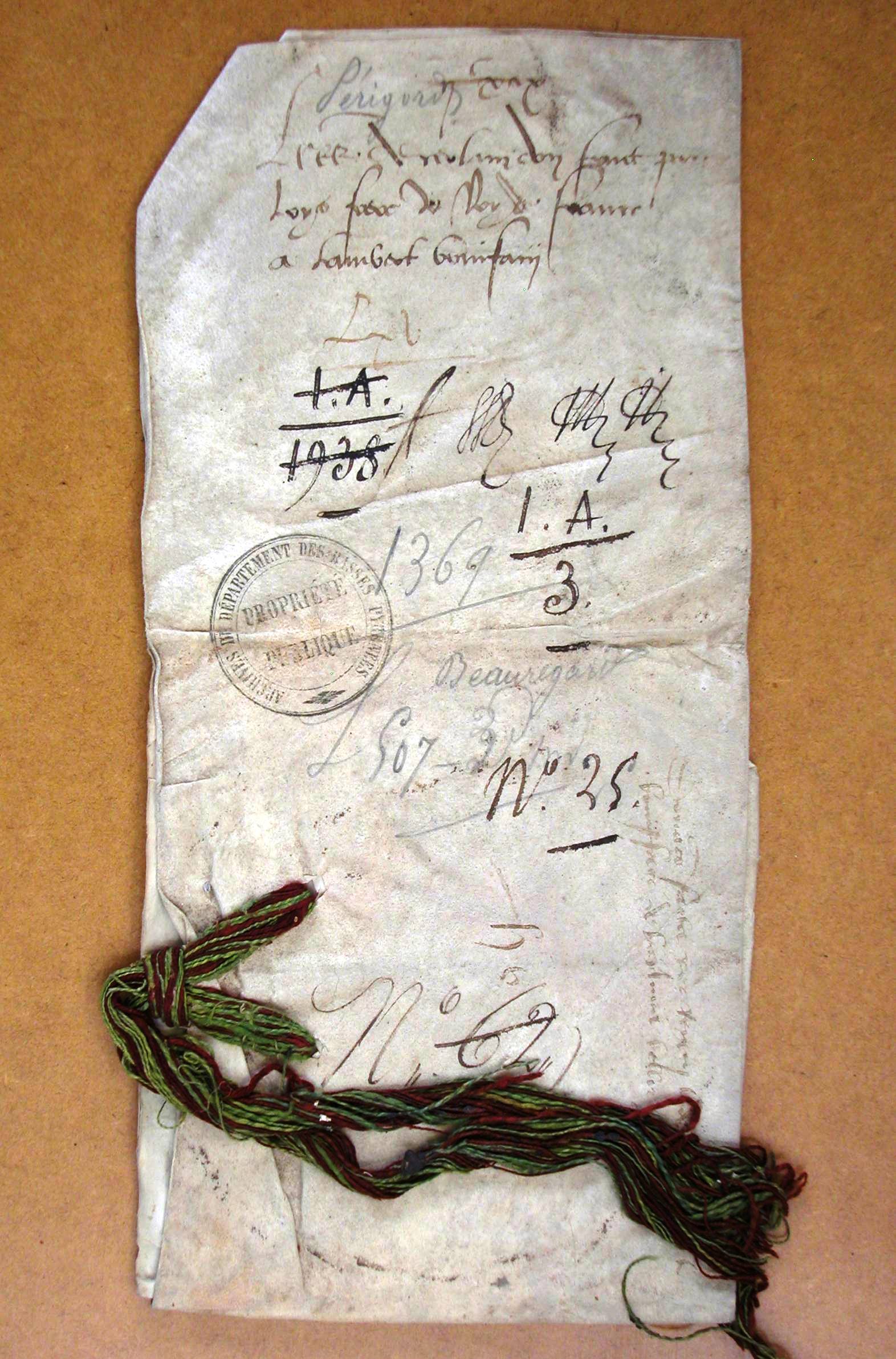 - document "cotté" n° 65 chapitre 9 (donations, transports, promesses, assignations de rente, gages, états et pensions) de l'inventaire de Jean Fabre en 1546 (registre E 607 des AD 64), avec le résumé suivant : " Lettres en parchemin du don fait par Louis frère du roi de France lieutenant général d’icelui au pays de Languedoc de la baylie du lieu de Beauregard de Corensa au diocèse de Périgord à Lambert Boniface homme d’armes, avec tous profits, revenu, rentes et émoluments d’icelle baylie, laquelle était obvenue audit seigneur roi par confiscation, n’excédant annuellement la somme de 60 livres t. Données à Toulouse en novembre 1369. Signées sur le repli : Petit, et scellées du sceau d’icelui. "