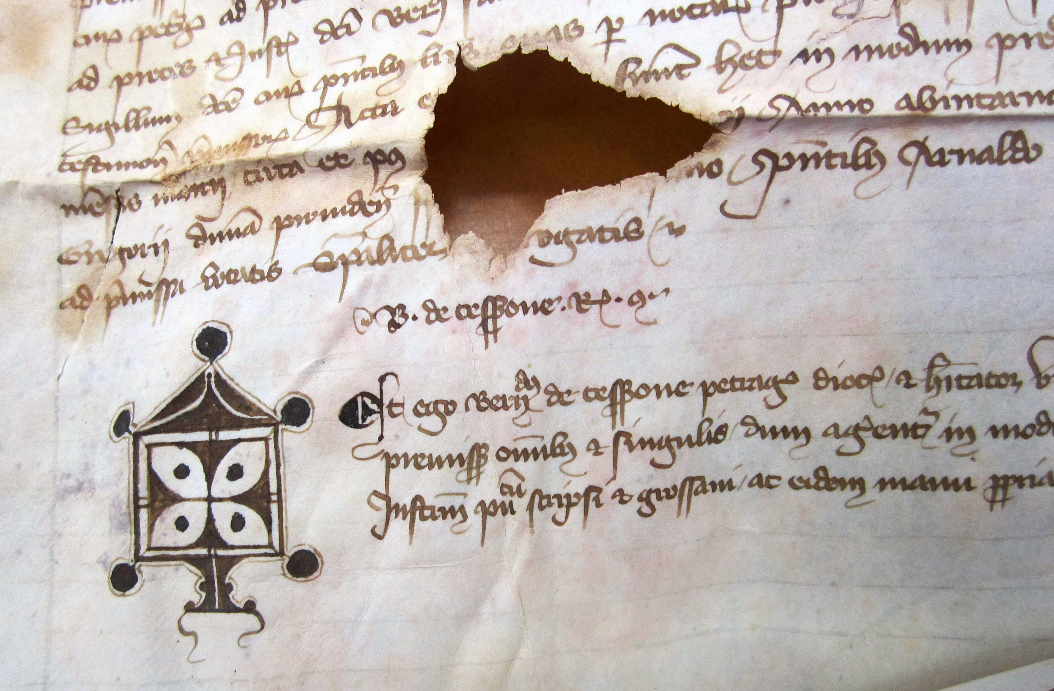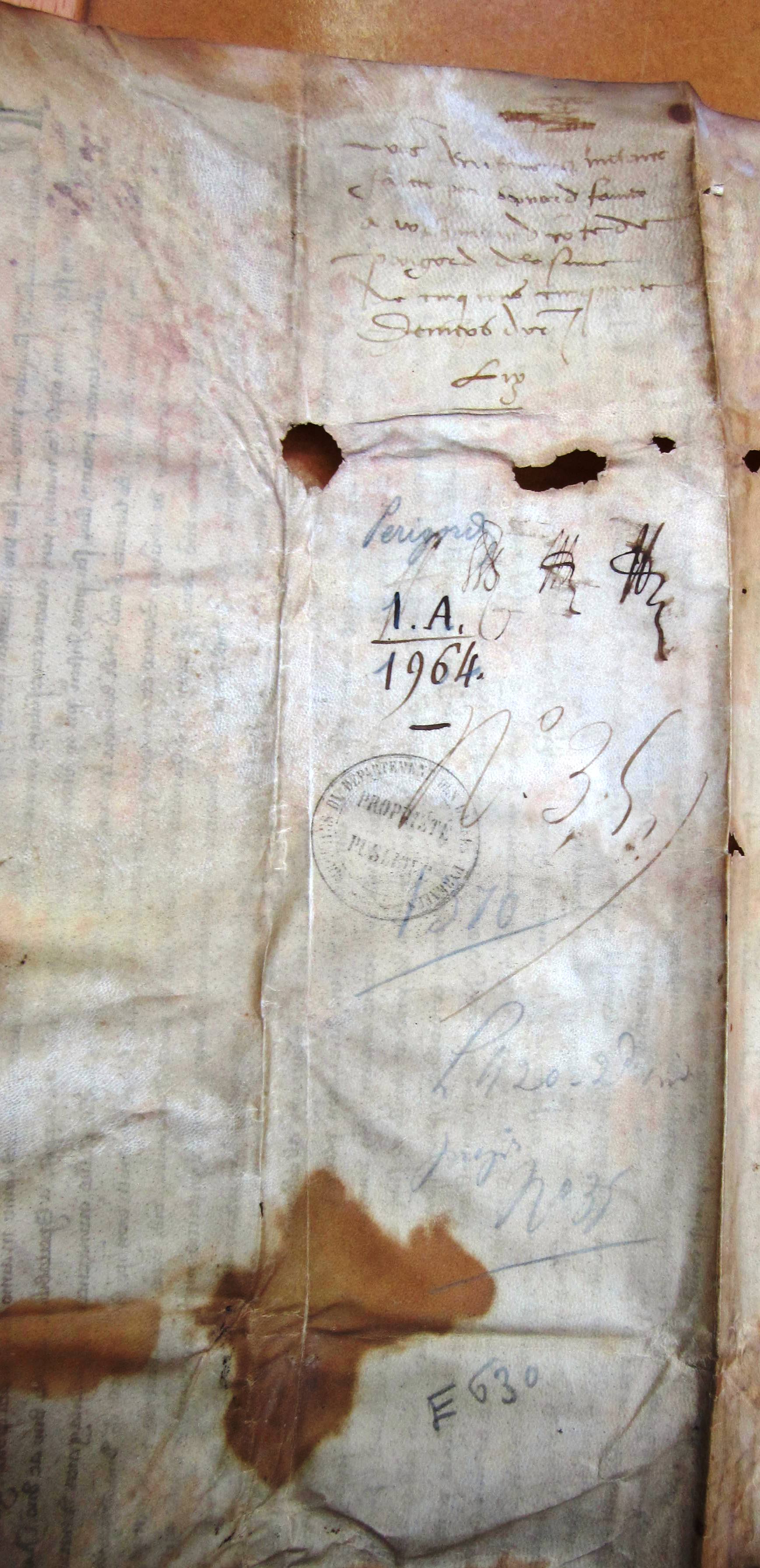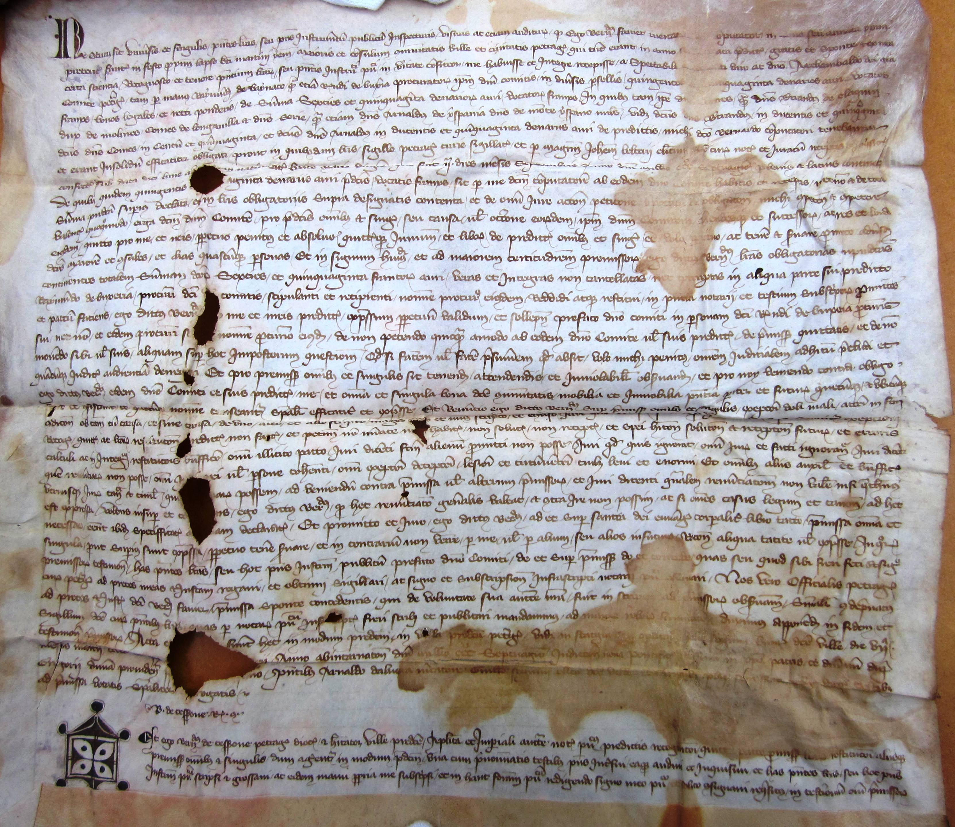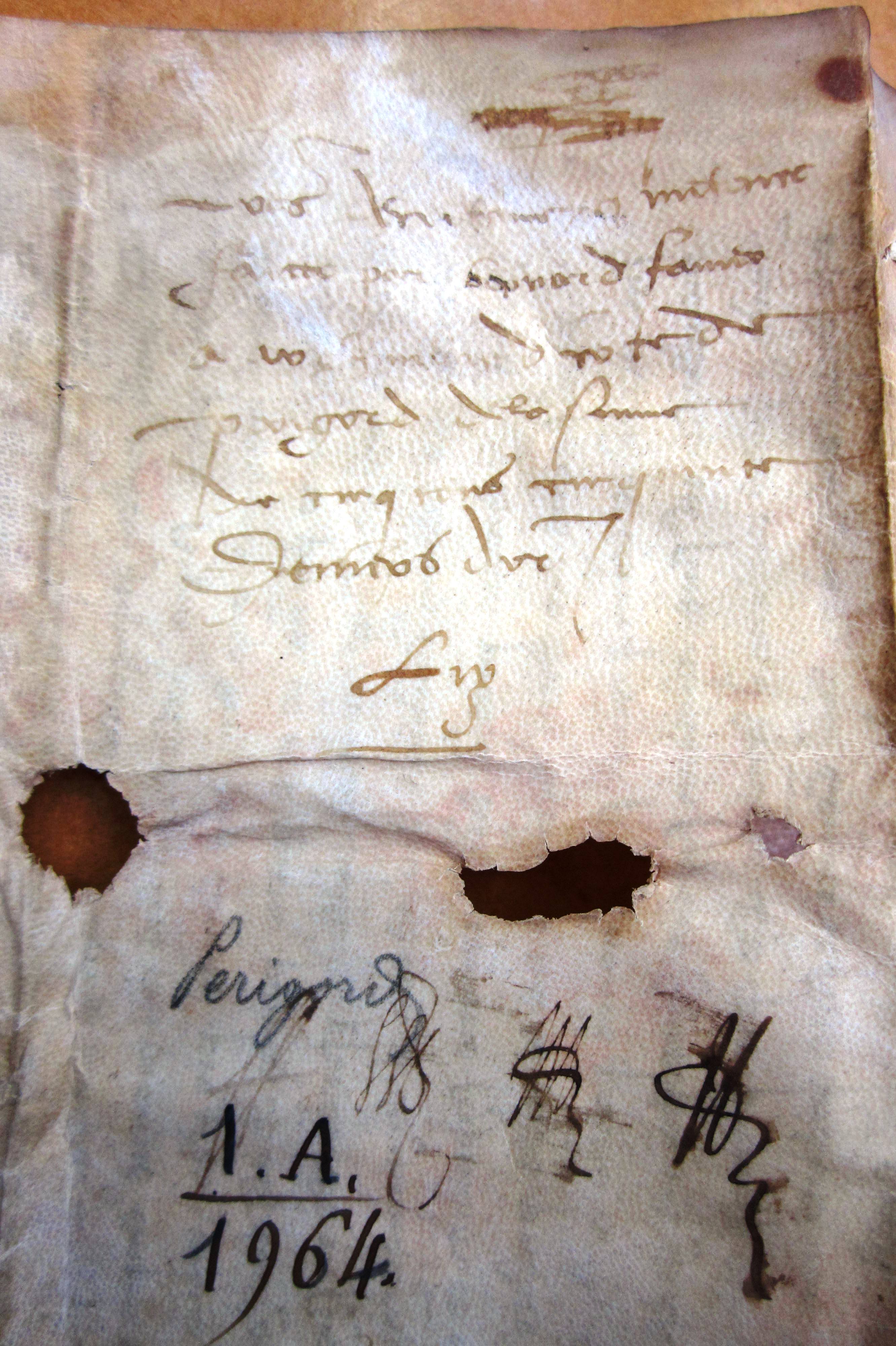 Quittance donnée par Bernard Favier, député des habitants de Périgueux à Archambaud IV, comte de Périgord, pour 550 francs d'or qu'il avait reçus de Raymond de Beynac et de Raymond de Buxière, procureurs du comte; cette somme avait été empruntée aux habitants de Périgueux par Bertrand Du Guesclin et par Arnaud d'Espagne, seigneur de Montespan (avec seing) (1370).