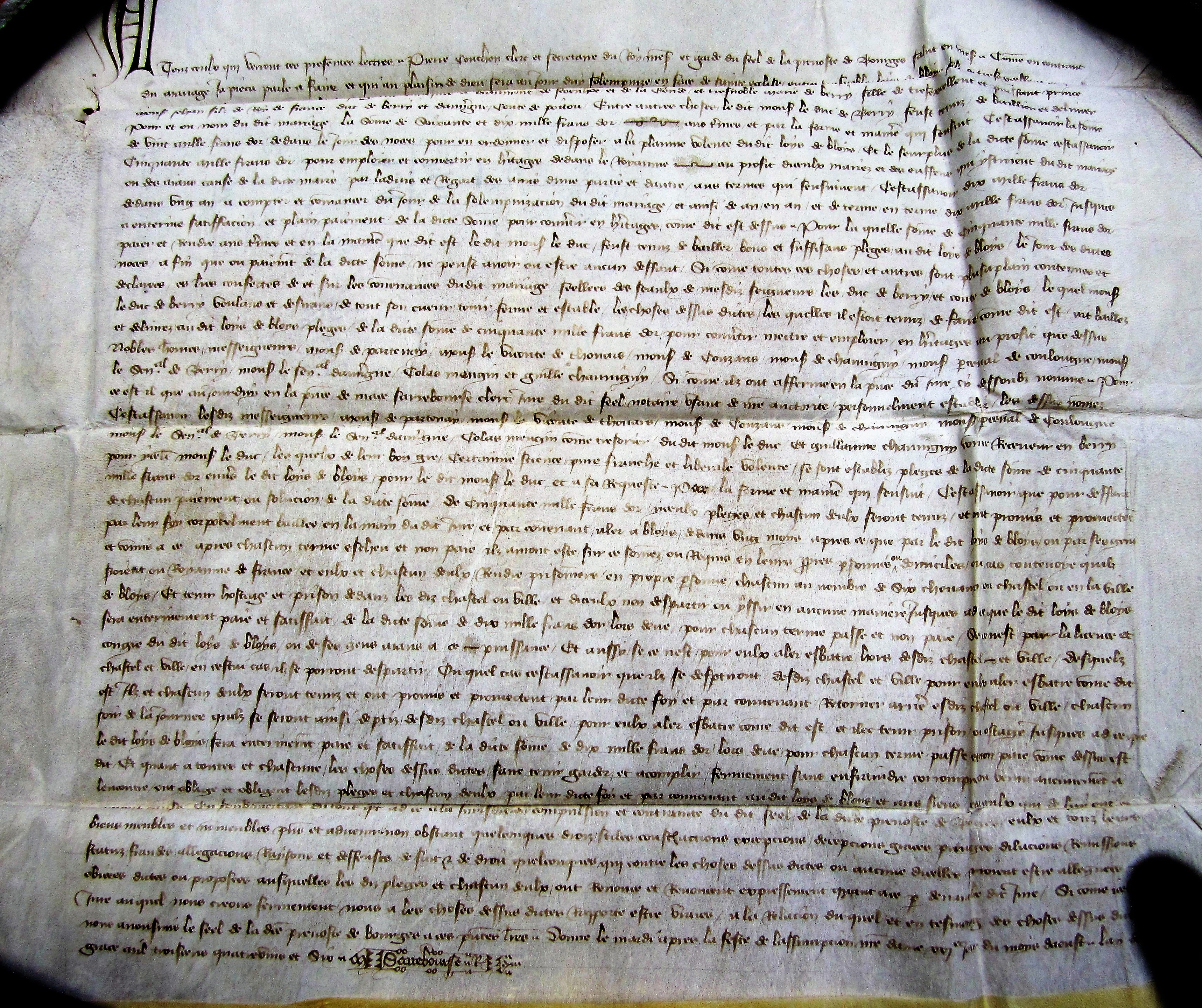 Caution donnée par le duc de Berry, pour une somme de 70.000 francs d'or qu'il devait payer à Louis de Blois, son gendre (1386)