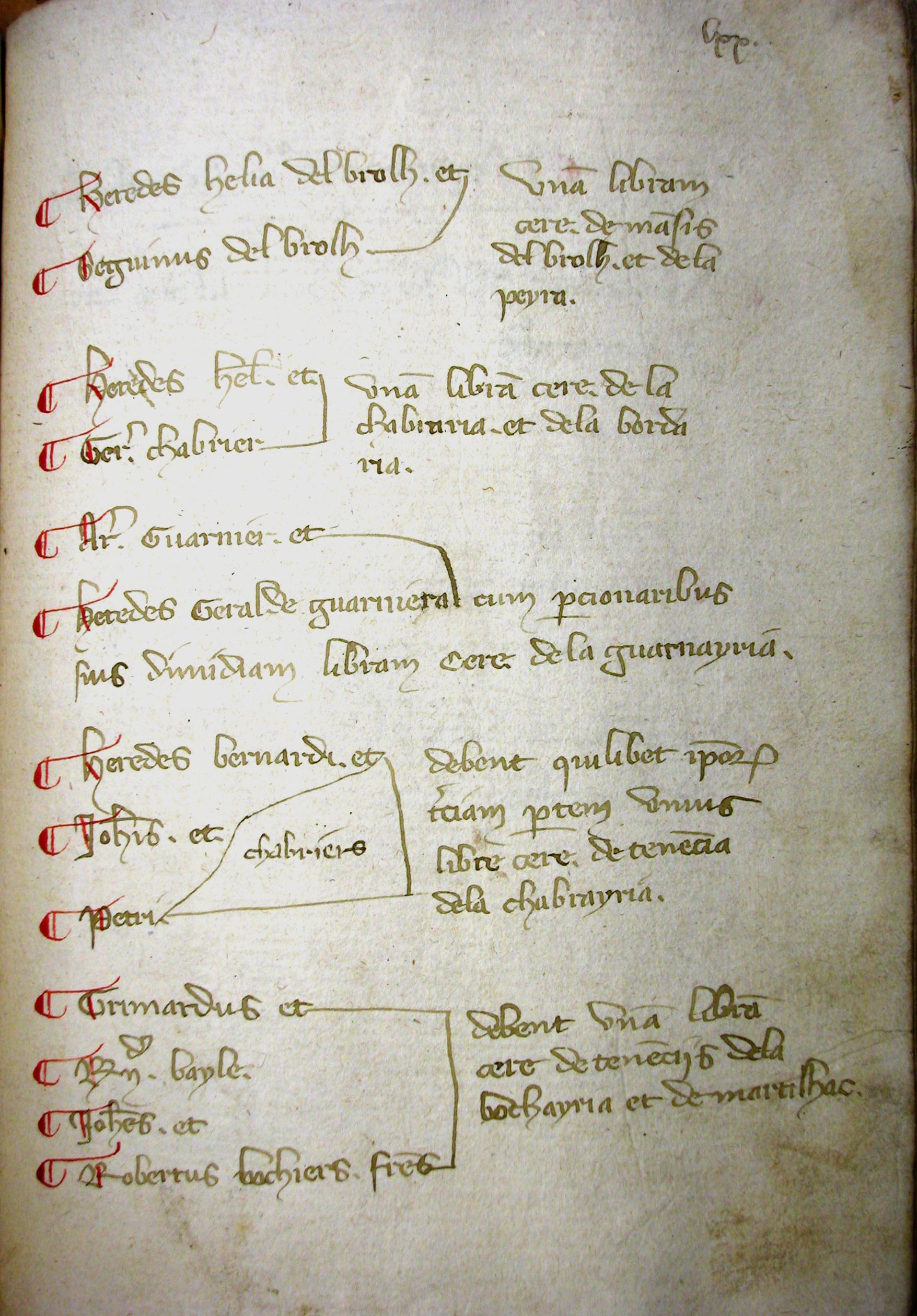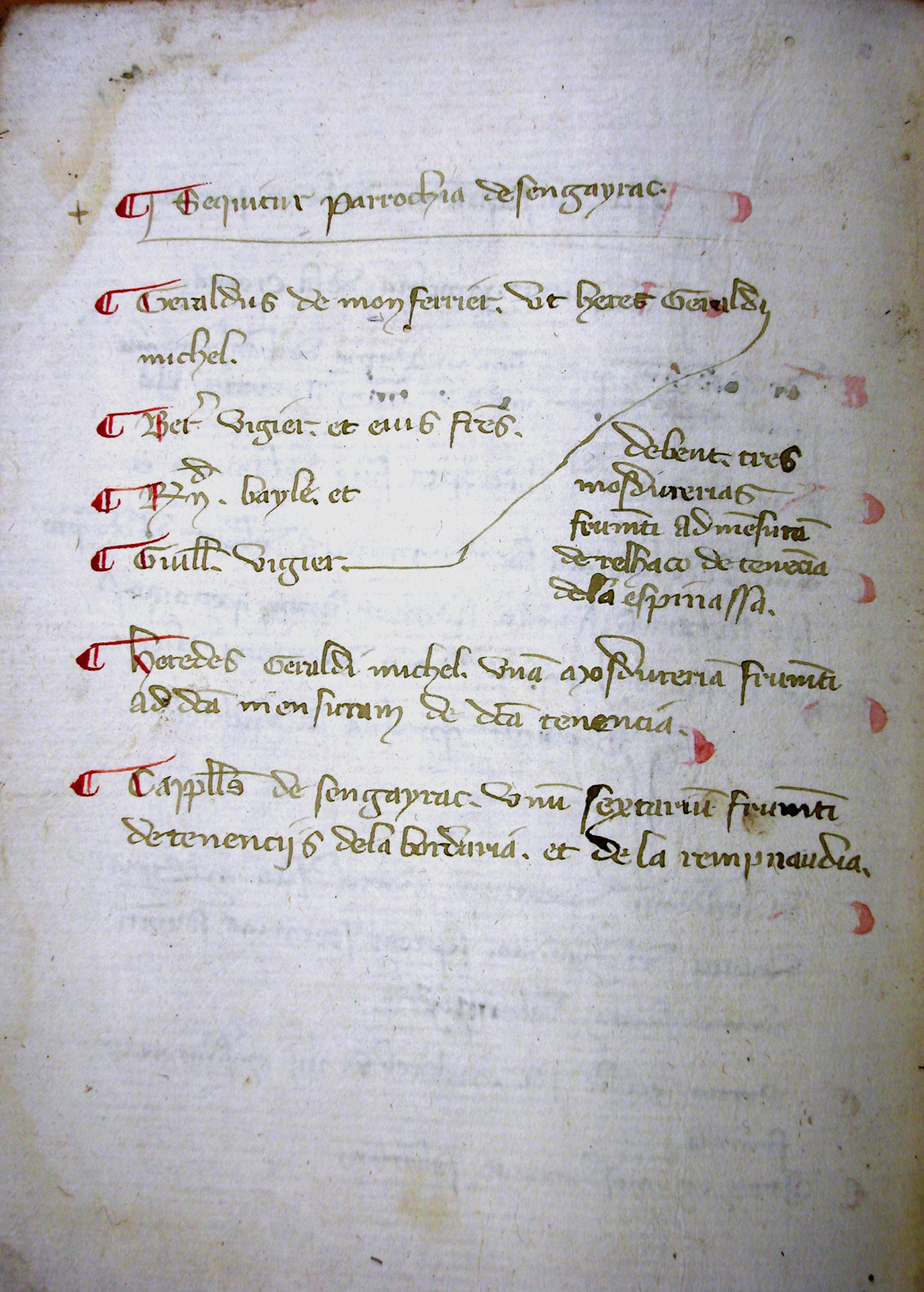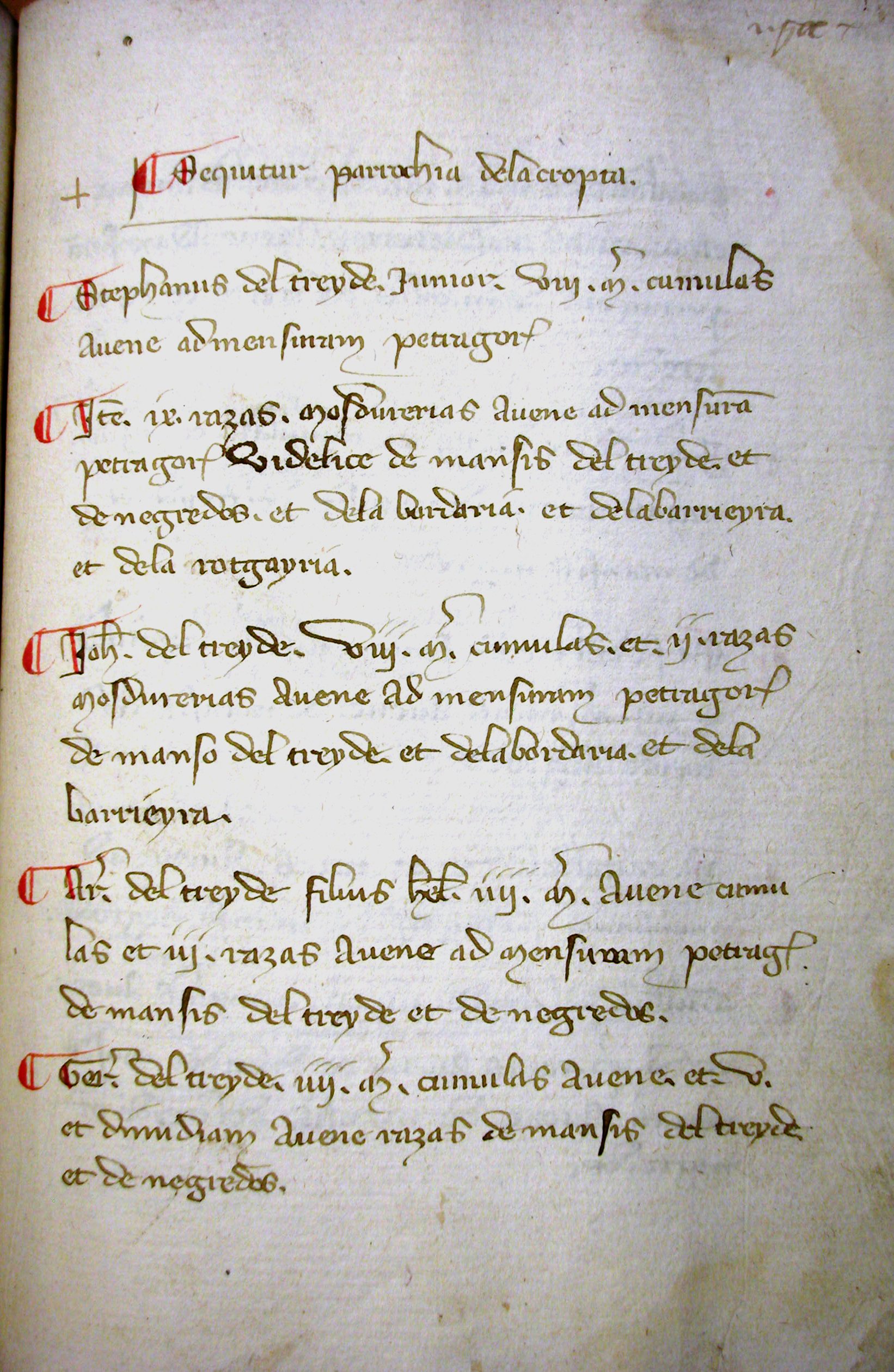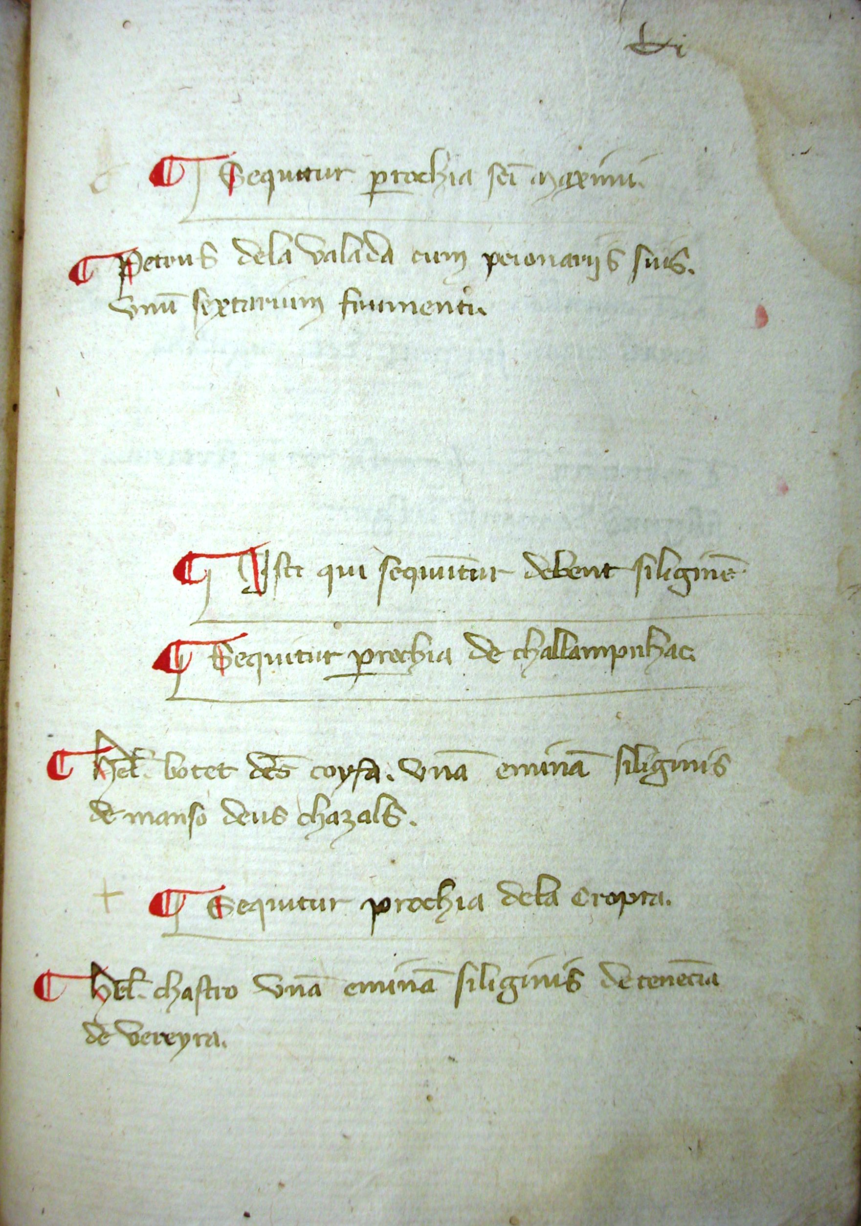 XIVe siècle. Censier du comté de Périgord , rôle des revenus appartenant au comte dans les paroisses de Vergt, Notre Dame-de-Vergt, Silan (Salon), Saint-Jean de Vergt, Saint-Pierre-Lanes, Cressensac, Chalamnhac, Saint-Amand, Veyrines, Saint-Maxime, Corsac, Marsanès, Breuil, Saint-Michel, Sengeyrac, Sénillac, Chignac, Eglise-Neuve d'Uschel, Castaigne-Messier, Lacropte, Sendreus, Ladouze.