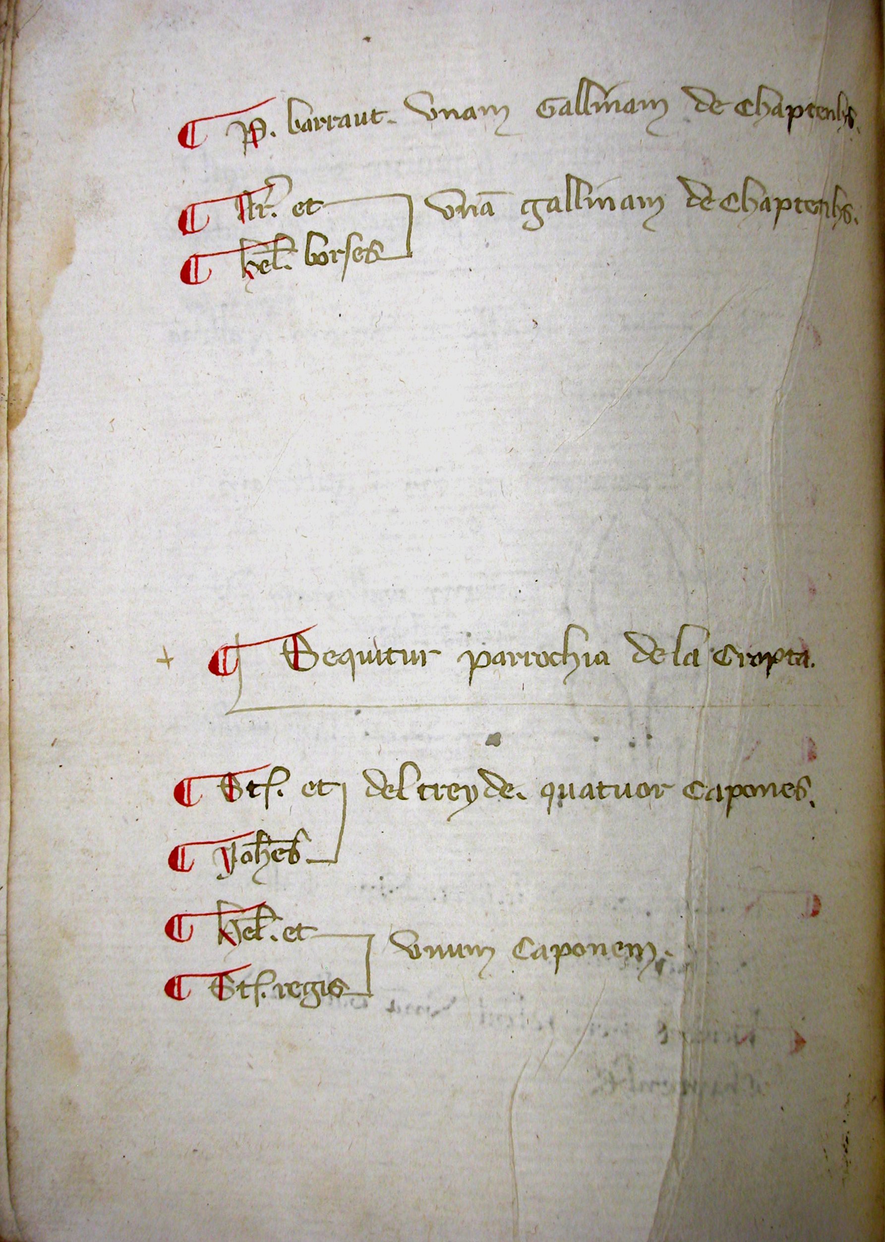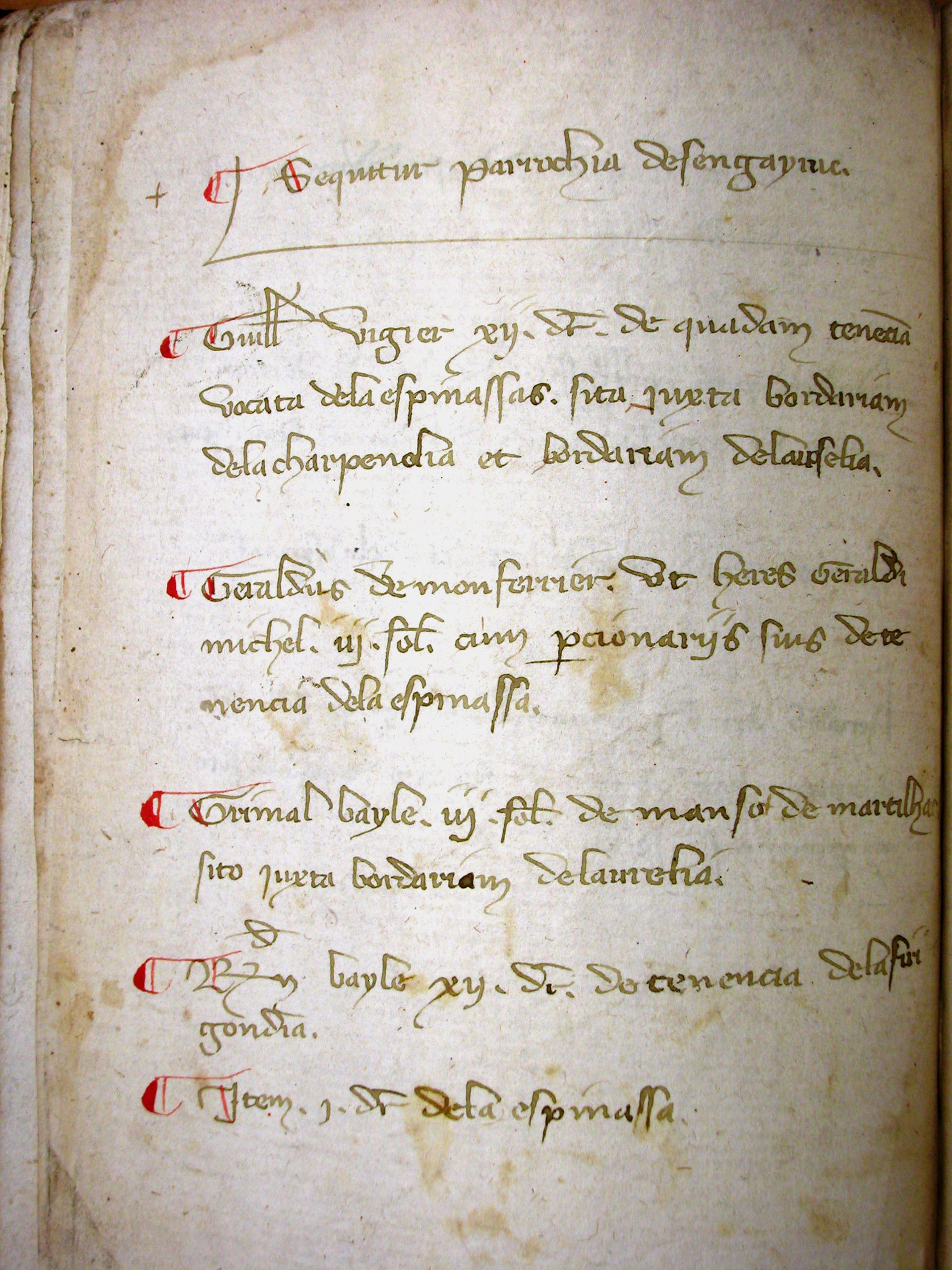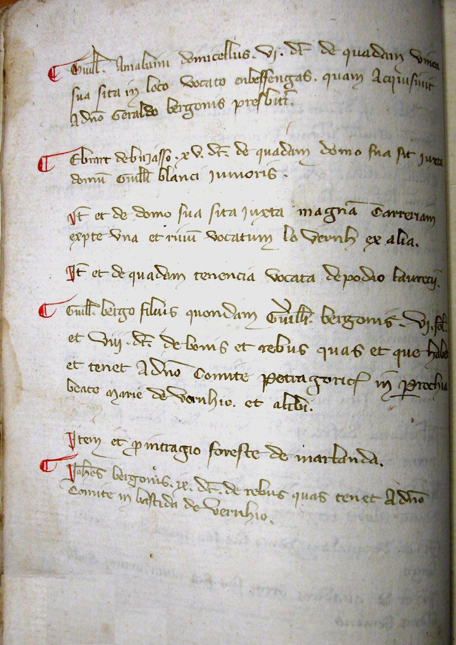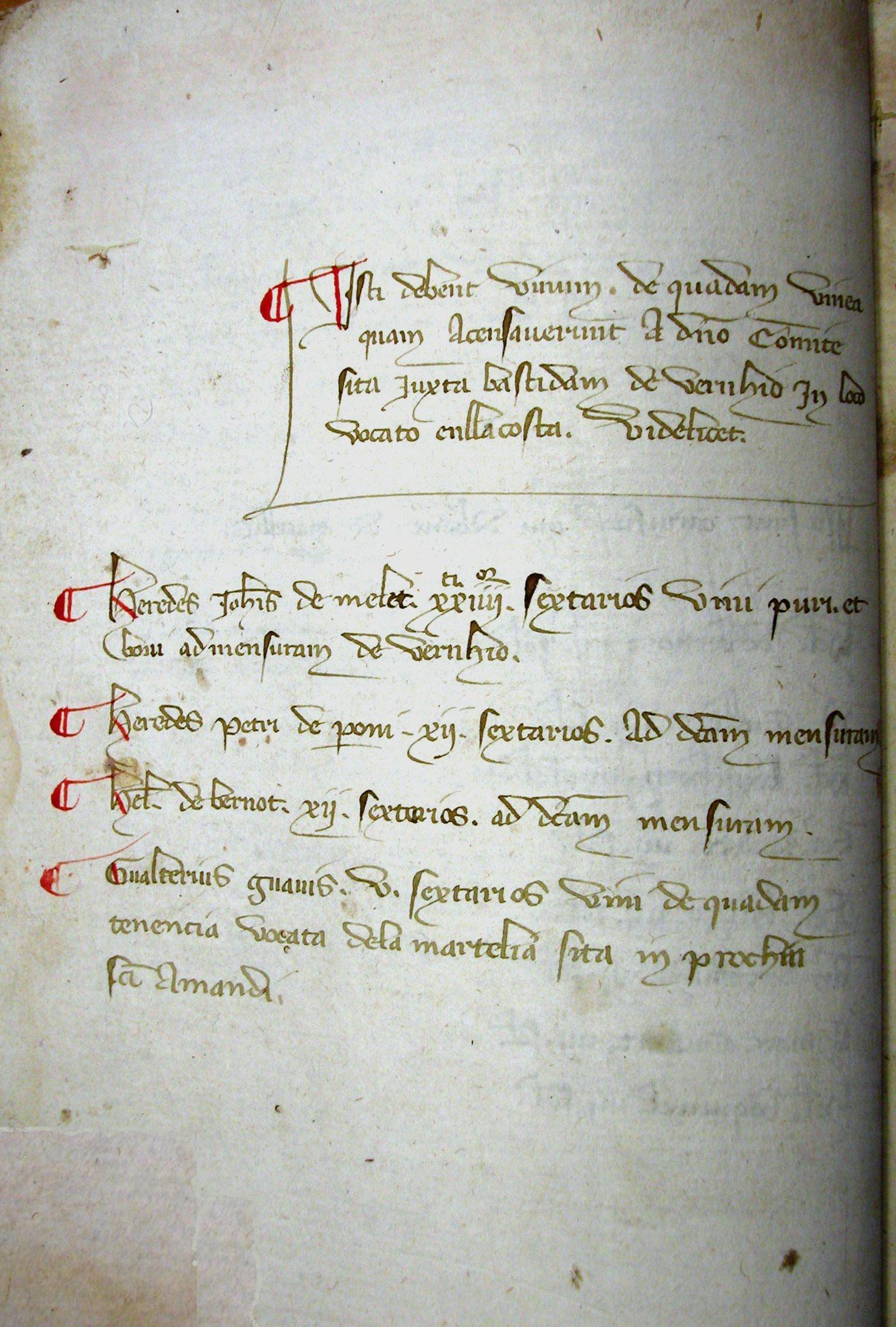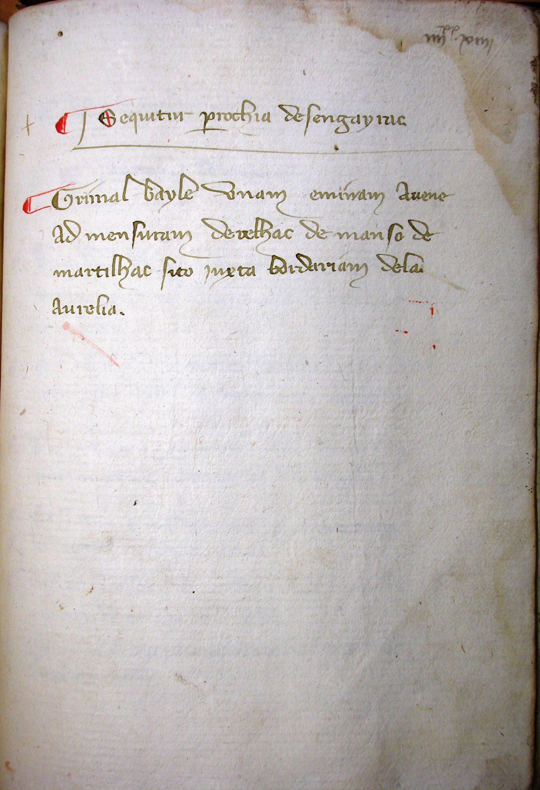 XIVe siècle. Censier du comté de Périgord , rôle des revenus appartenant au comte dans les paroisses de Vergt, Notre Dame-de-Vergt, Silan (Salon), Saint-Jean de Vergt, Saint-Pierre-Lanes, Cressensac, Chalamnhac, Saint-Amand, Veyrines, Saint-Maxime, Corsac, Marsanès, Breuil, Saint-Michel, Sengeyrac, Sénillac, Chignac, Eglise-Neuve d'Uschel, Castaigne-Messier, Lacropte, Sendreus, Ladouze.