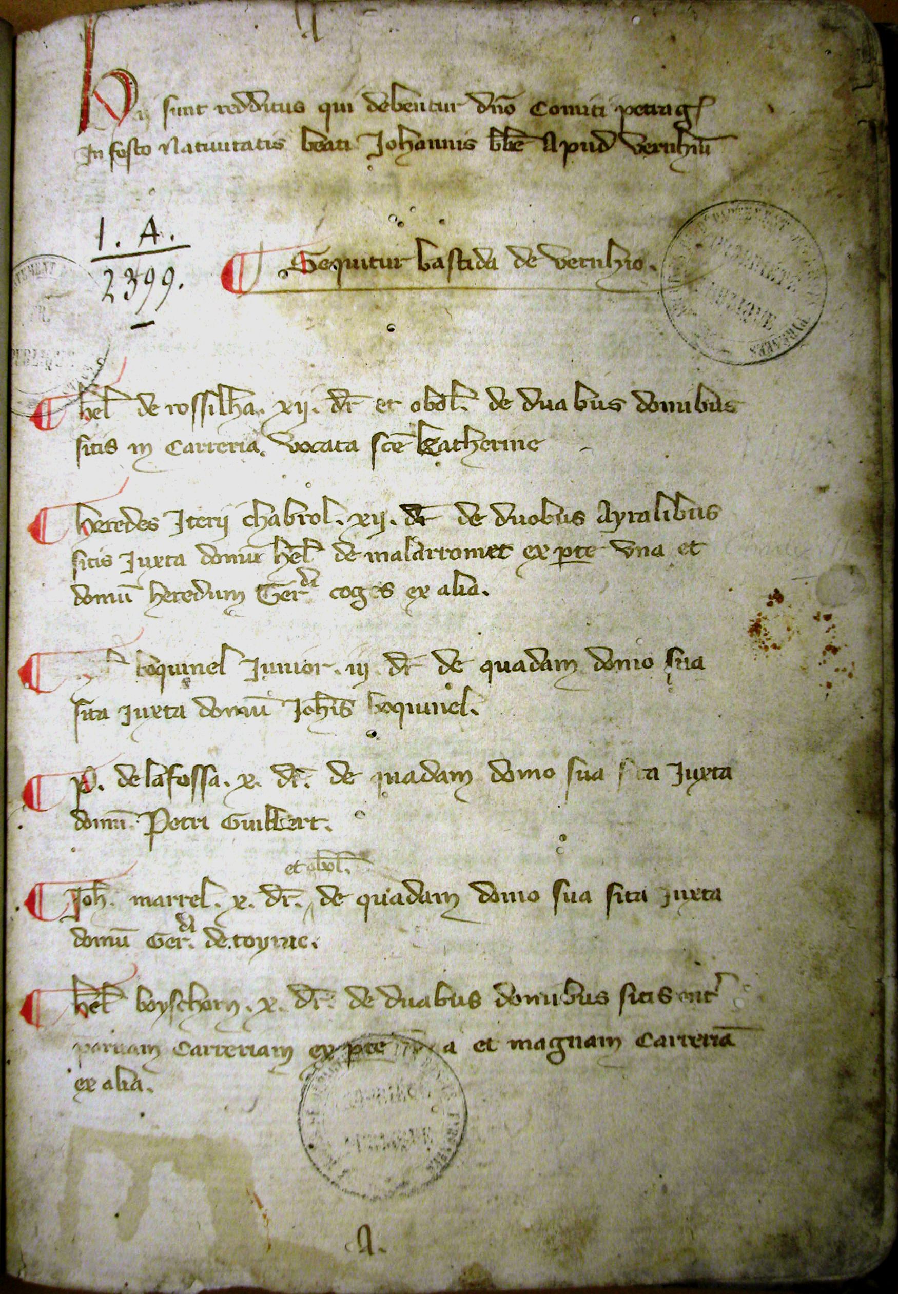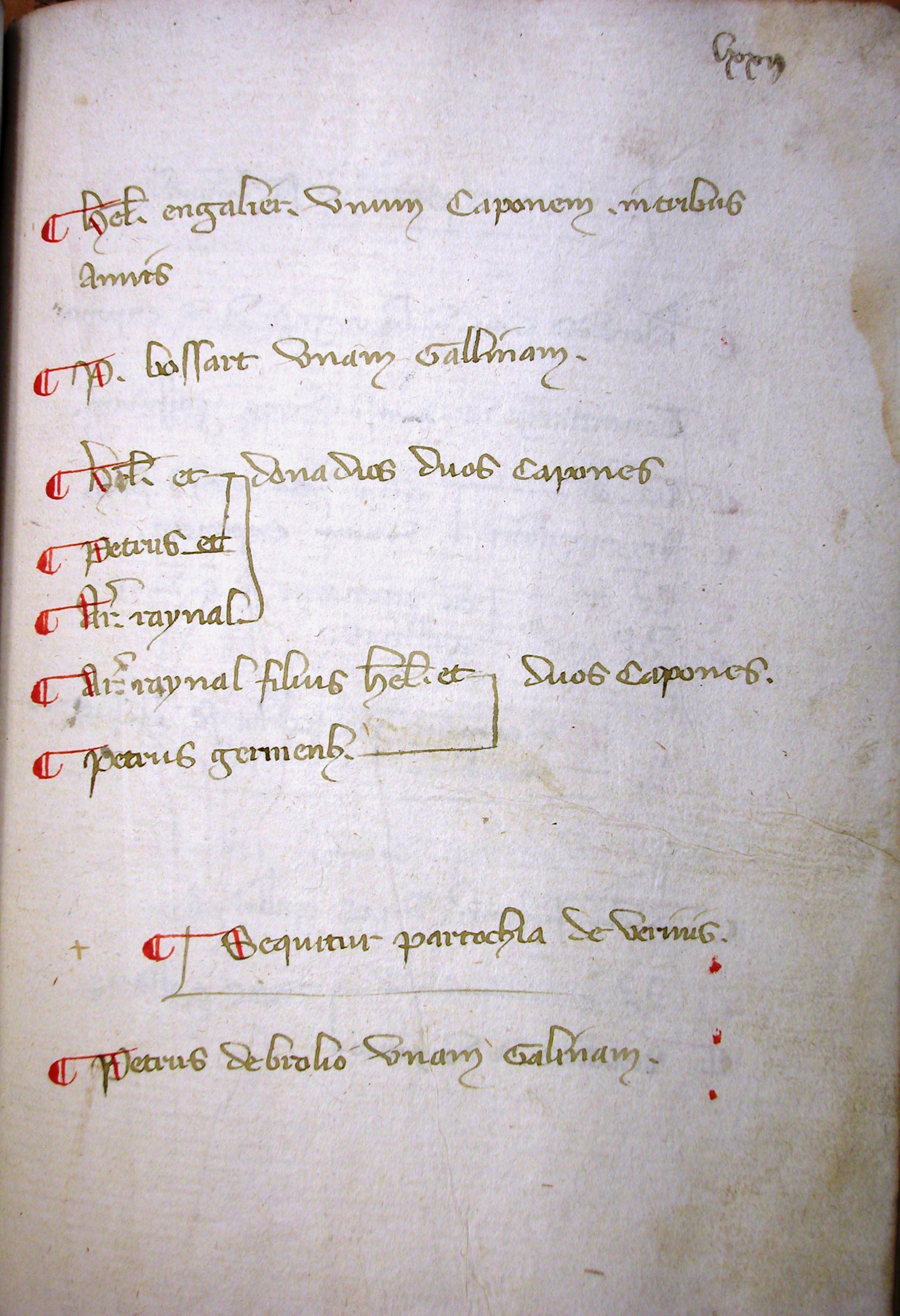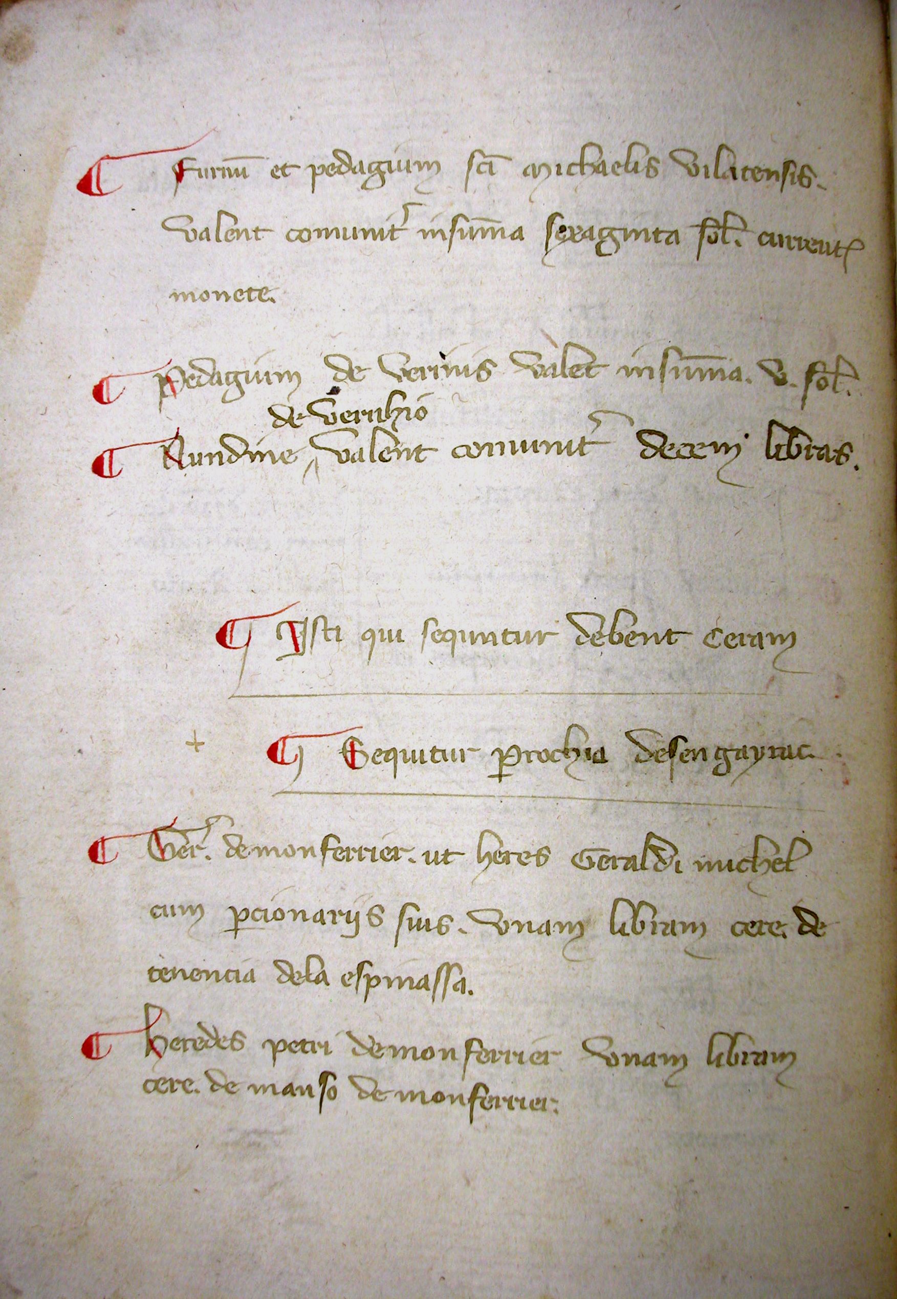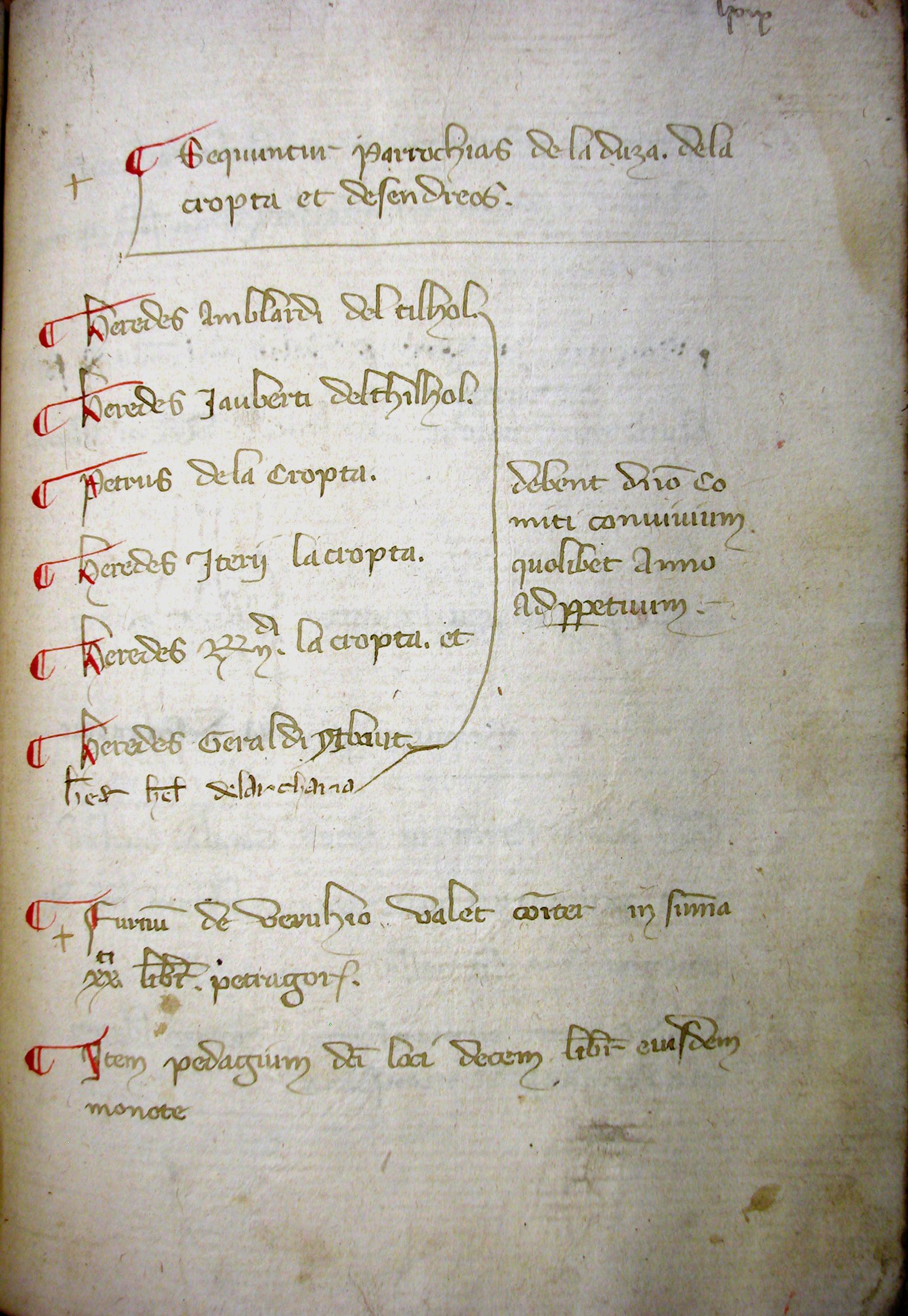 XIVe siècle. Censier du comté de Périgord , rôle des revenus appartenant au comte dans les paroisses de Vergt, Notre Dame-de-Vergt, Silan (Salon), Saint-Jean de Vergt, Saint-Pierre-Lanes, Cressensac, Chalamnhac, Saint-Amand, Veyrines, Saint-Maxime, Corsac, Marsanès, Breuil, Saint-Michel, Sengeyrac, Sénillac, Chignac, Eglise-Neuve d'Uschel, Castaigne-Messier, Lacropte, Sendreus, Ladouze.