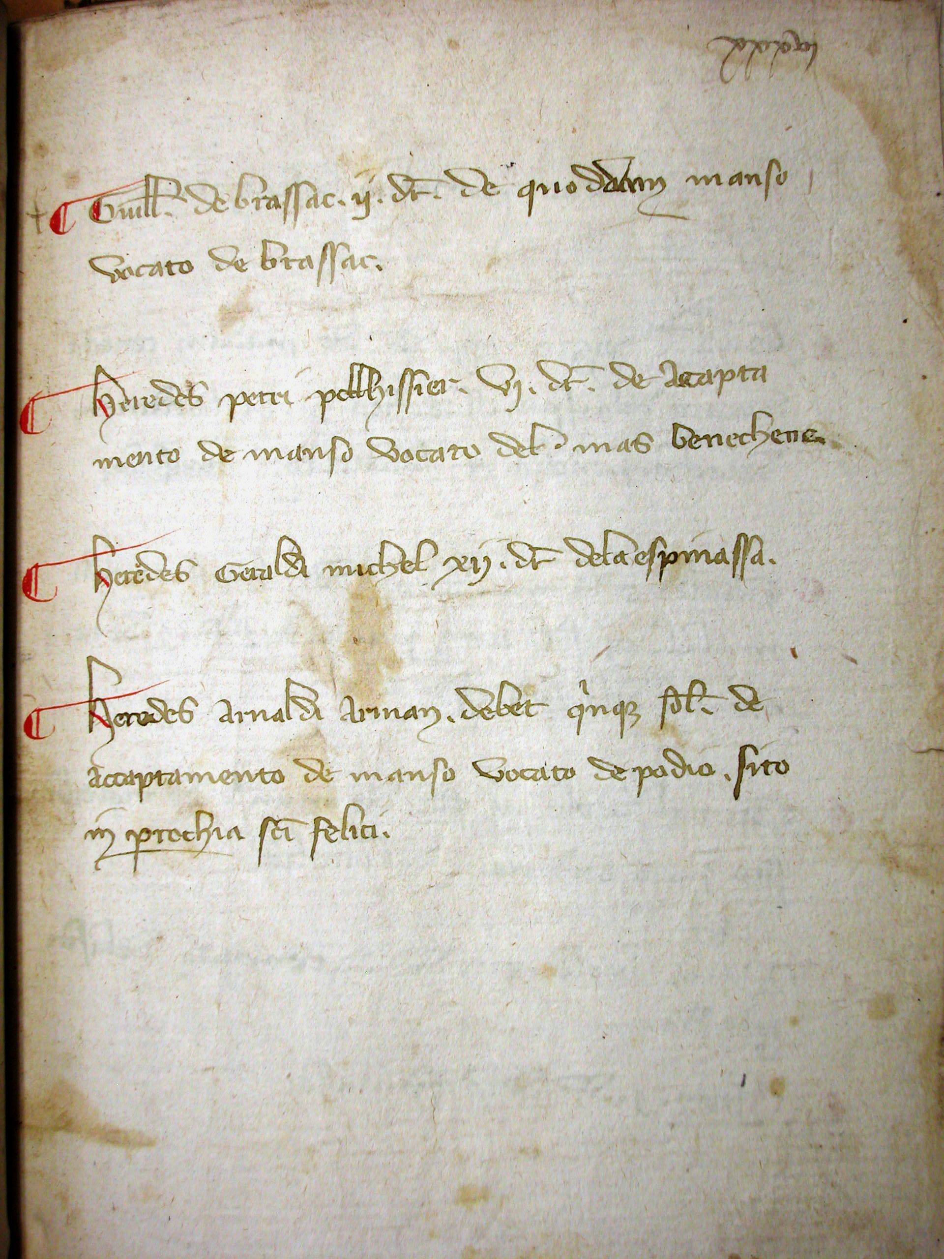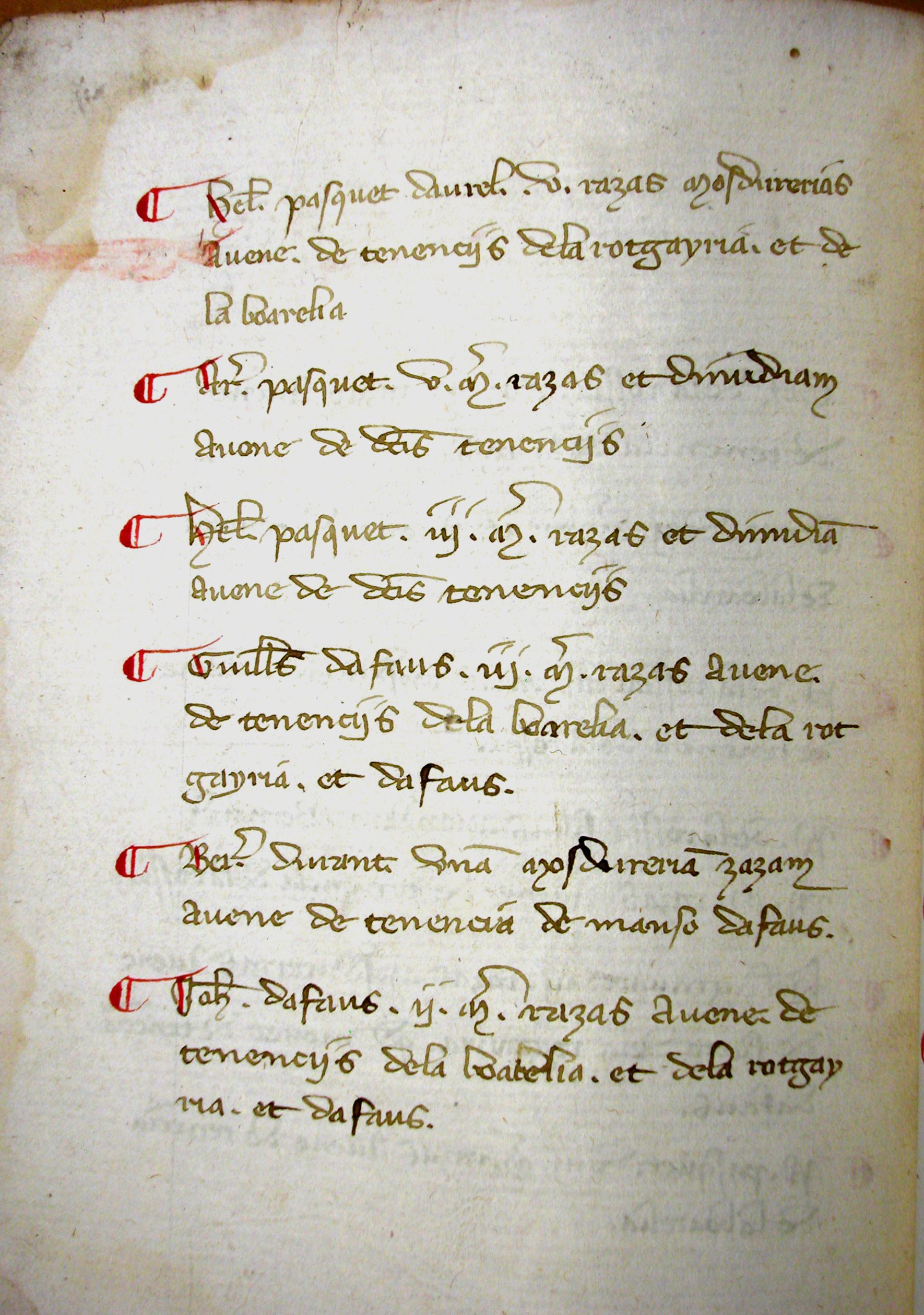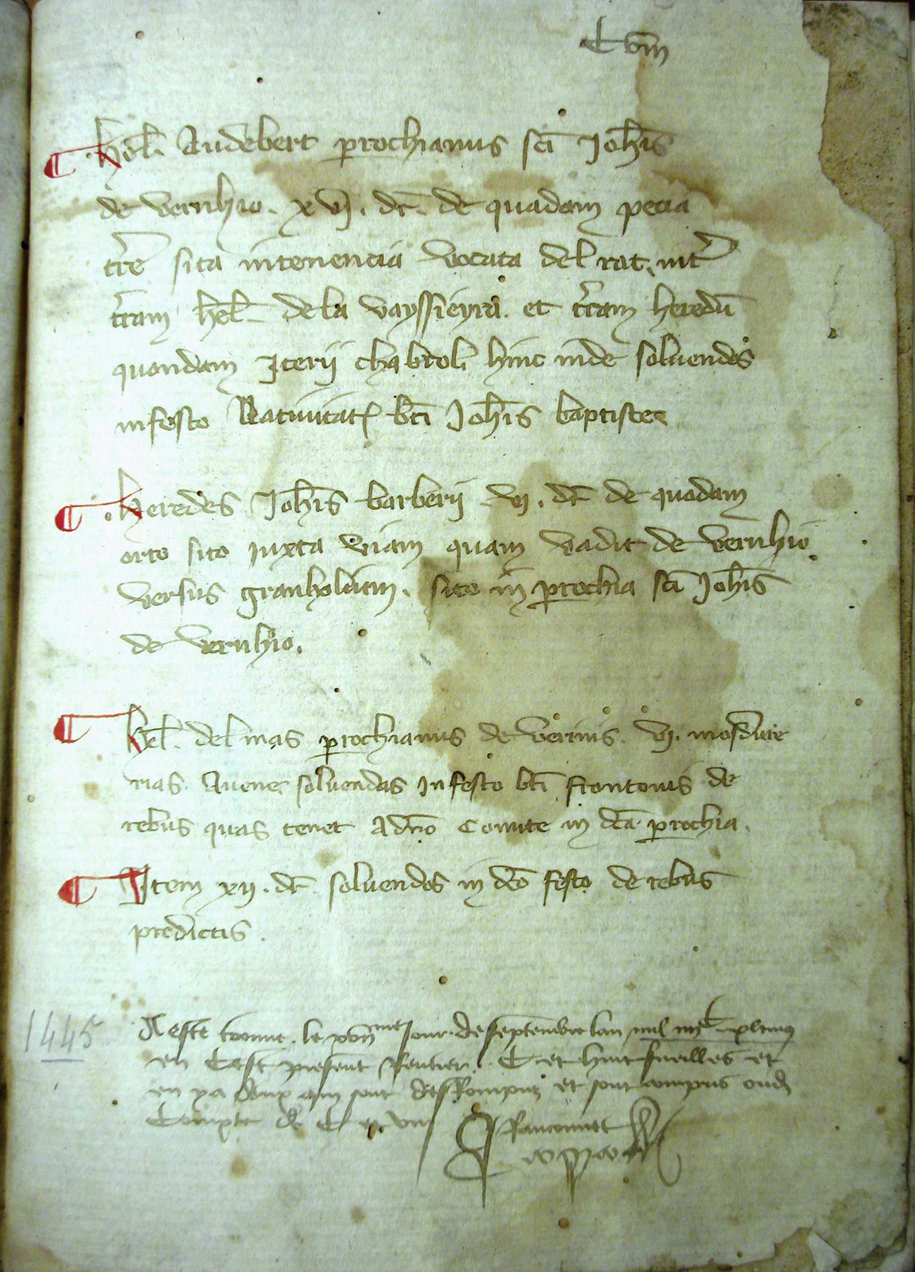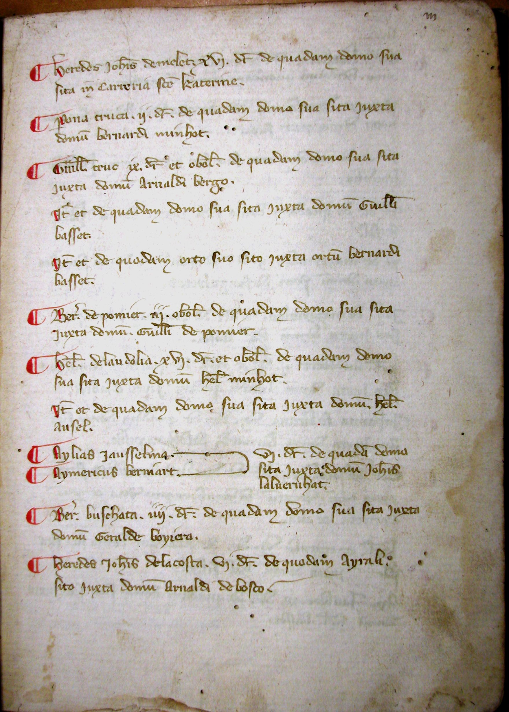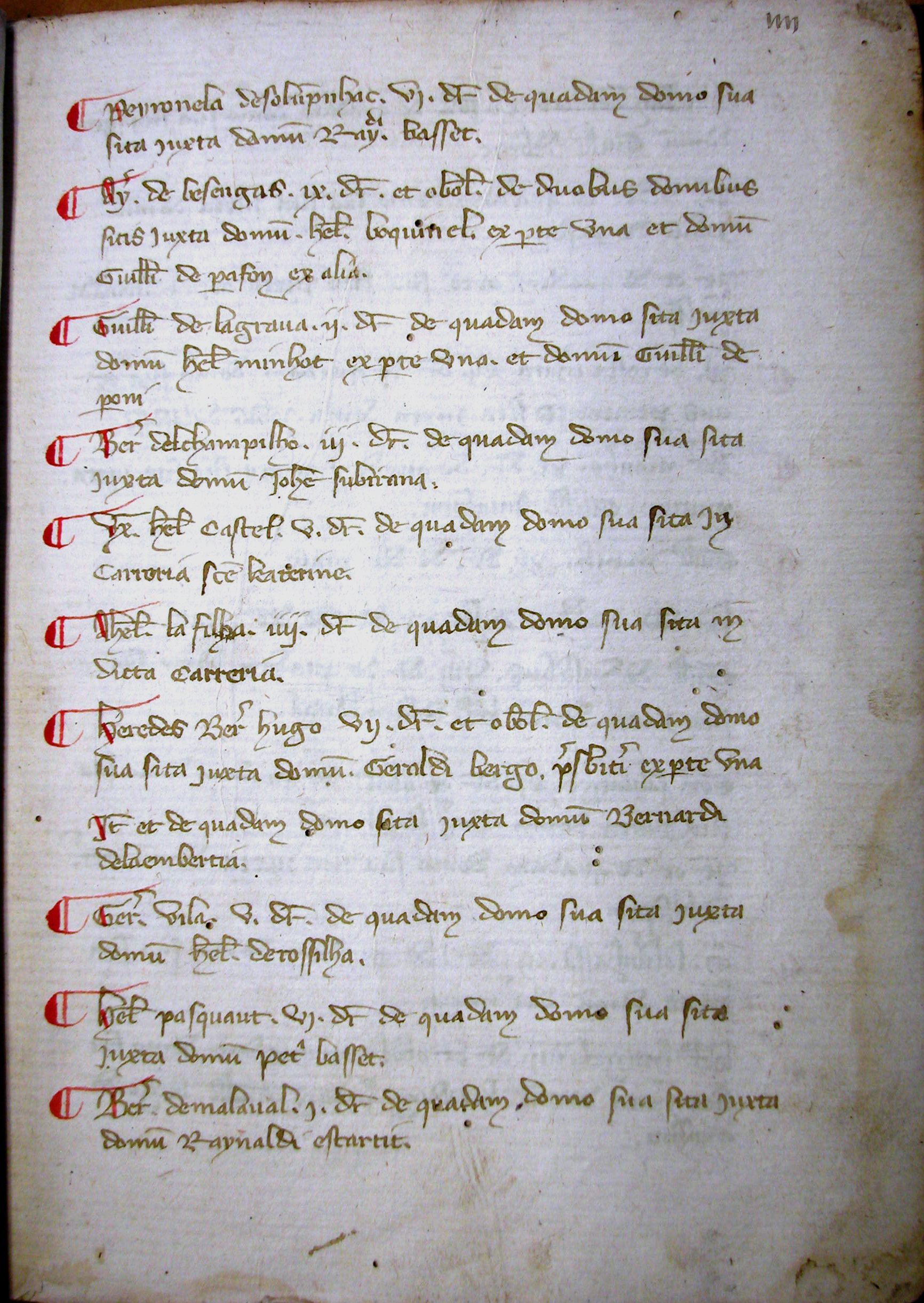 XIVe siècle. Censier du comté de Périgord , rôle des revenus appartenant au comte dans les paroisses de Vergt, Notre Dame-de-Vergt, Silan (Salon), Saint-Jean de Vergt, Saint-Pierre-Lanes, Cressensac, Chalamnhac, Saint-Amand, Veyrines, Saint-Maxime, Corsac, Marsanès, Breuil, Saint-Michel, Sengeyrac, Sénillac, Chignac, Eglise-Neuve d'Uschel, Castaigne-Messier, Lacropte, Sendreus, Ladouze.