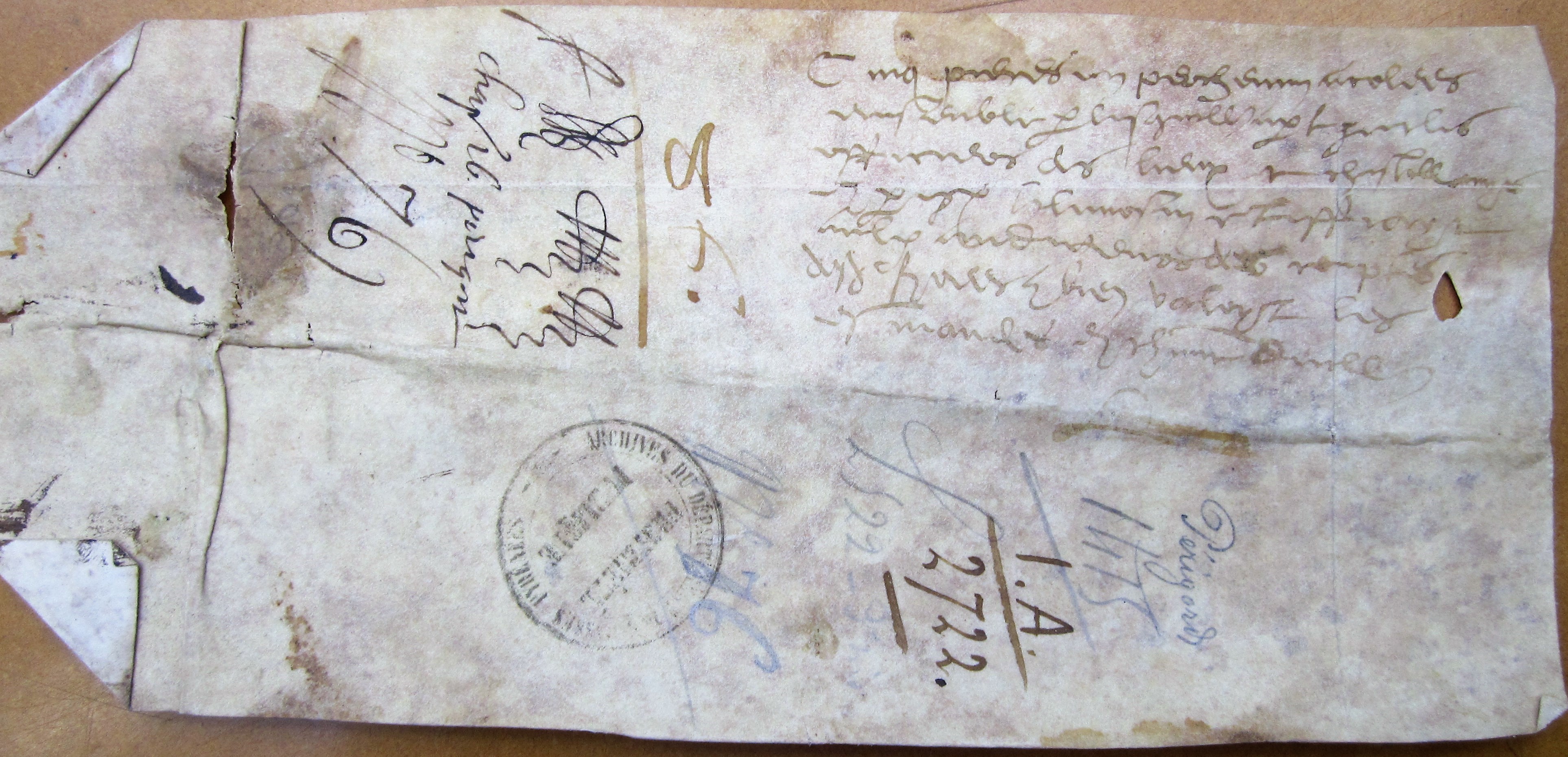Evaluation du produit des amendes du Périgord et du Limousin (5 pièces en parchemin accolées ensemble)