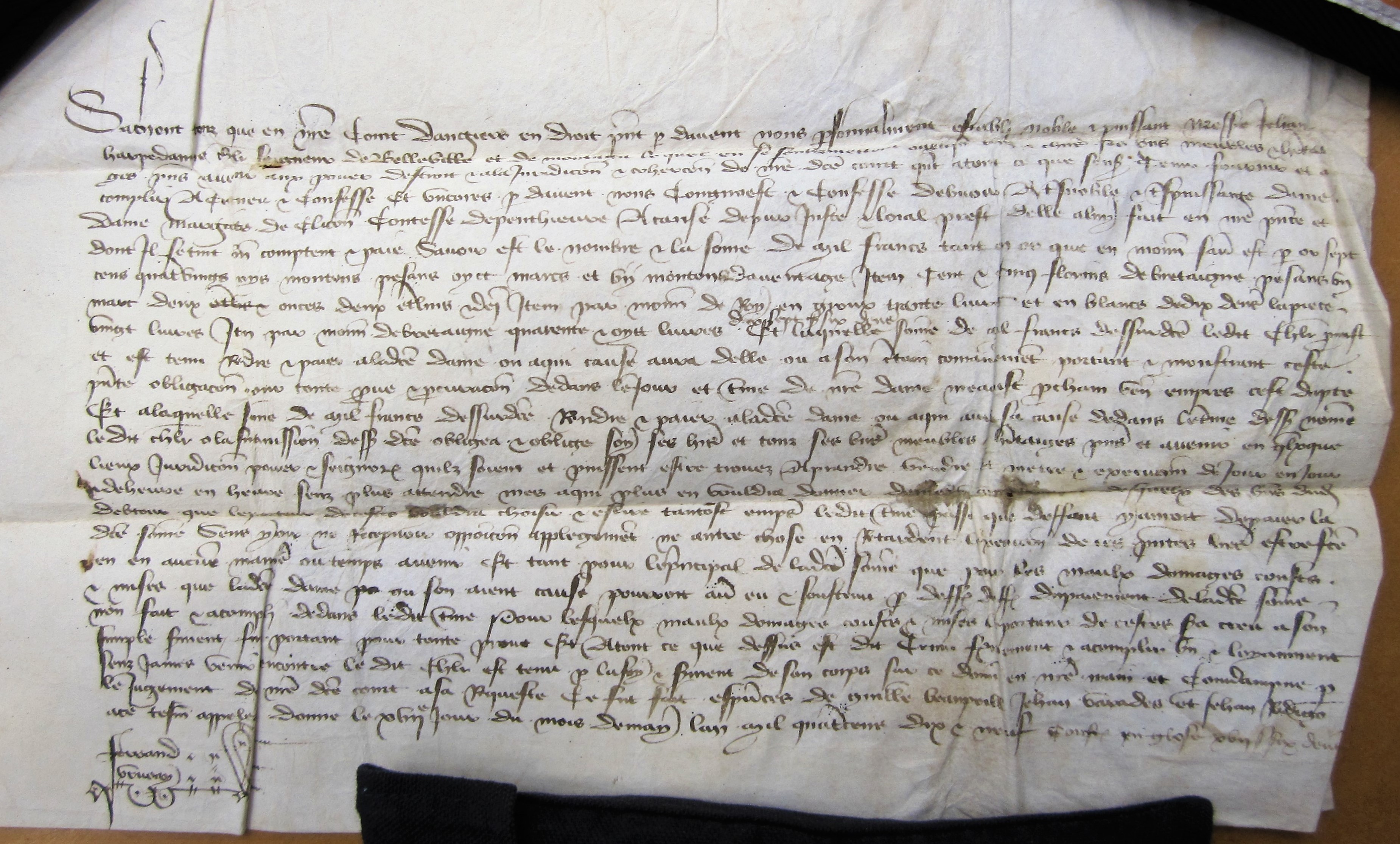 Obligation du seigneur de Balleuilh envers madame de Clisson pour la somme de 1.000 livres tournoises
