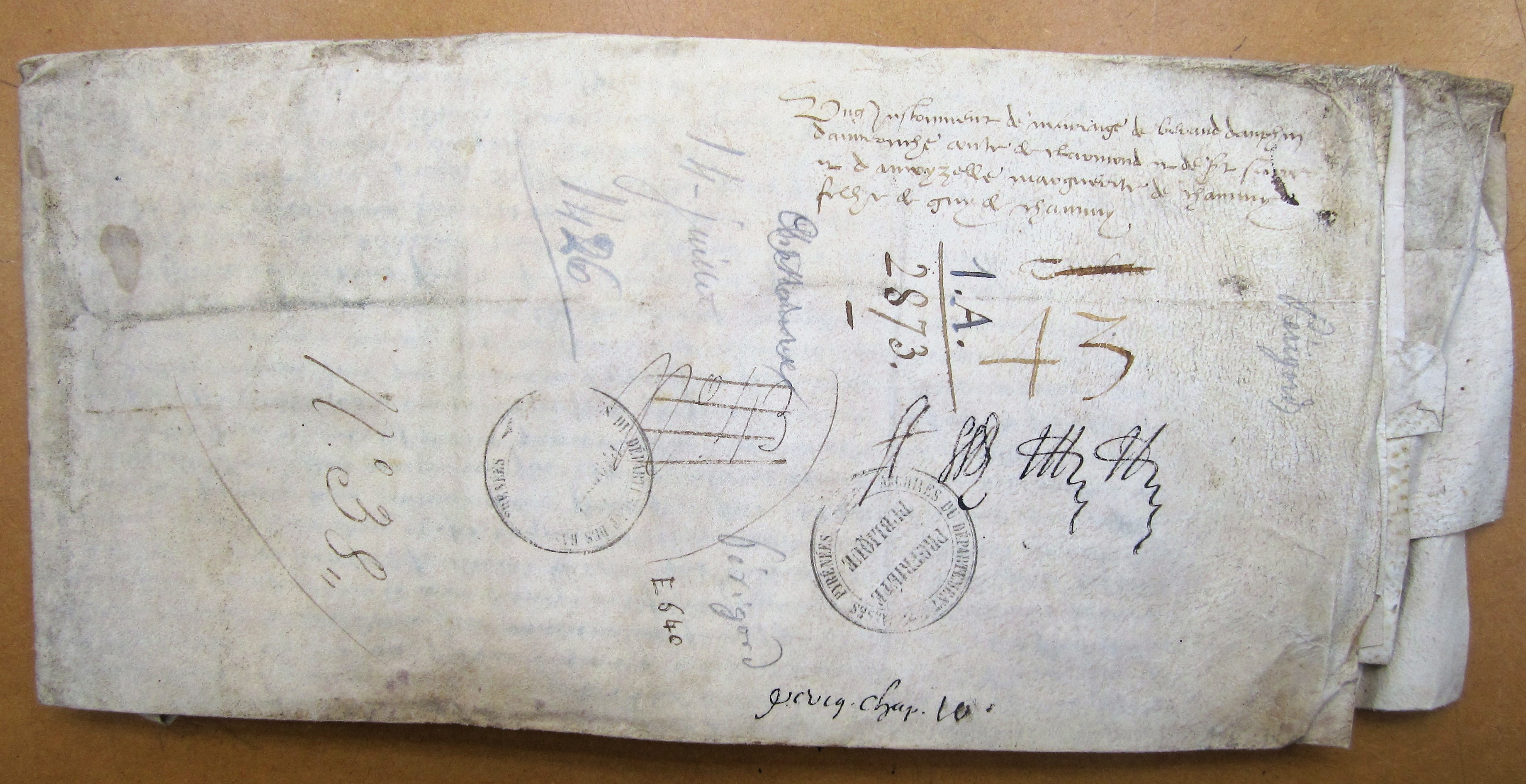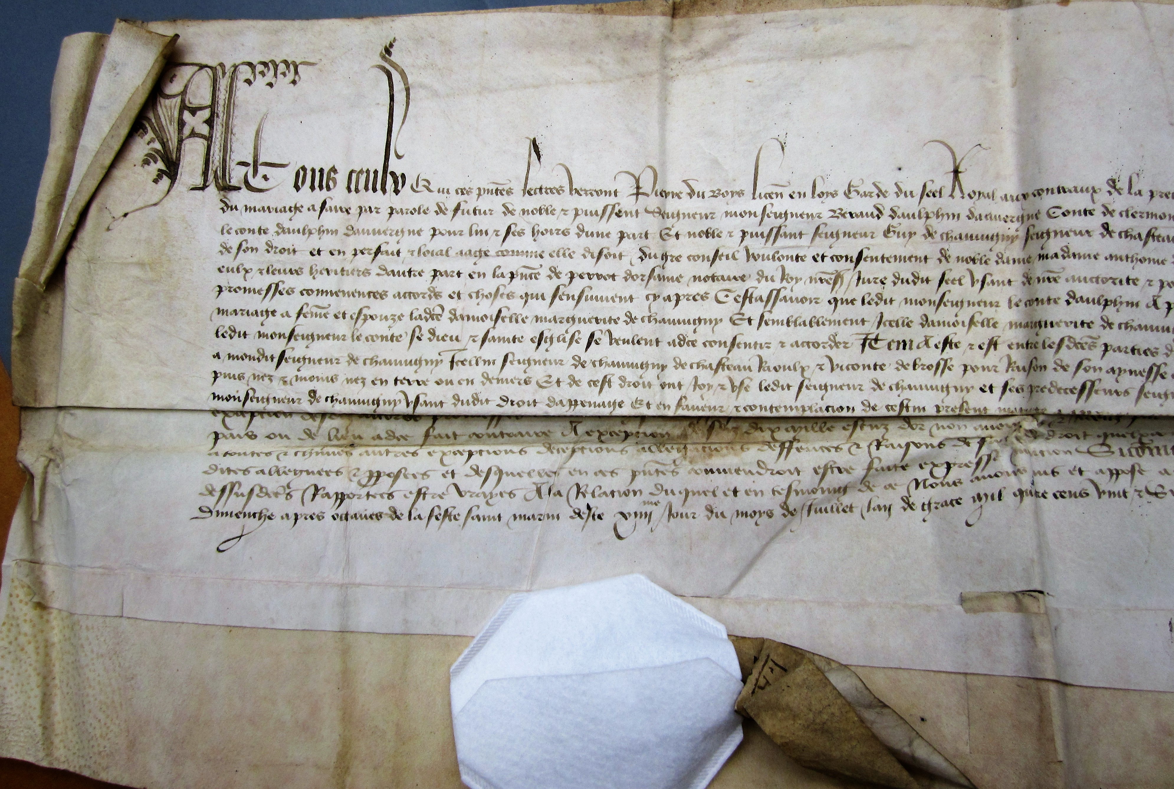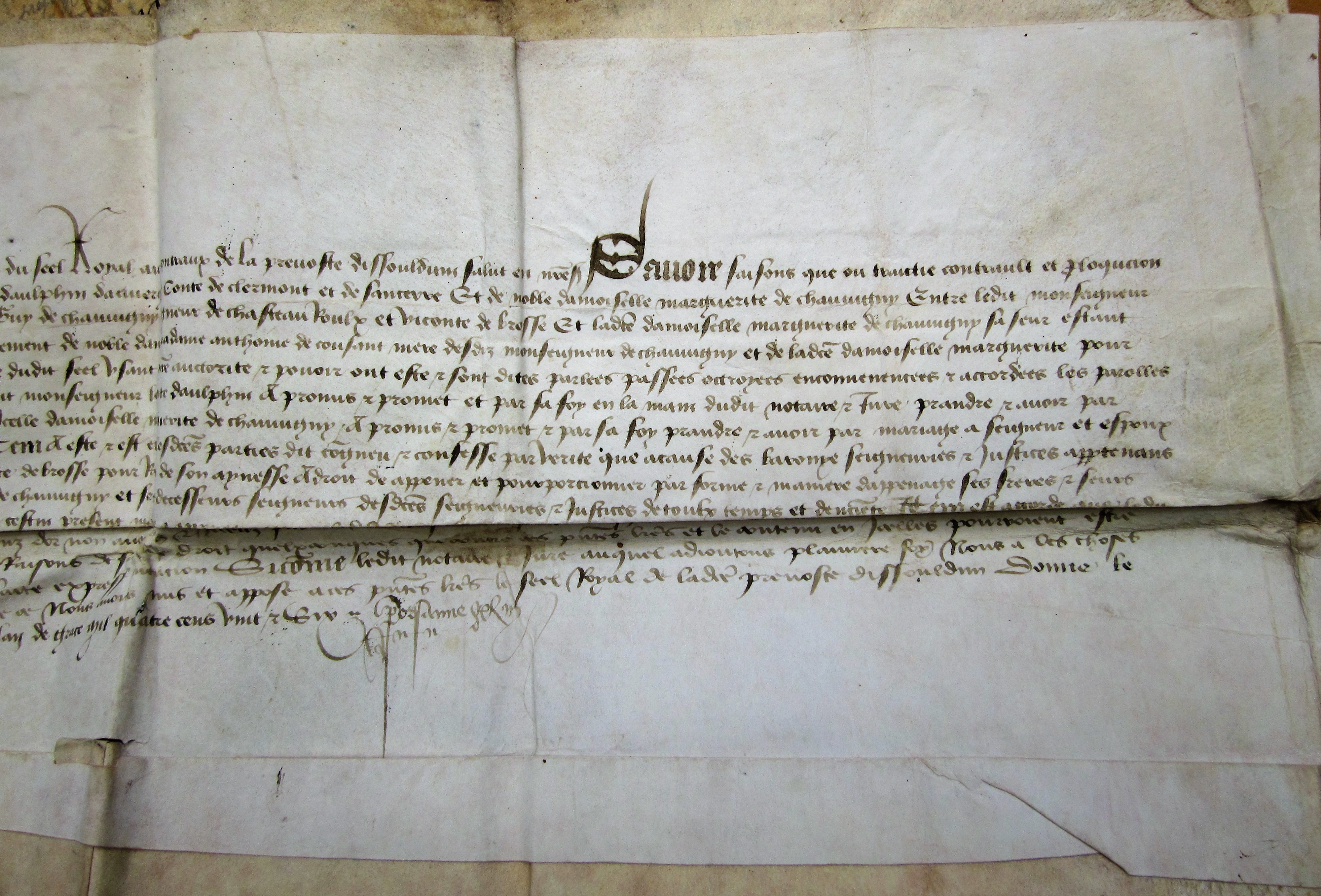 Contrat de mariage de Béraud, dauphin d'Auvergne, comte de Clermont, avec Marguerite de Chauvigny, fille de Gui, seigneur de Châteauroux (1426)