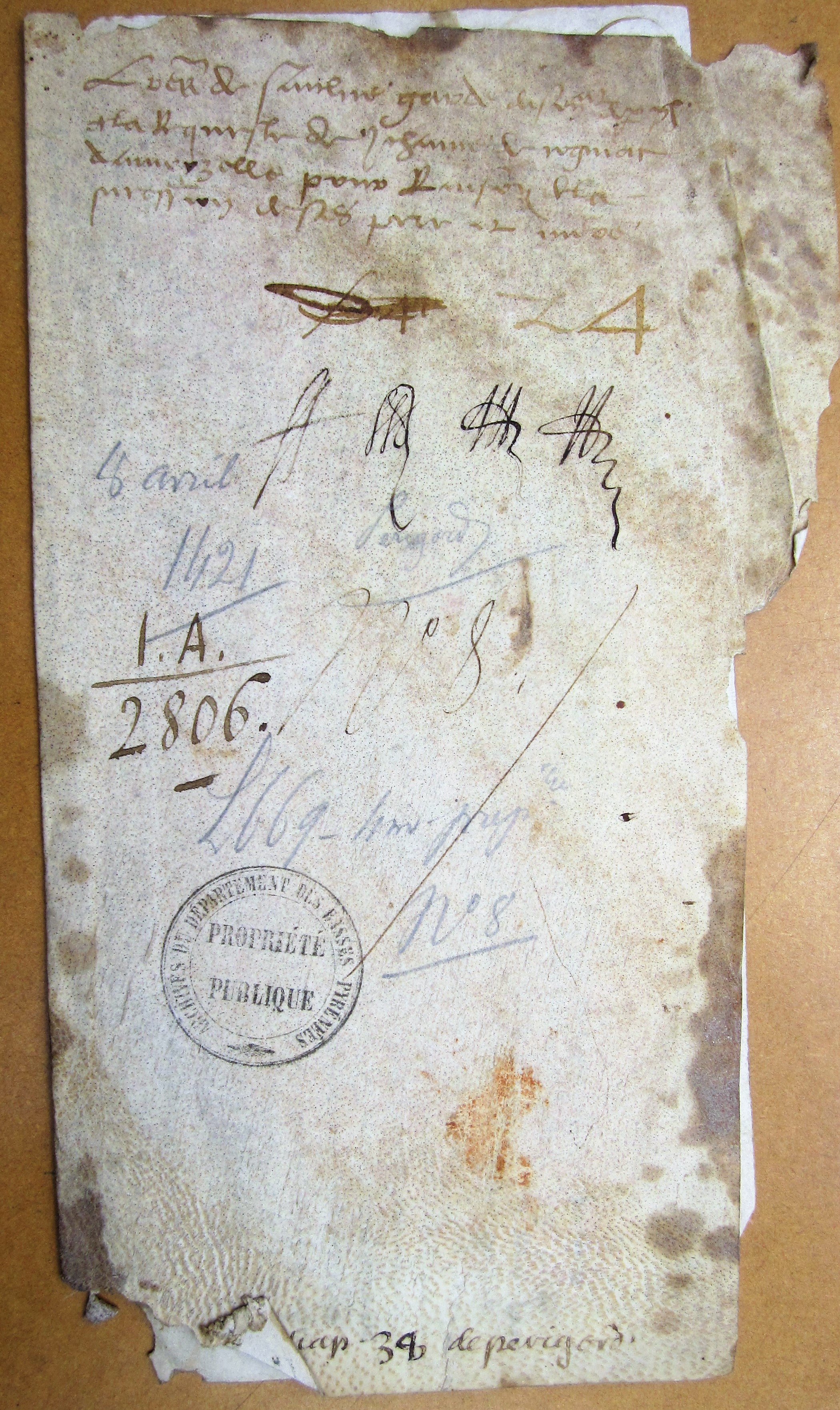 ainsi in Leydet, BnF, Fonds Périgord, tome 9, recueil