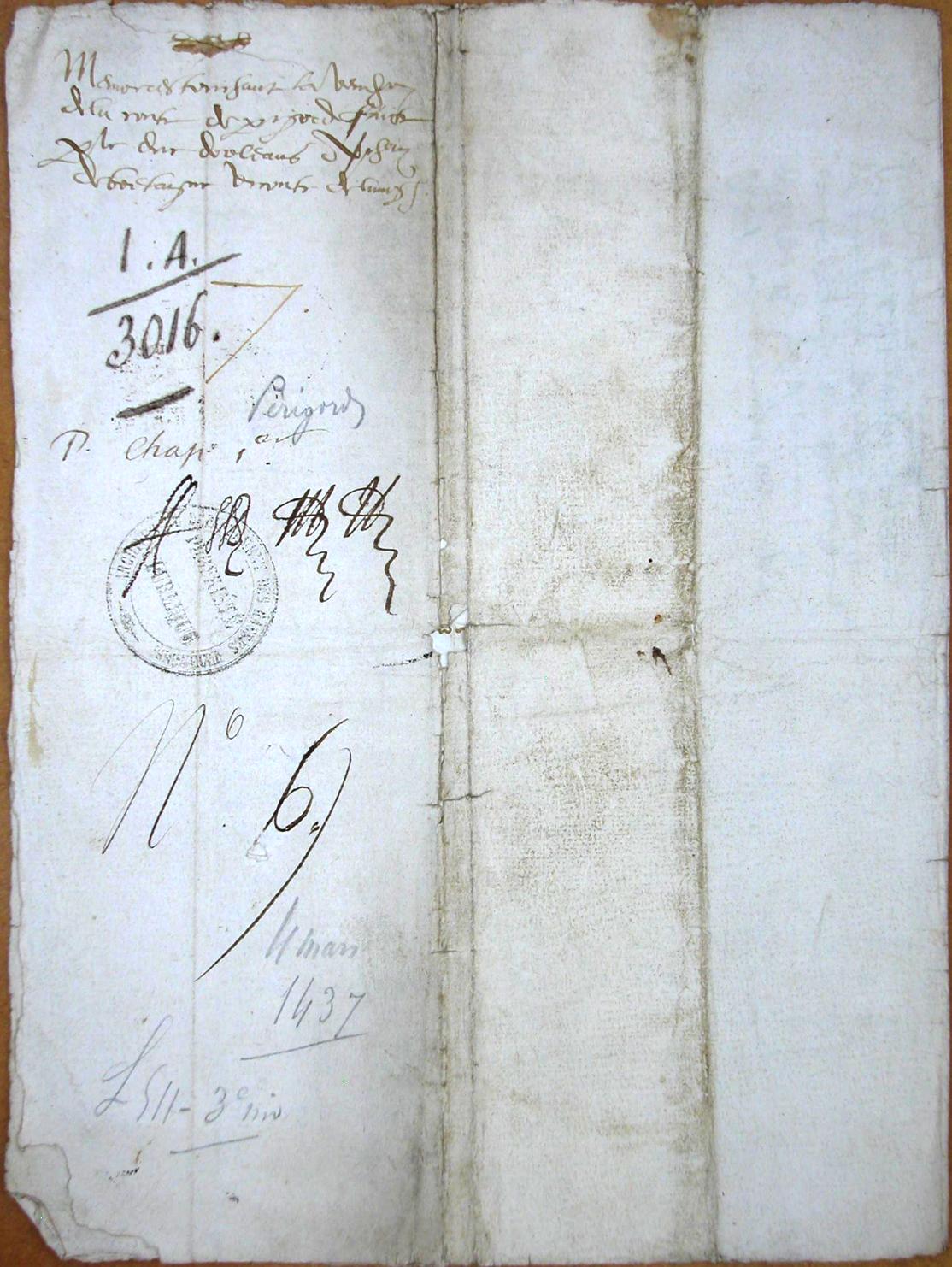 Mémoire en papier touchant la vendition que fit le duc d’Orléans du comté de Périgord à Jean de Bretagne vicomte de Limoges.