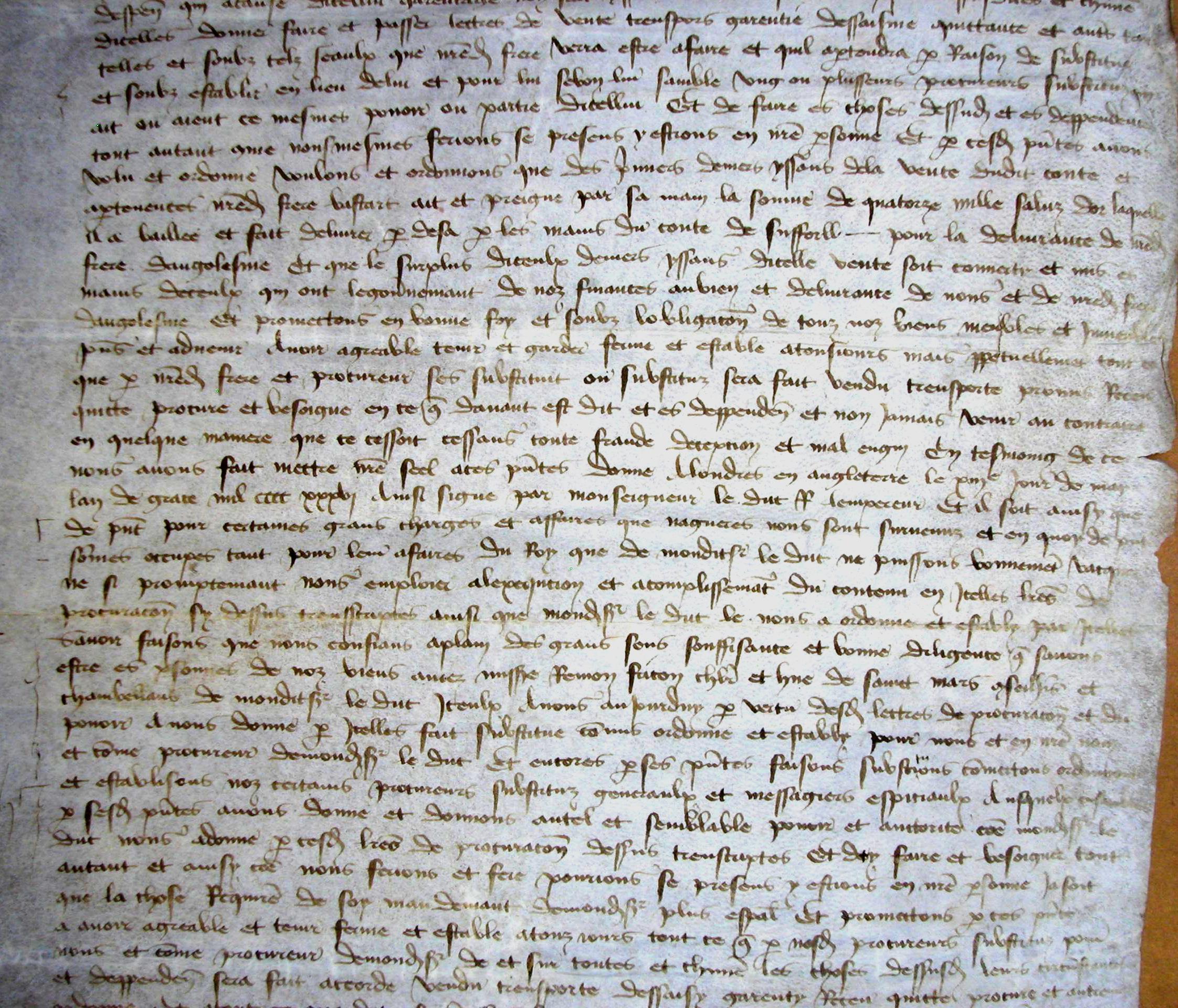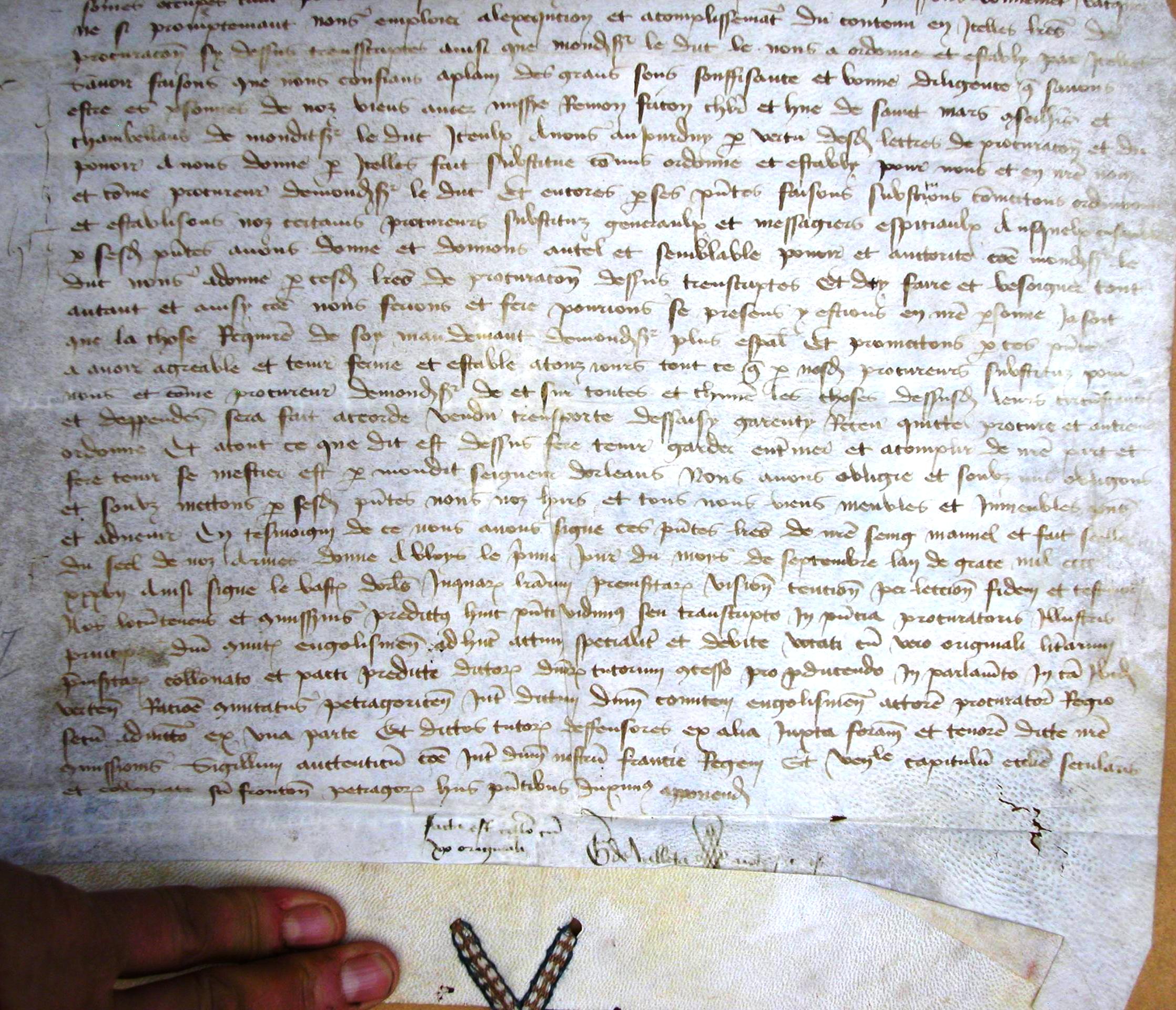 Quittance donnée par le bâtard d'Orléans à Jean de Bretagne, vicomte de Limoges, pour la vente du comté de Périgord (1437) (vidimus de 1462)