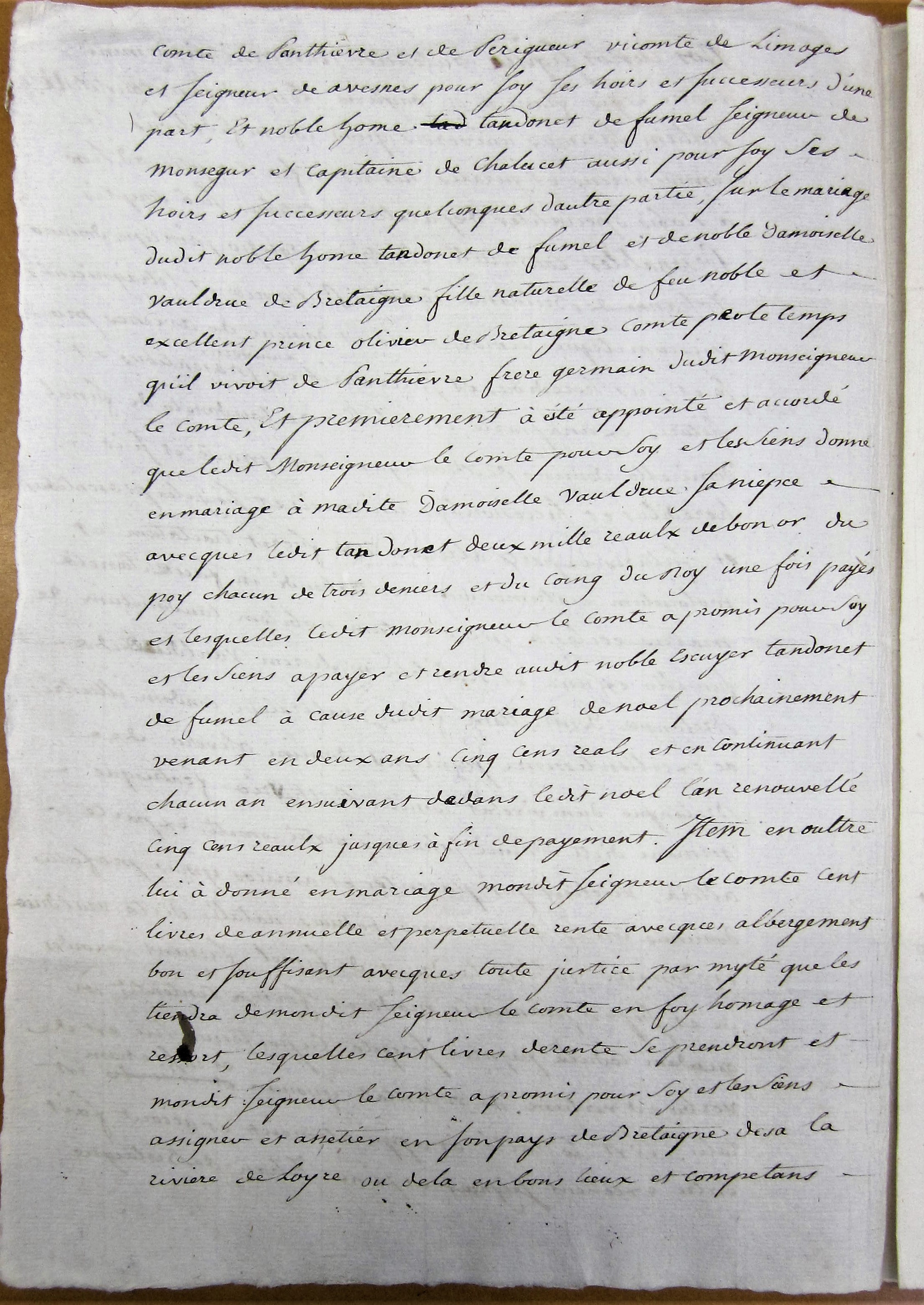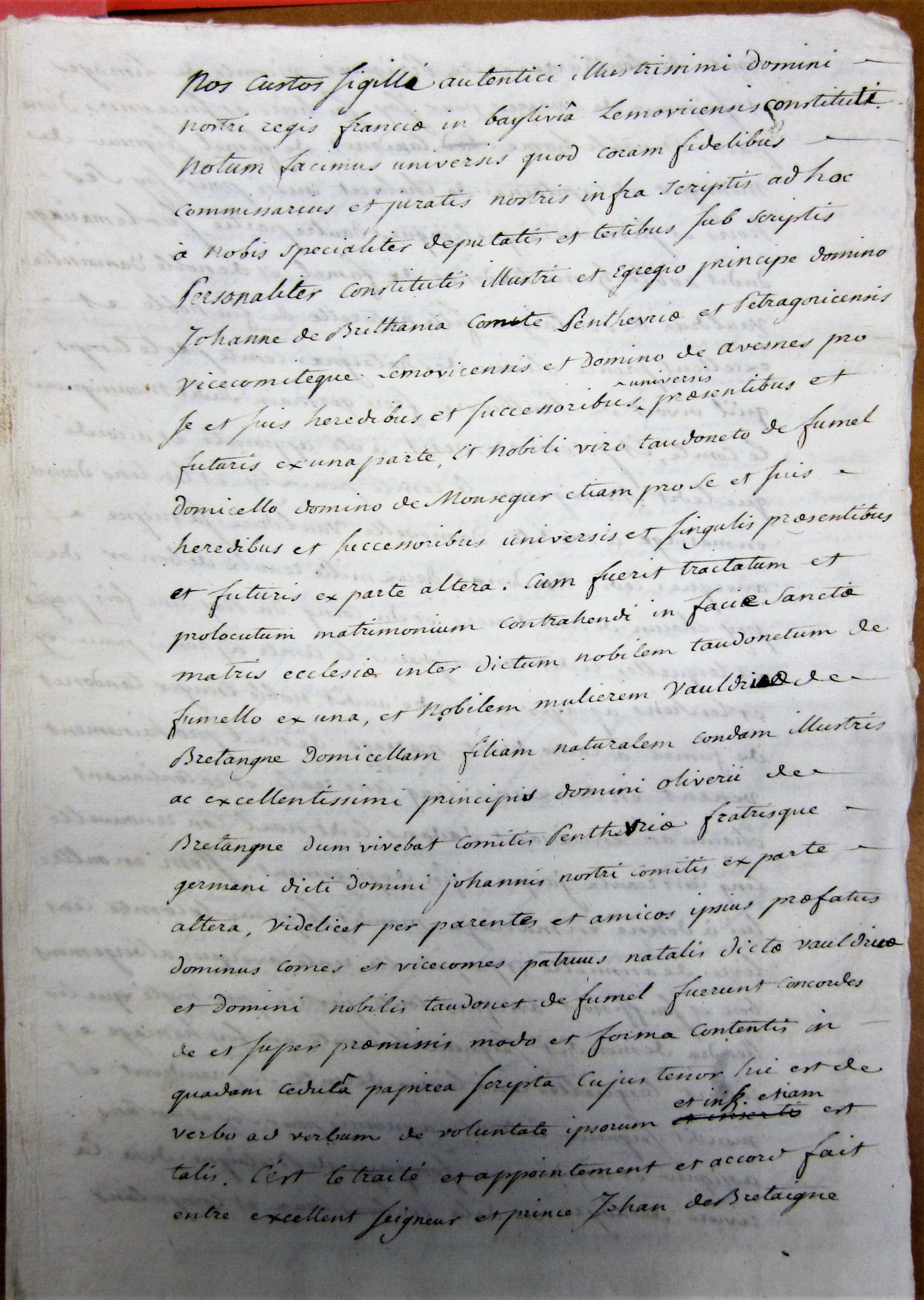 de Bretagne vicomte de Limoges. Signées par Jean Guitard notaire,