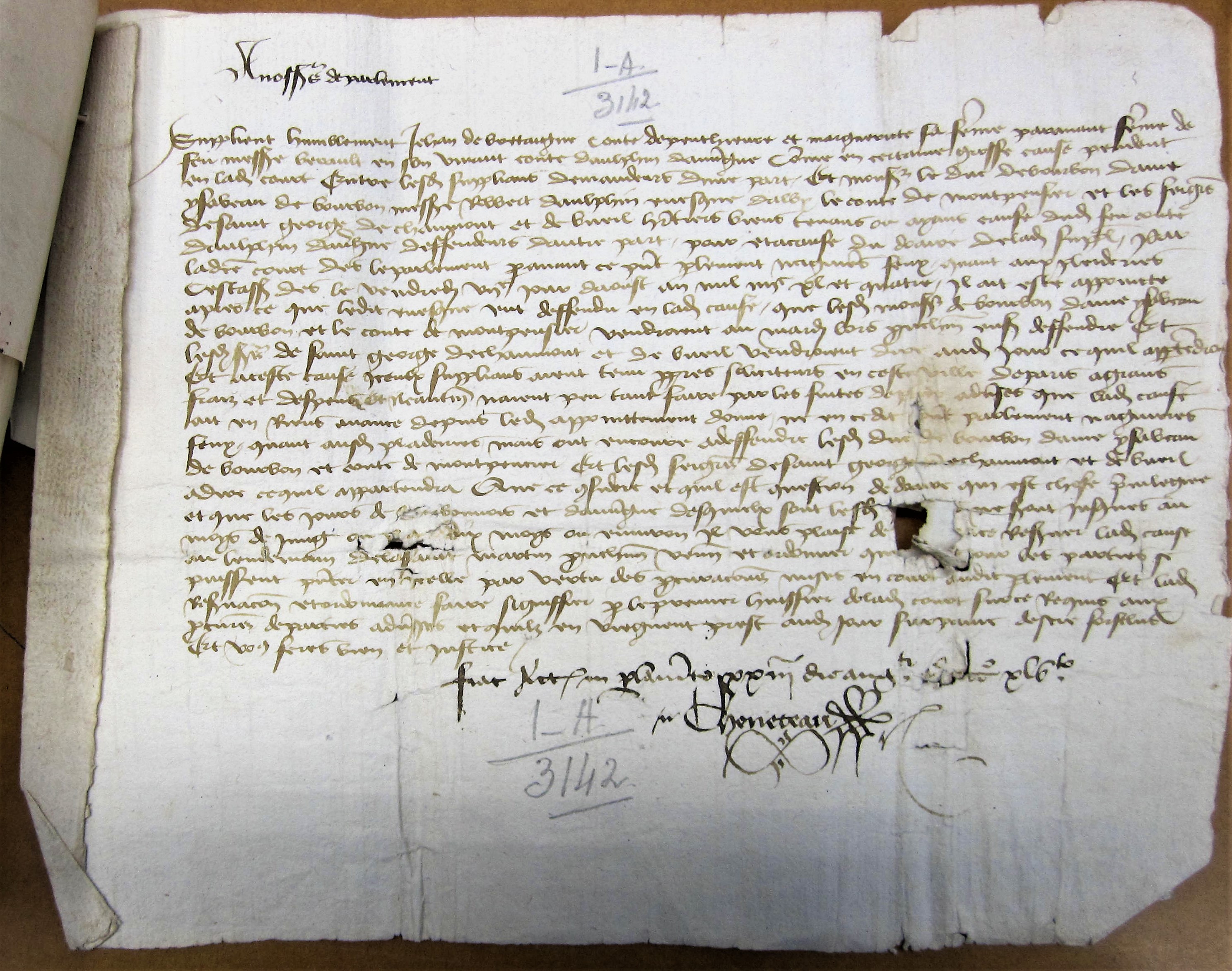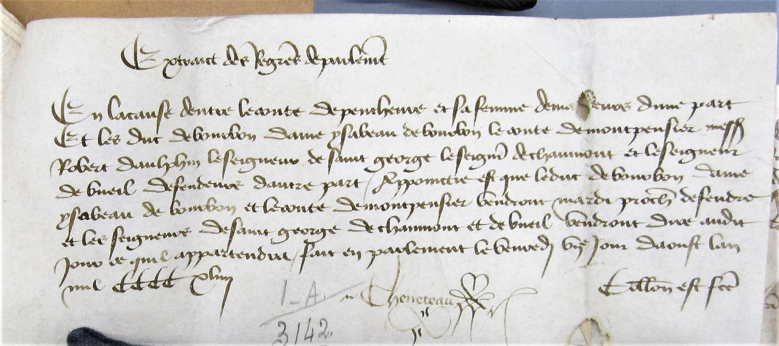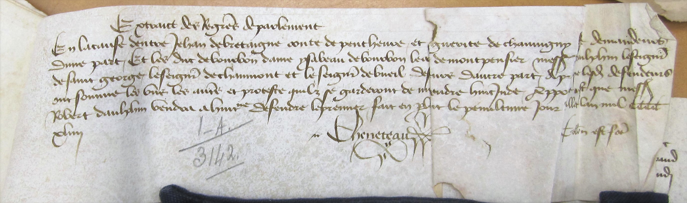 au procès pendant en icelle entre Jean de Bretagne et Marguerite