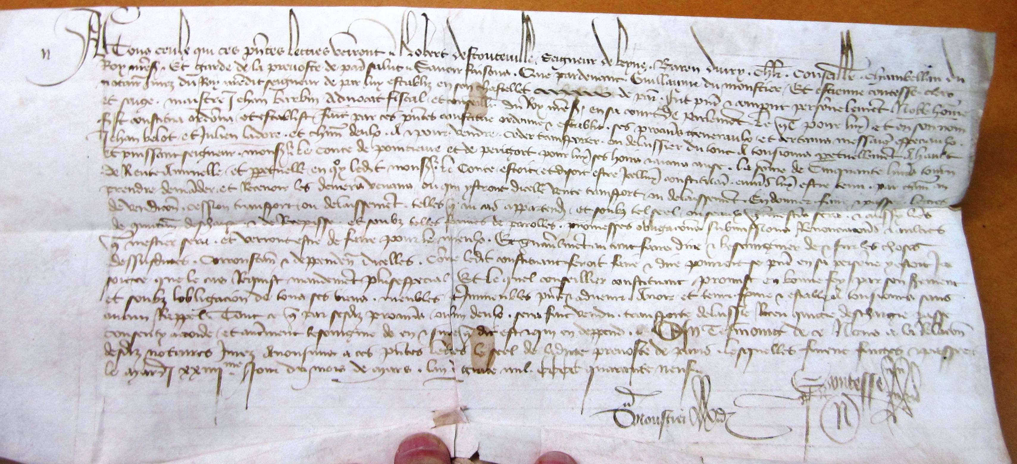 Procuration au nom de Robert d'Estouteville, seigneur de Beyne, garde de la prévosté de Paris (1449).