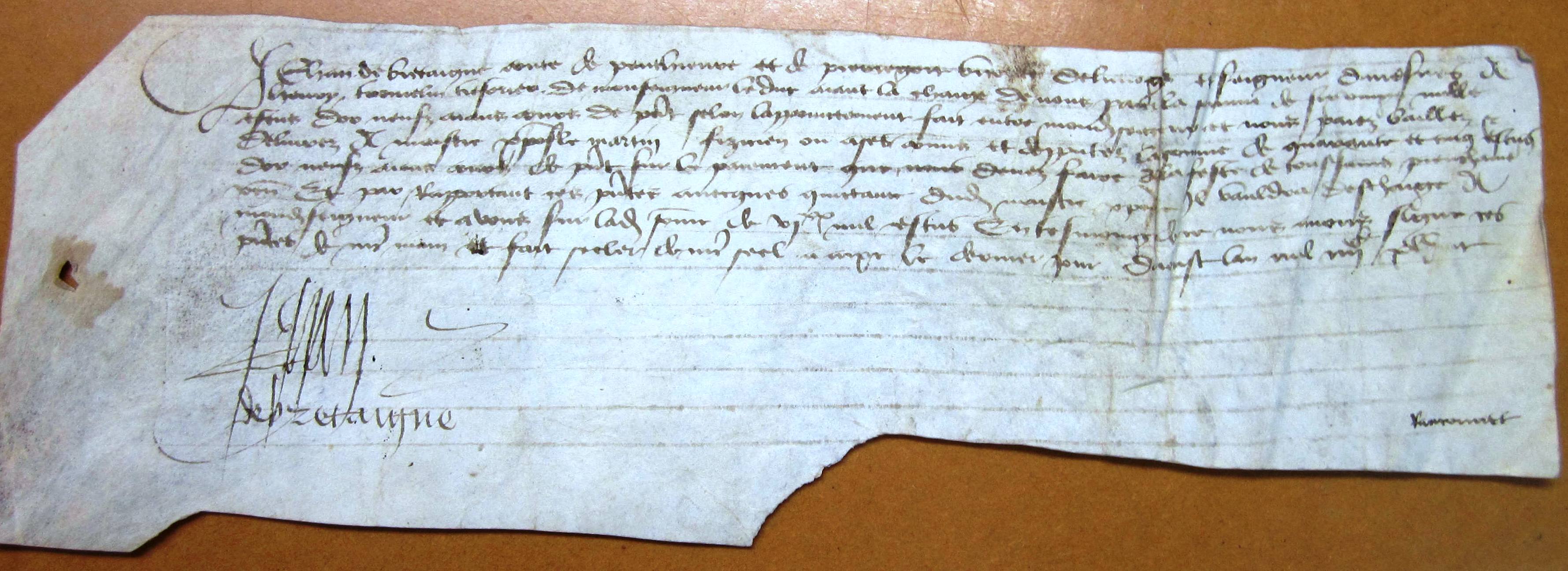 de Jean de Bretagne, comte de Périgord, à Henry Tromelin trésorier