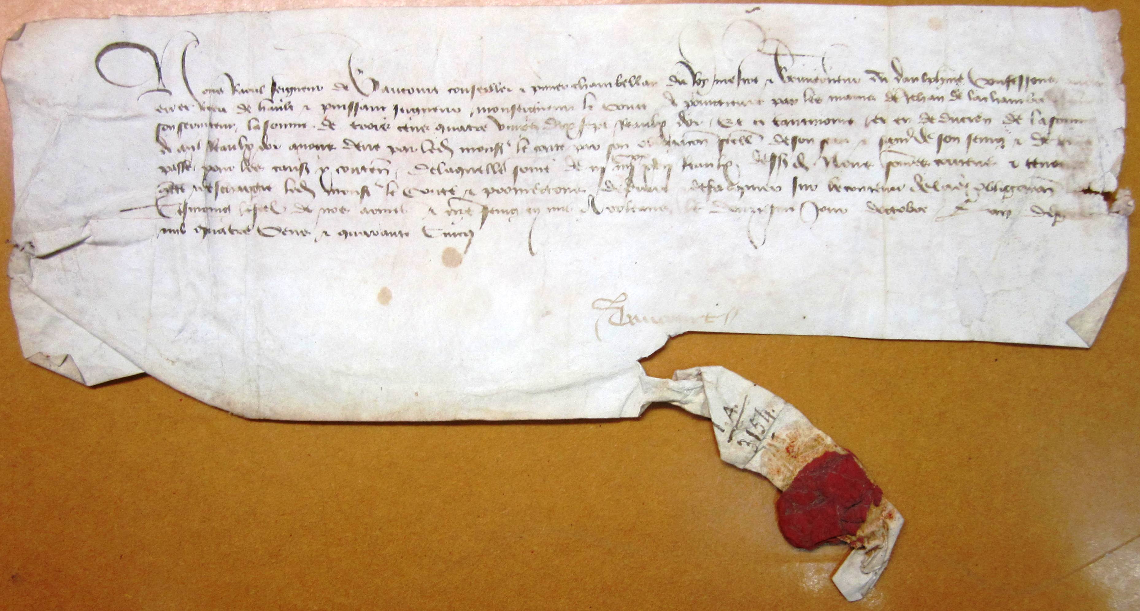 comte, le 12 octobre 1445. Signée Vaucourt."