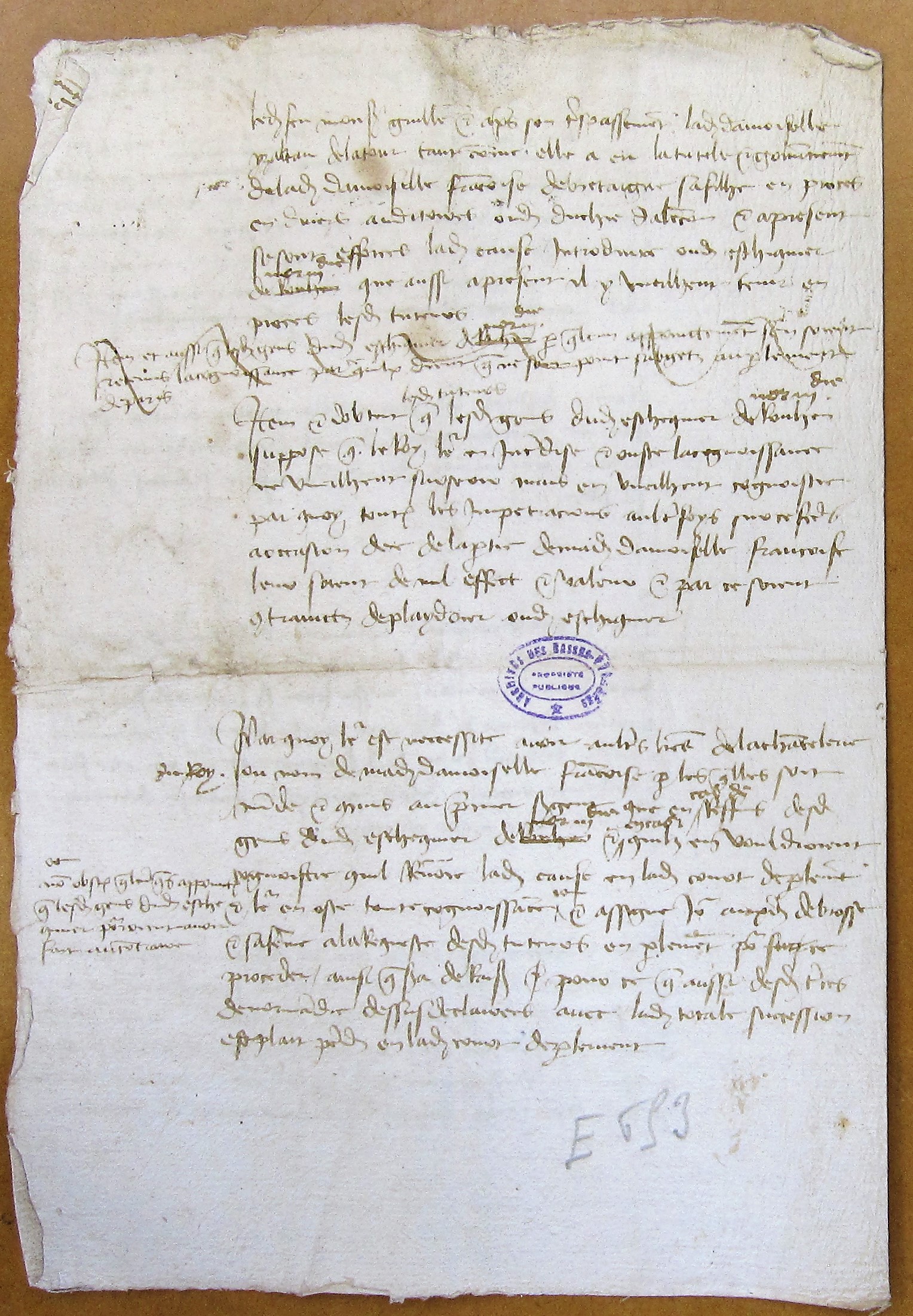 Mémoire sur la succession de Guillaume de Bretagne, avec mention de Jean de Brosse et Isabeau de La Tour