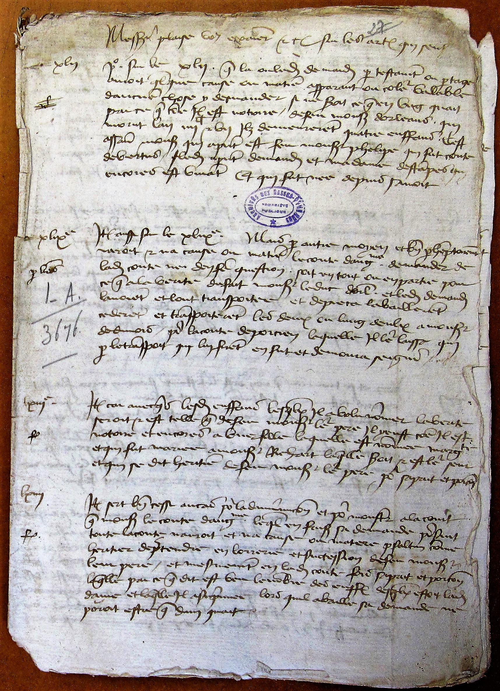 Liste de pièces ou articles pour servir à Alain d'Albret contre le comte d'Angoulême au sujet du comté de Périgord (n° 27 & 45)