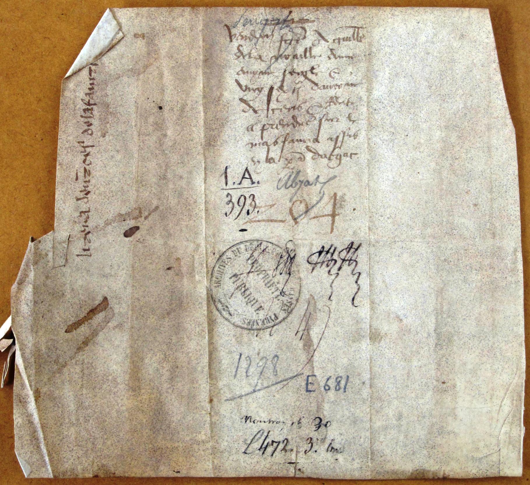 d’icellui. Datée XV kal. maii AD 1298"