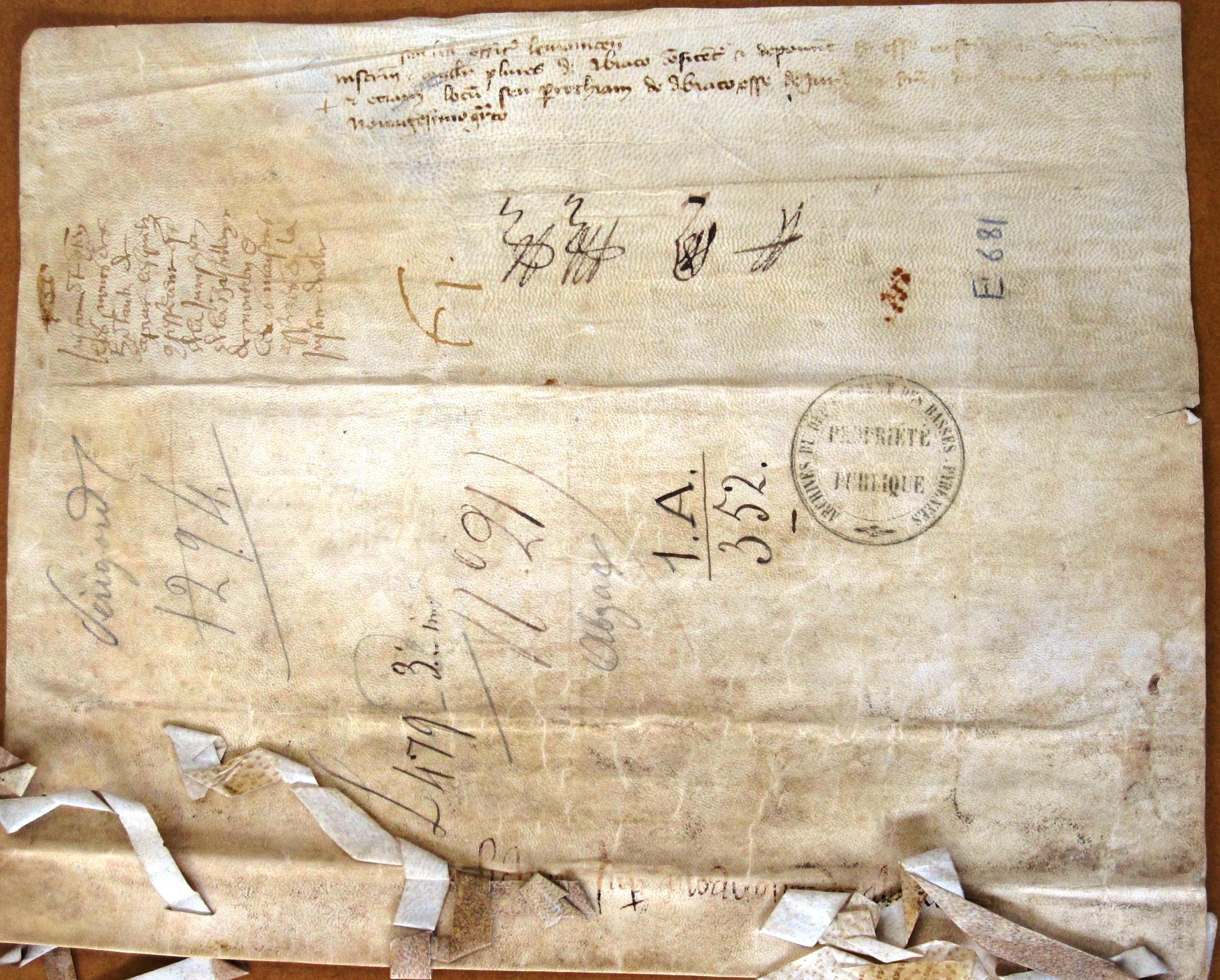 instrument signé et scellé de plusieurs sceaux contenant