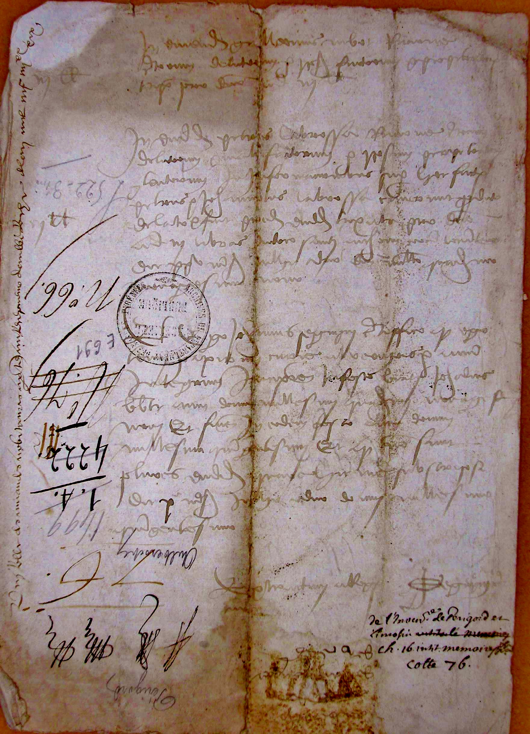 Note préliminaire : Cotté n ° 76, chapitre 16 (mémoires etc.) dans l'inventaire de Jean Fabri (E 607)