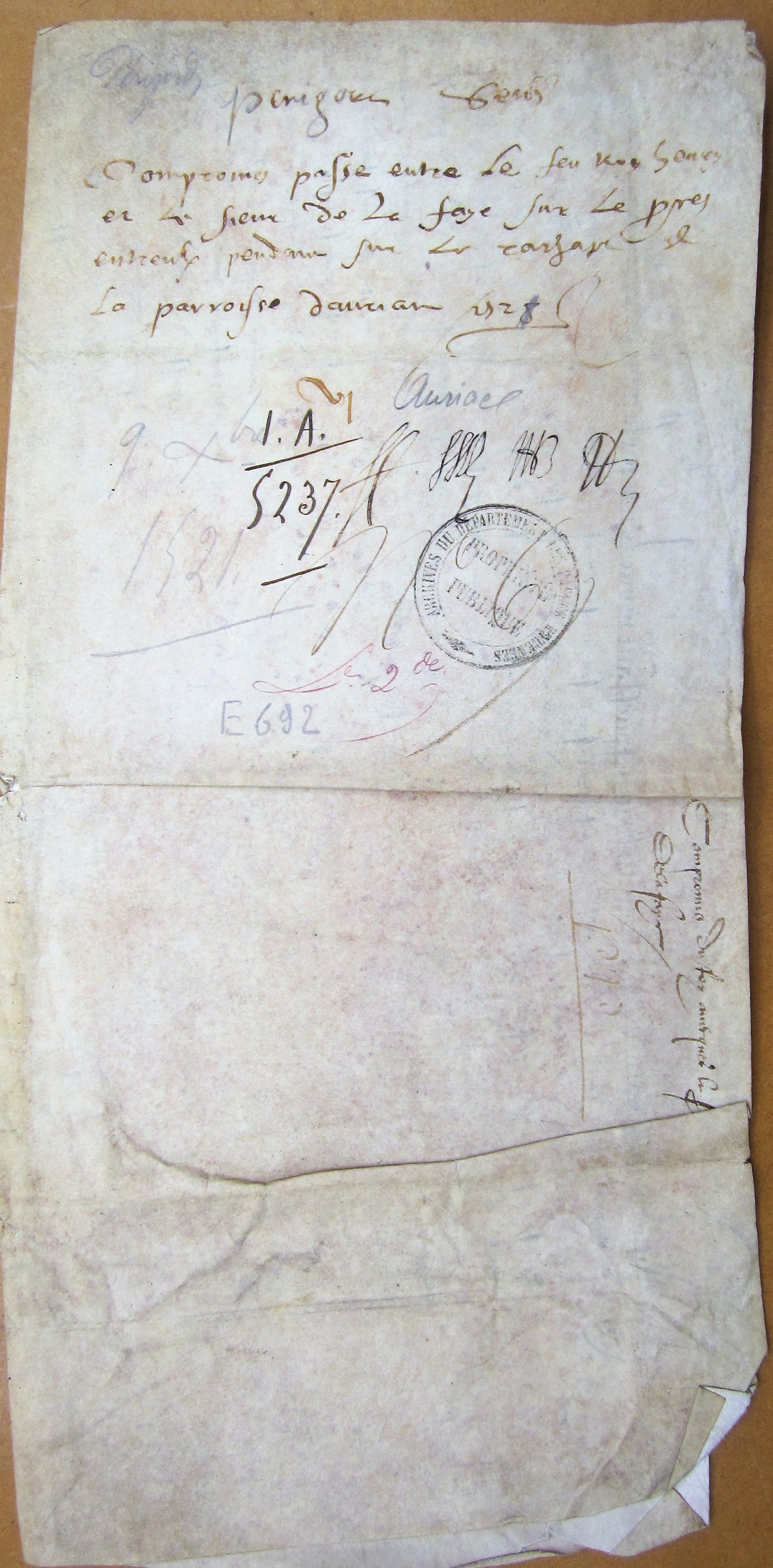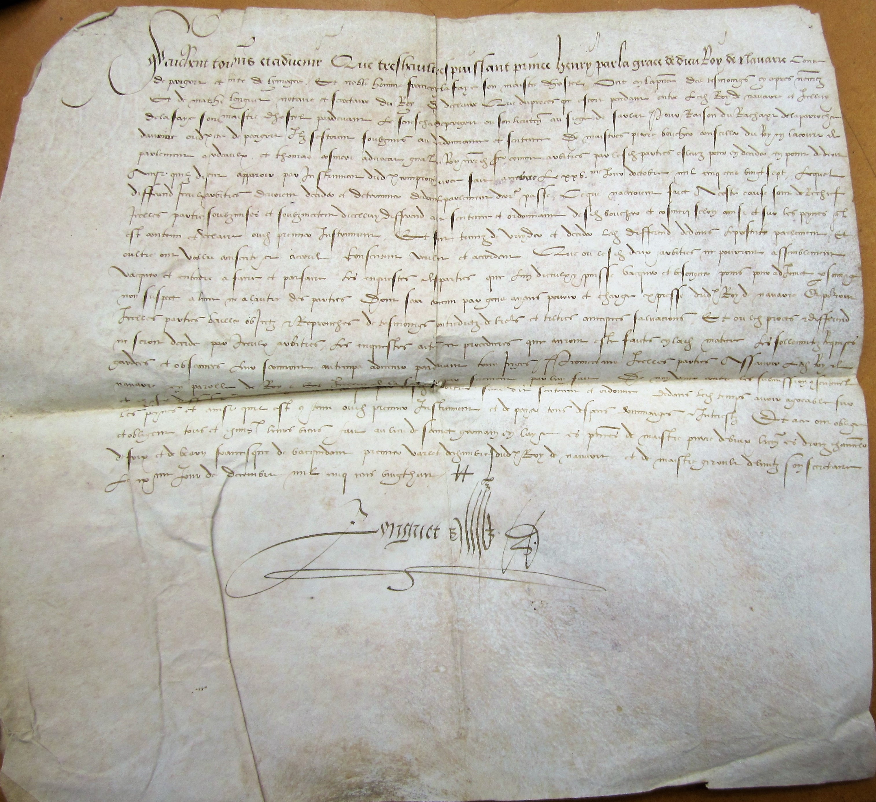 Transaction entre Henri II de Navarre et François de La Faye, son maitre d'hôtel, relative au rachat de la paroisse d'Auriac