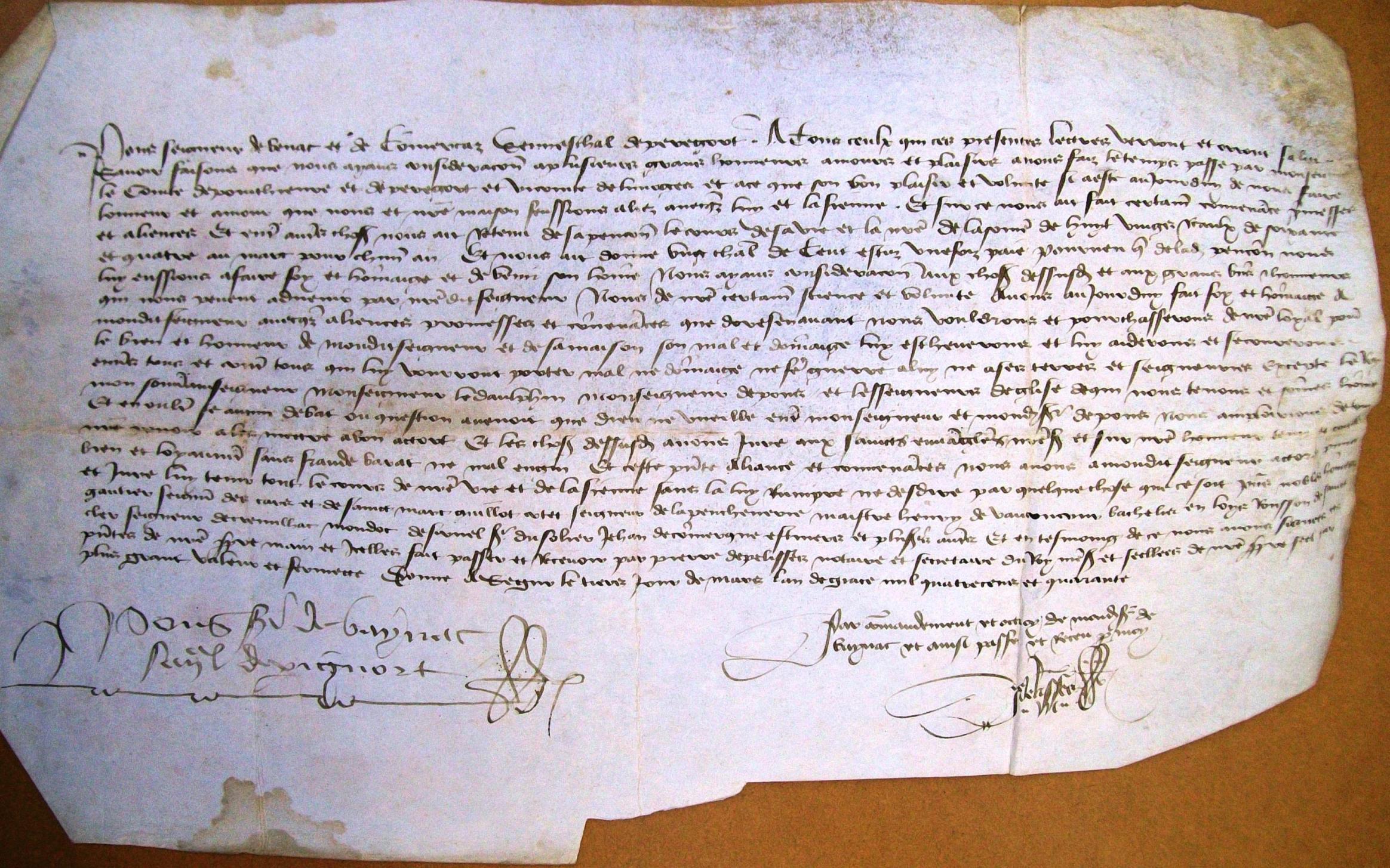 Hommage rendu à Jean de Bretagne, comte de Périgord, par Pons, seigneur de Beynac et de Comarque, sénéchal de Périgord (1440).