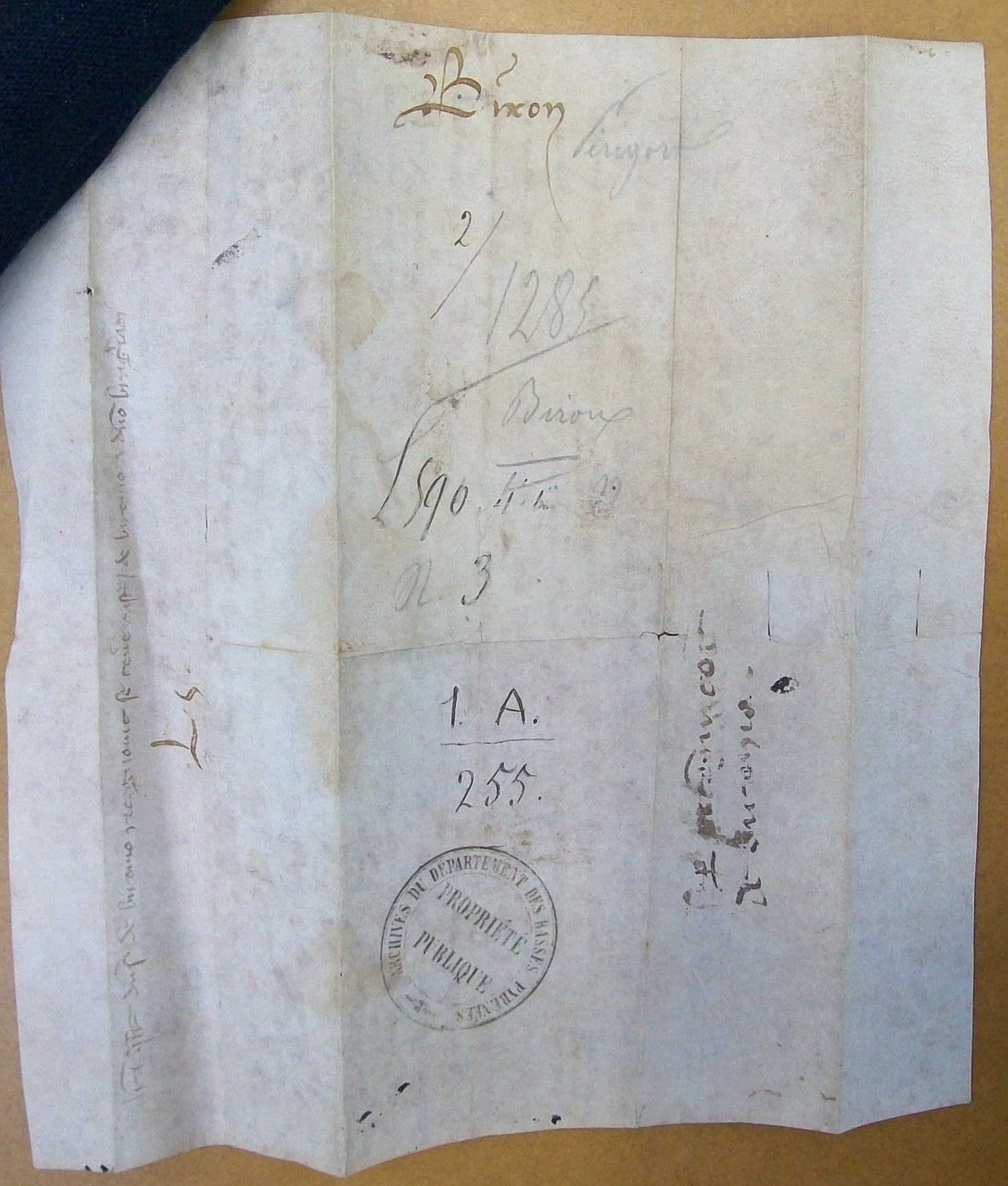 Transcrit partiellement par Leydet, BnF, Fonds Périgord, tome 10, recueil