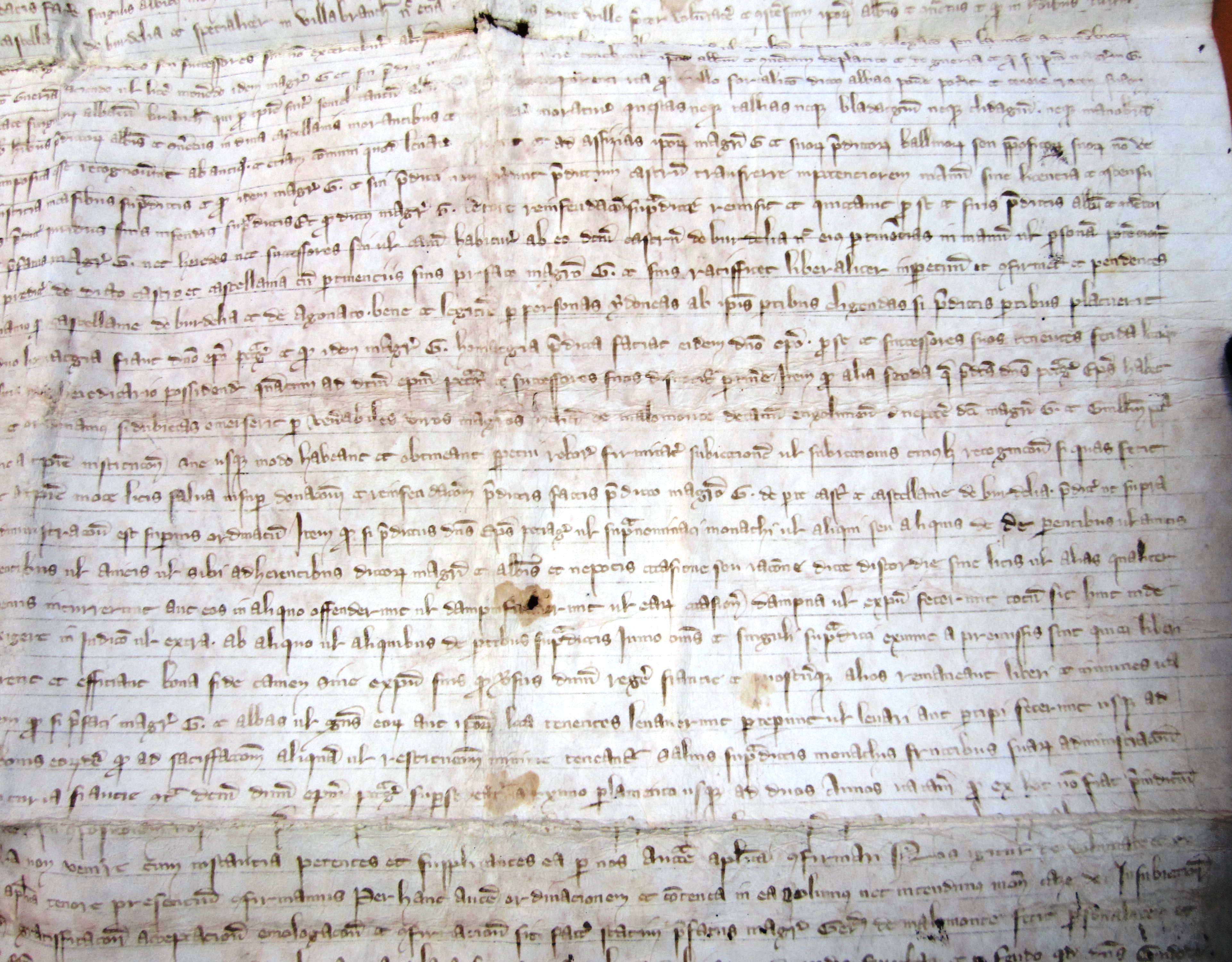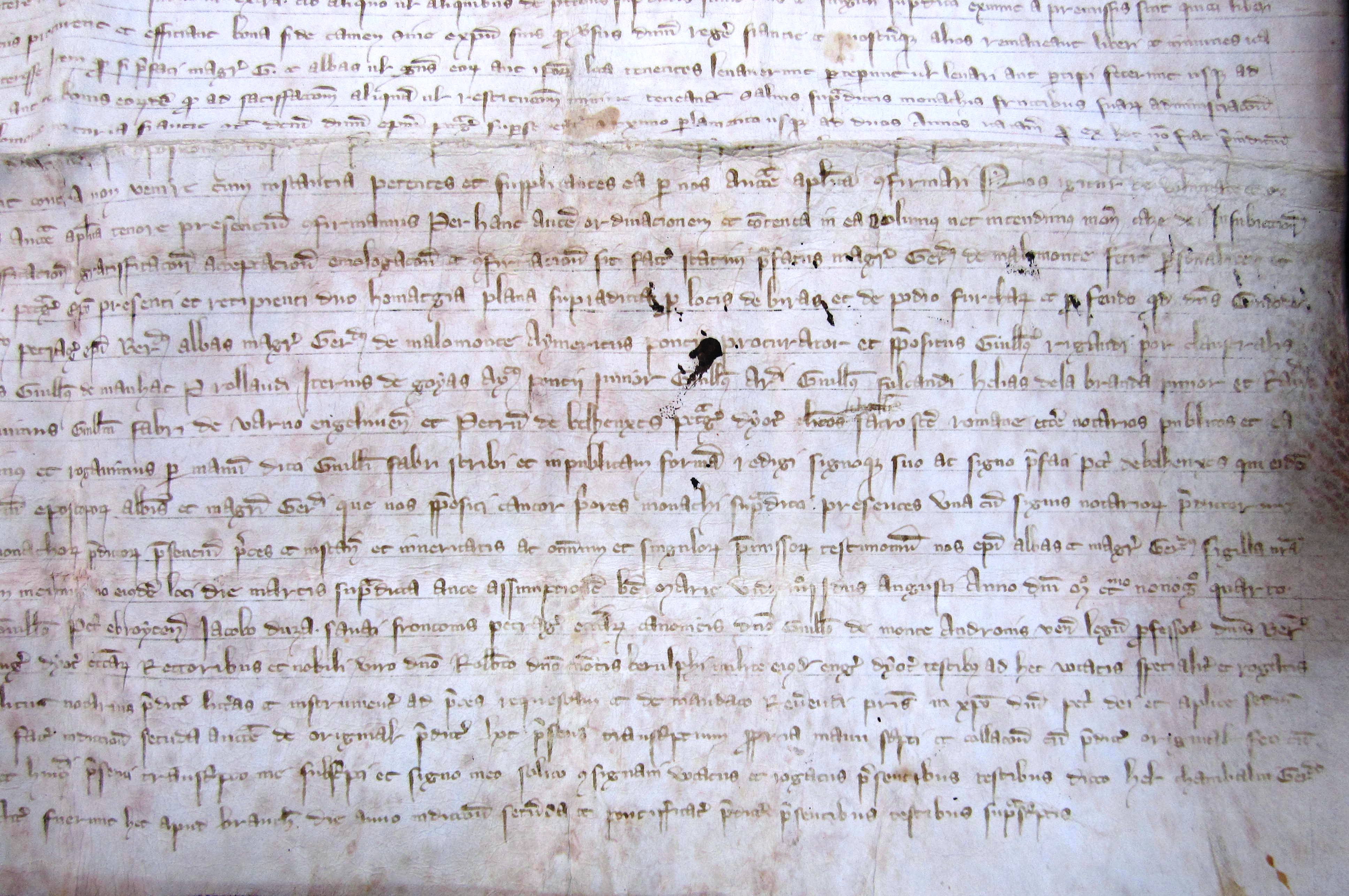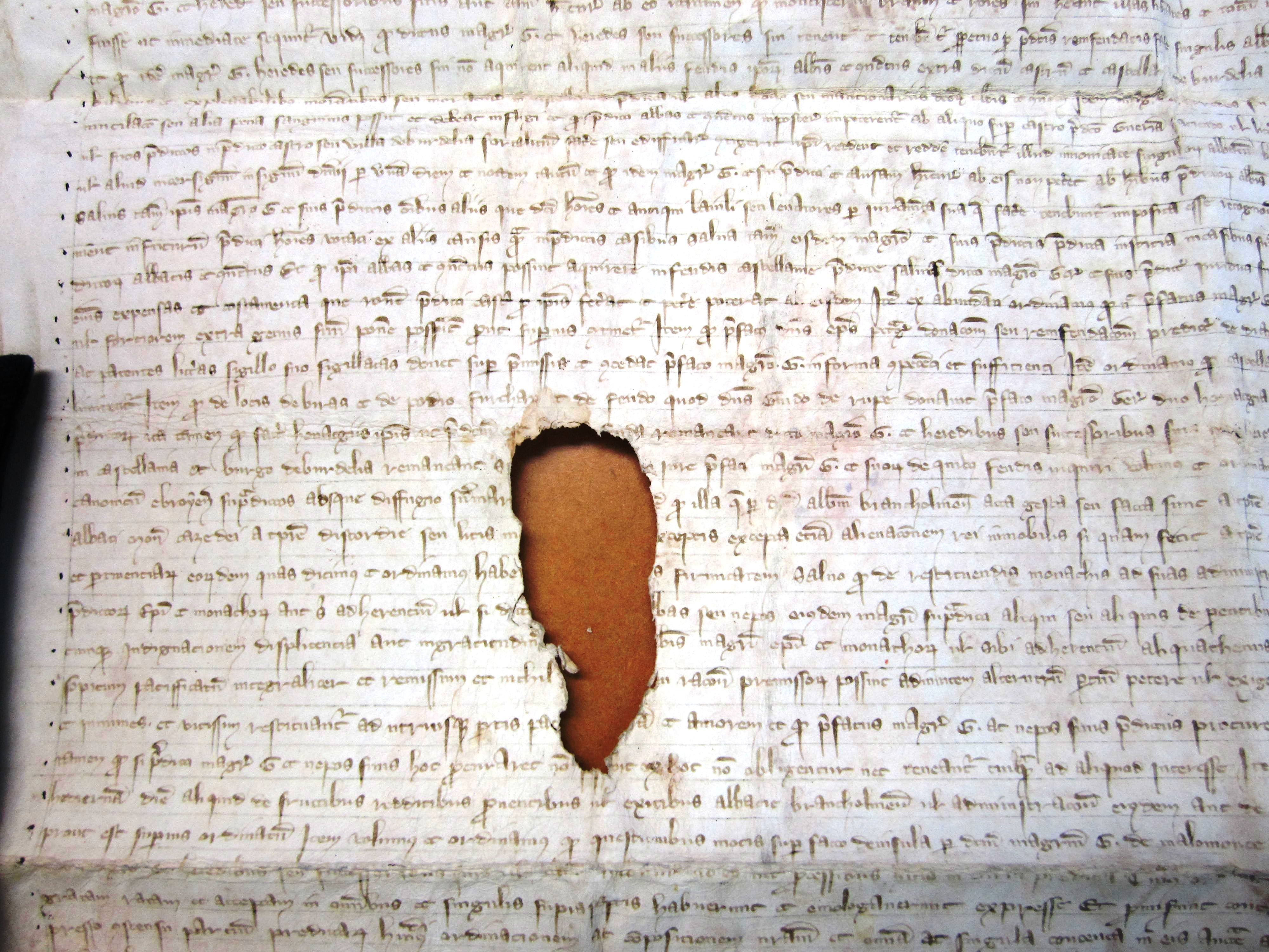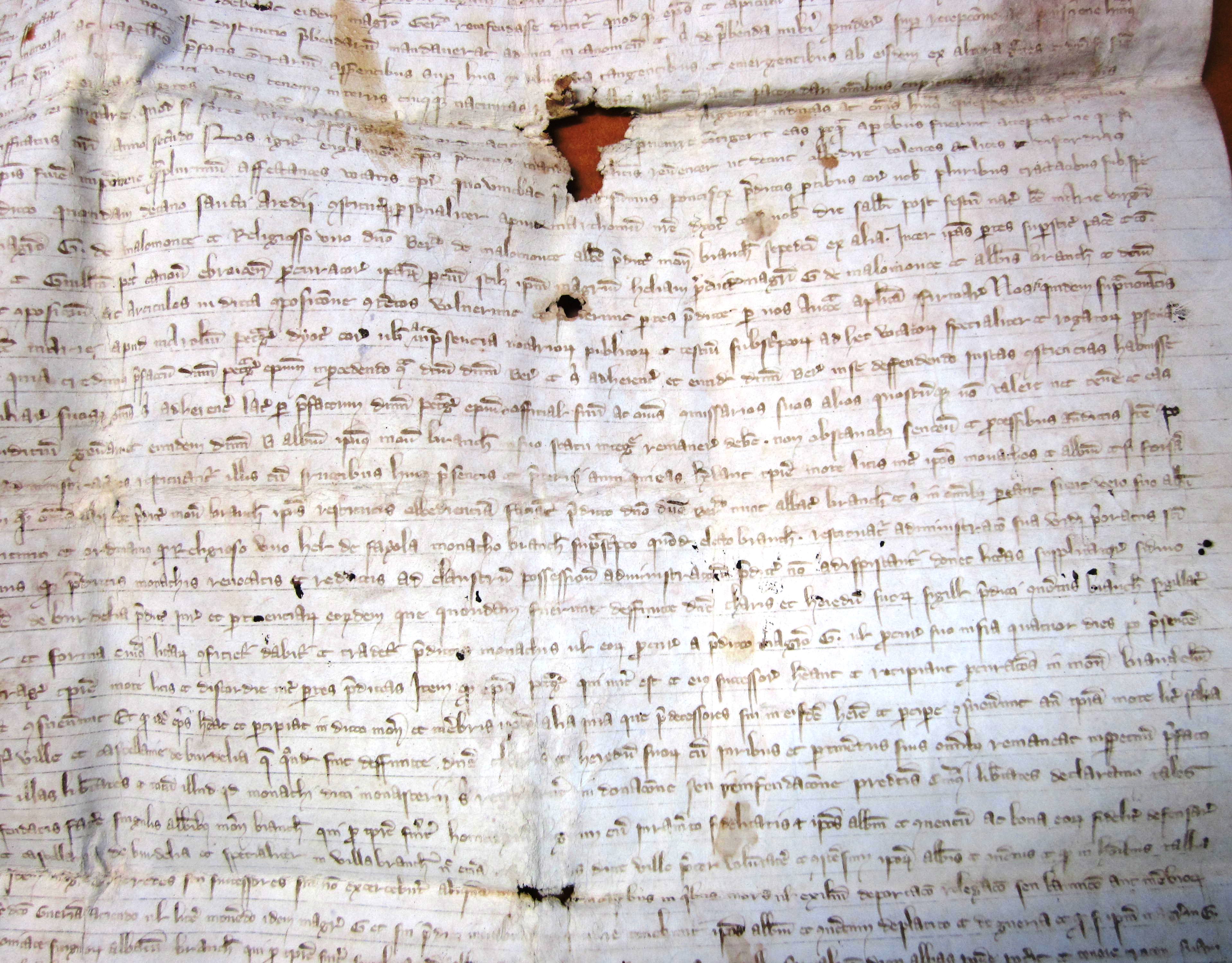 Acte par lequel Bernard de Maumont, abbé de Brantôme, donna à foi et hommage à Gérald de Maumont son frère la moitié de la terre et châtellenie de Bourdeille, ce qui fut confirmé par sentence arbitrale, et l’hommage réservé à l’abbaye de Brantôme (août 1294) (vidimus de 1319).