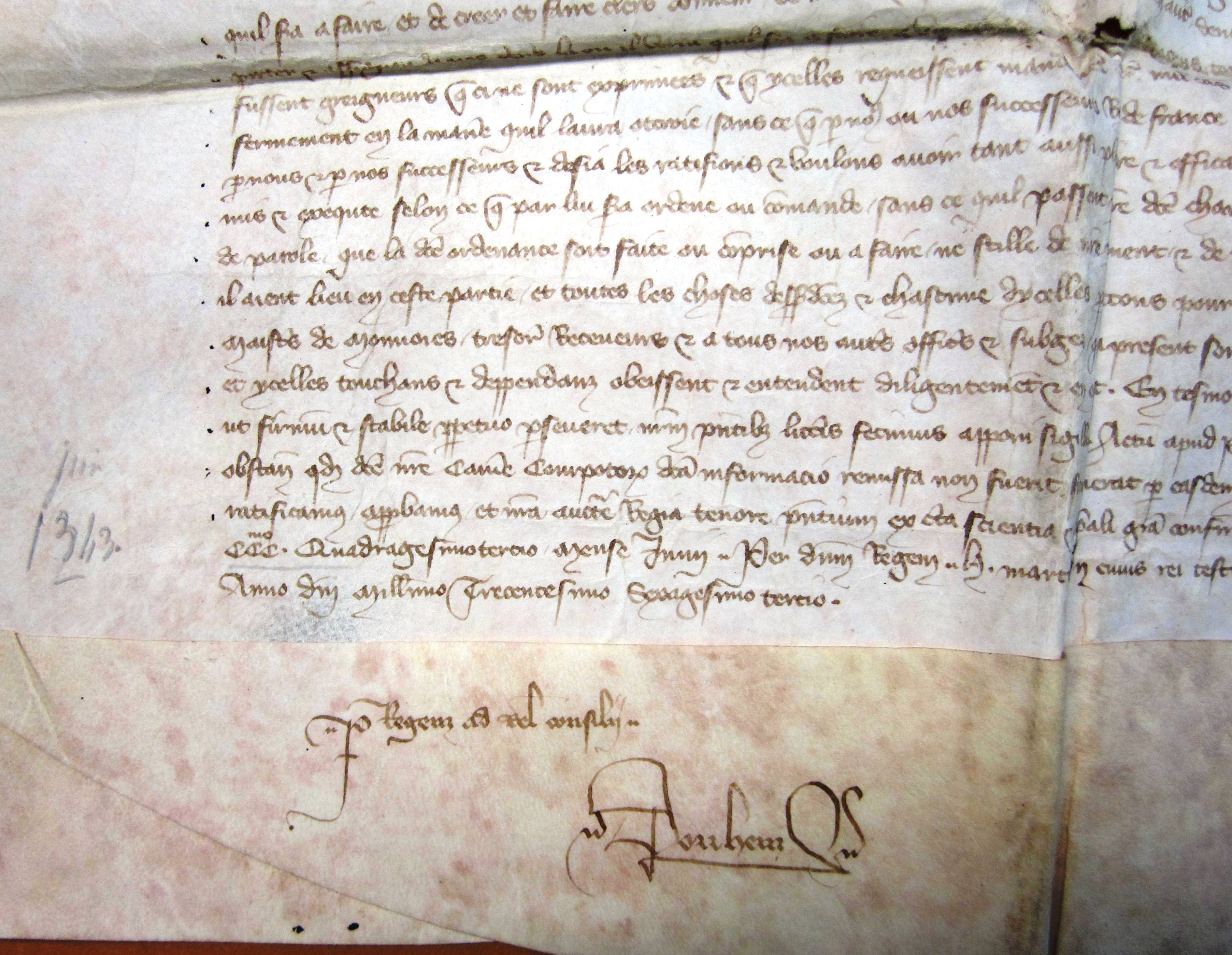 Lettres du roi Jean le Bon confirmant la donation faite par son père le roi Philippe de Valois de la châtellenie de Bourdeille au comte de Périgord, en échange de la ville de Bergerac (1363)