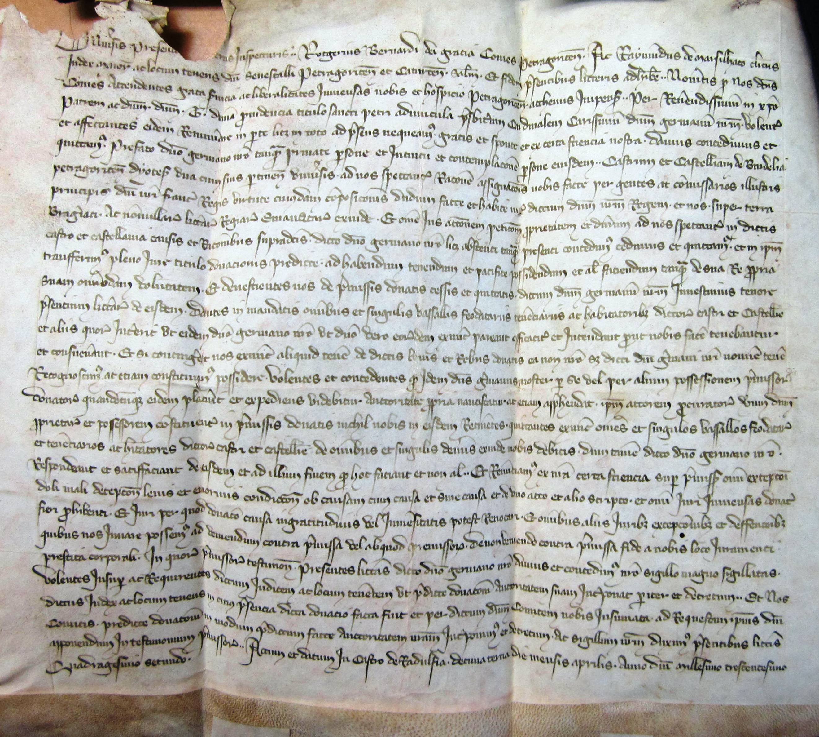 Donation de la châtellenie de Bourdeille par Roger-Bernard, comte de Périgord, au cardinal Taleyrand de Périgord, son frère (1342 v. st.).