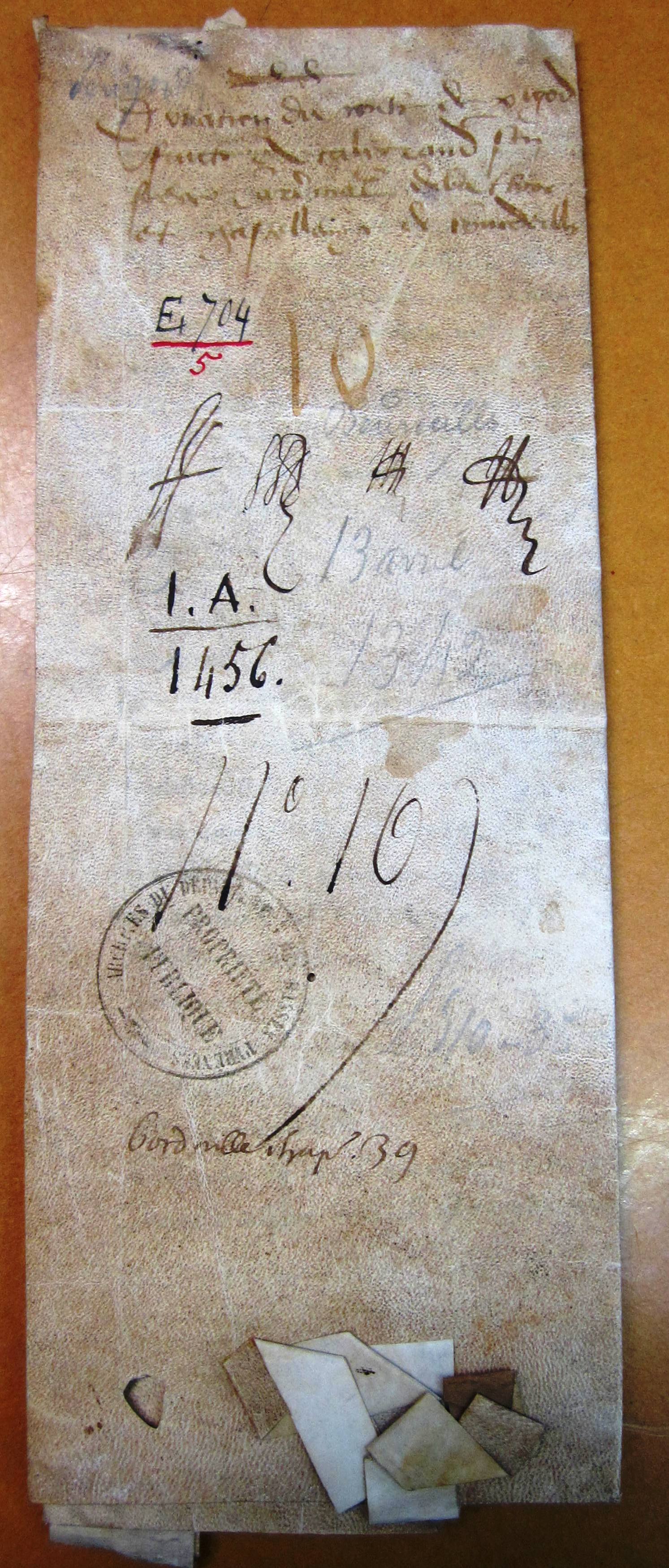 - chapitre 39 (Bourdeille), document cotté n° 10 dans l'inventaire de Jean Fabri - E 607 (f° 373 r°).