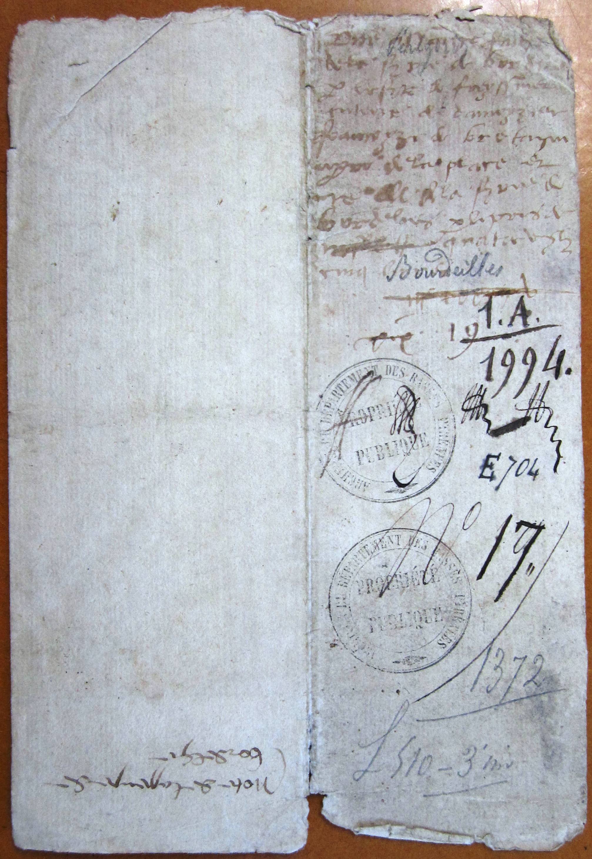 (Bourdeille), document cotté n° 19 dans l'inventaire