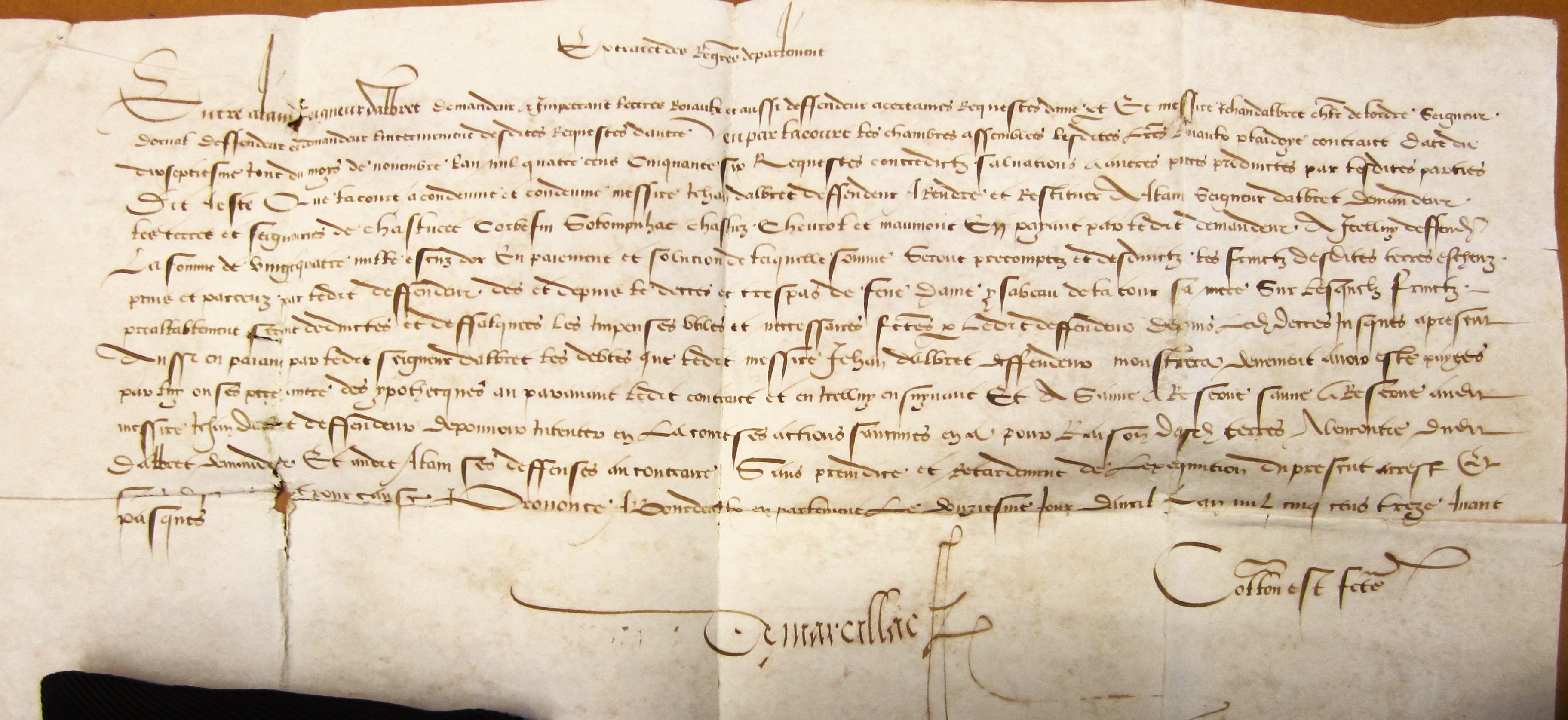 Procès entre Alain d'Albret et Jean d'Albret, seigneur d'Orval, touchant la seigneurie de Châlus (17 novembre 1456)