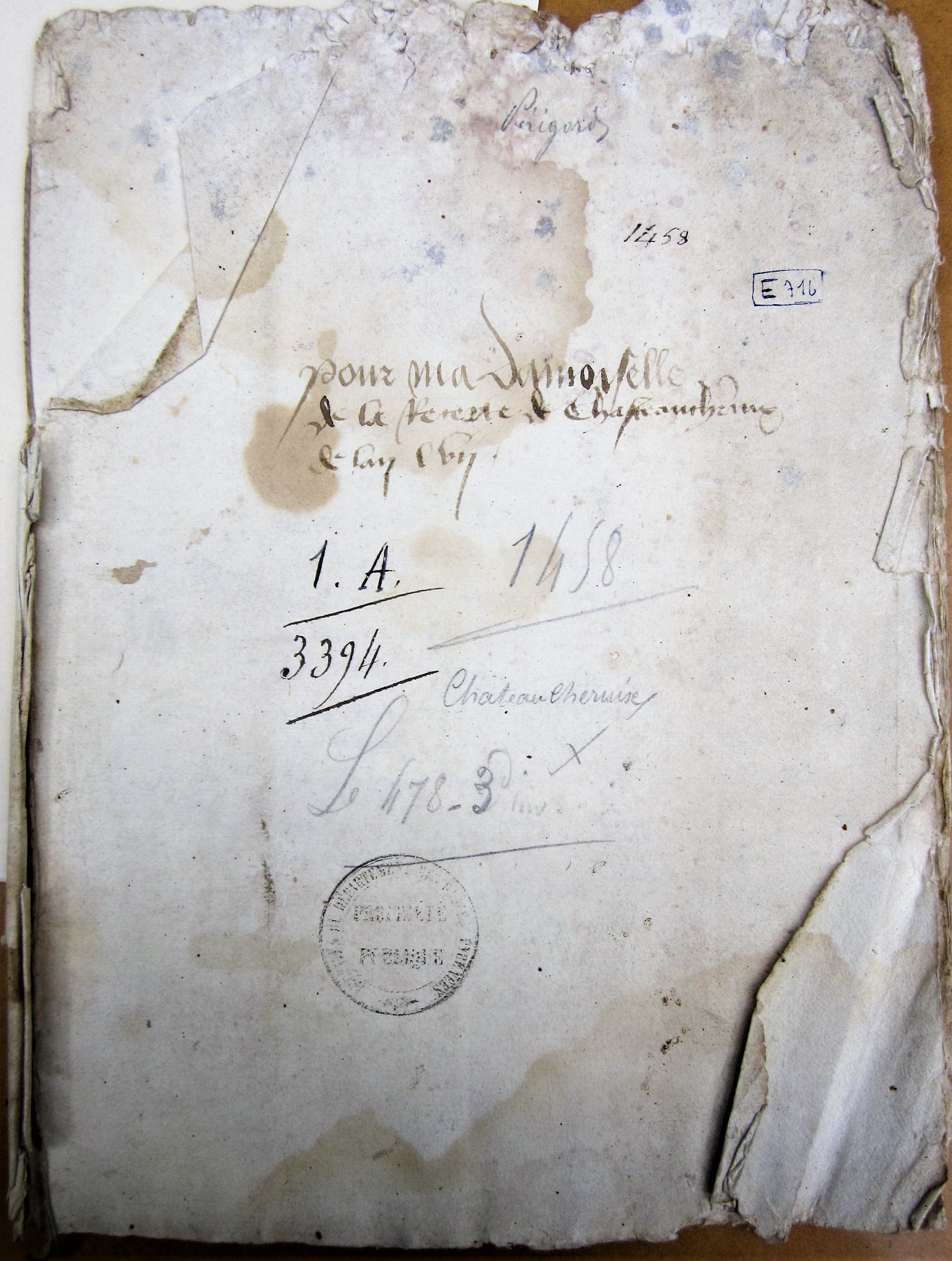 de l’an finissant 1458, sur lequel est écrit : Est."