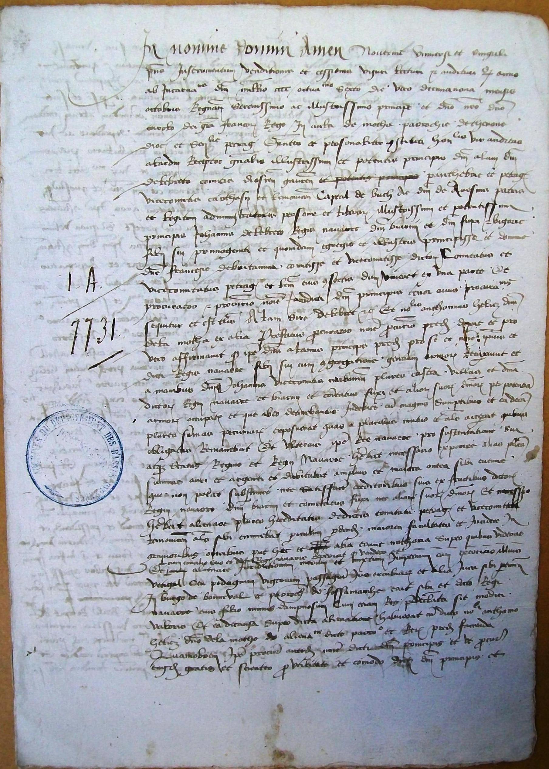 de la paroisse de Fossemagne par Jean, roi de Navarre, à Antoine Hélie,