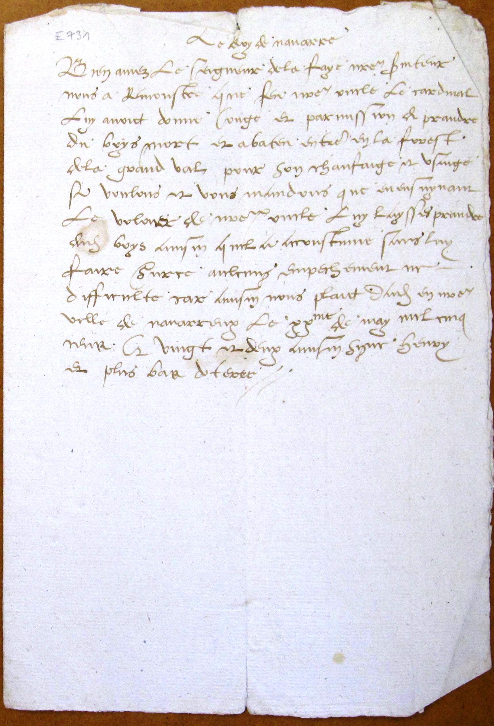 Henri II de Navarre à François de La Faye, son maître
