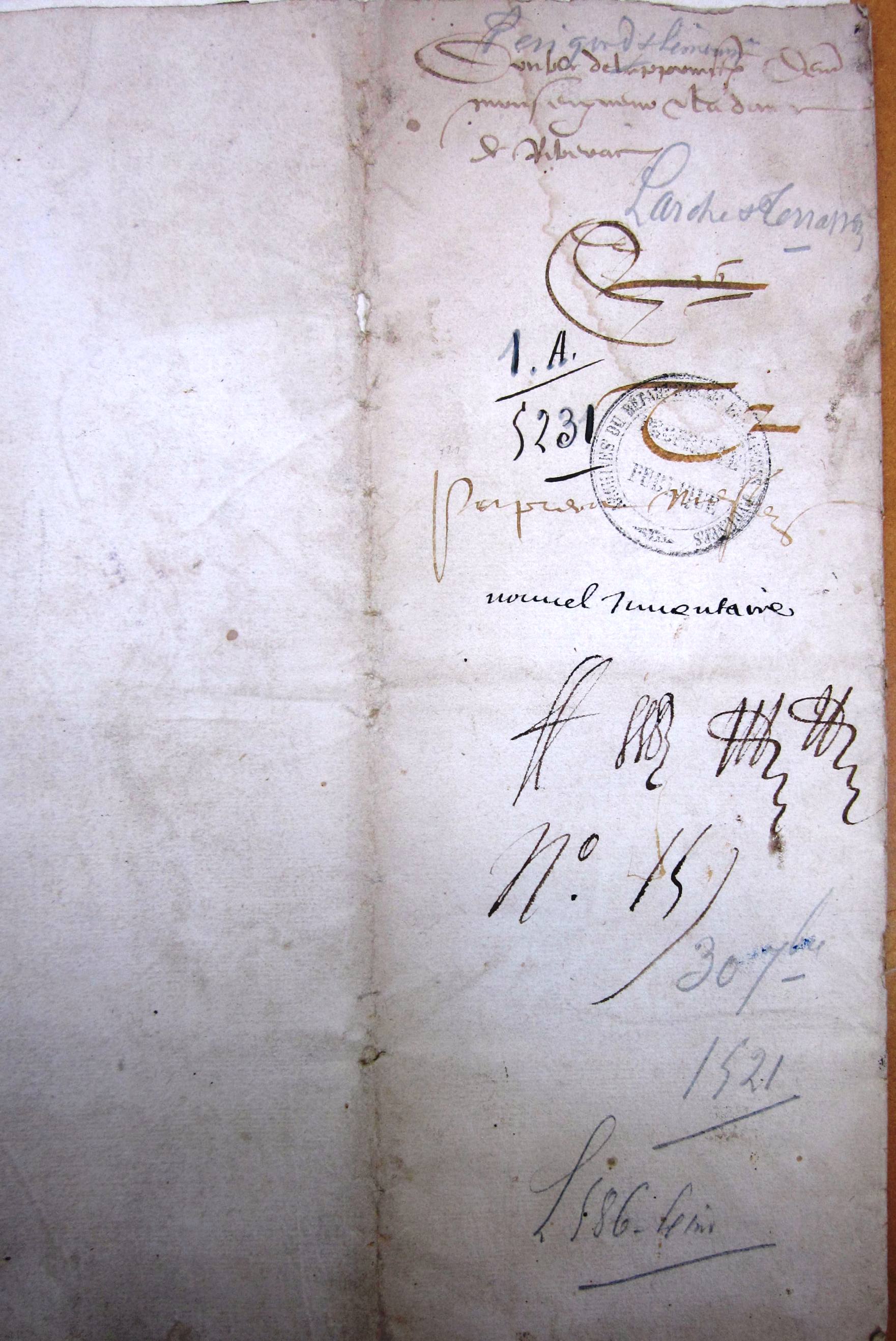 d'Aydie, au sujet des seigneuries de Larche et Terrasson (30 sept. 1521).
