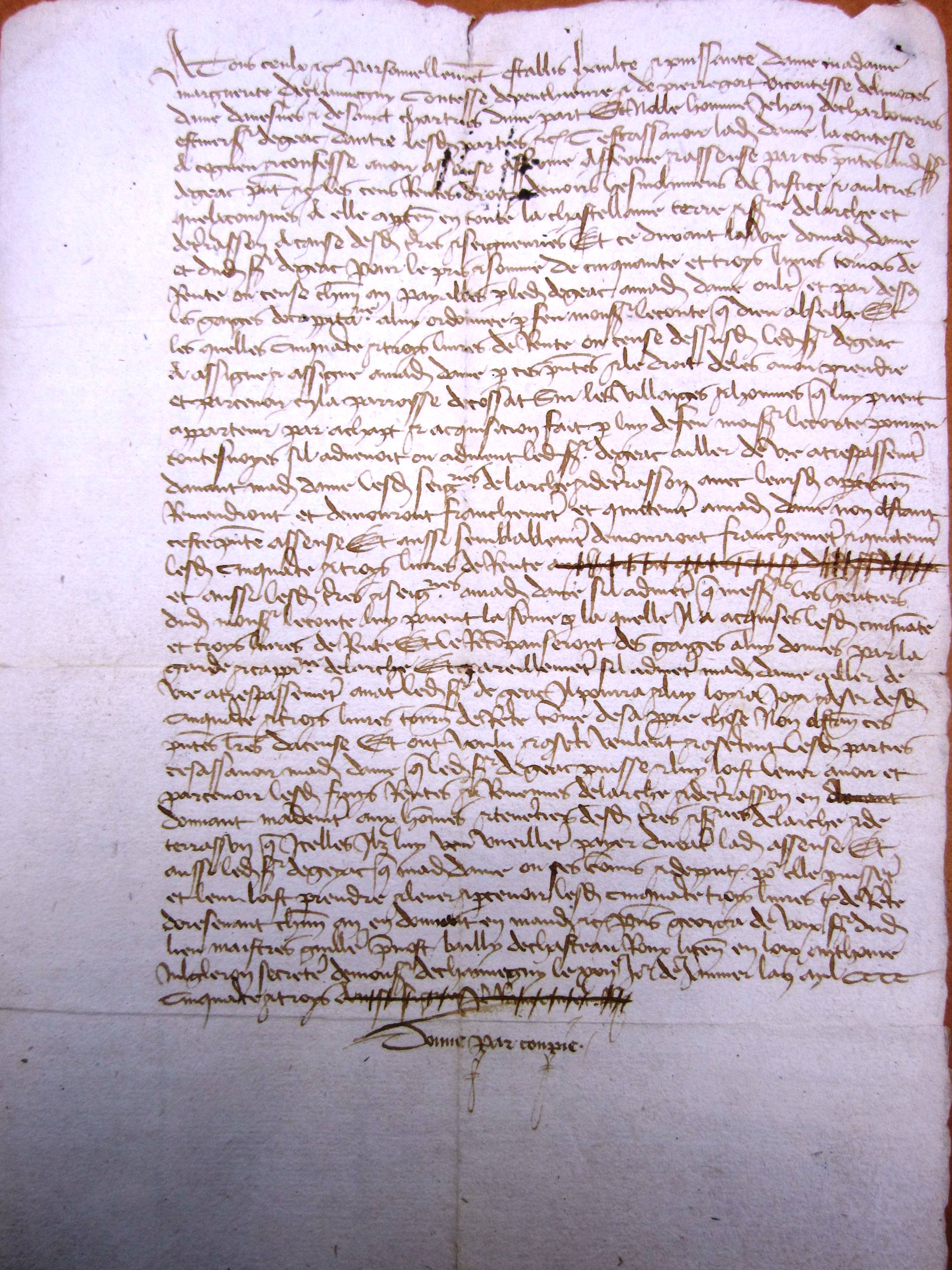 Double d'un arrentement entre Marguerite de Chauvigny et Jean de Charbonnières concernant la justice de Larche et Terrasson (22 janvier 1453 - v. st.)