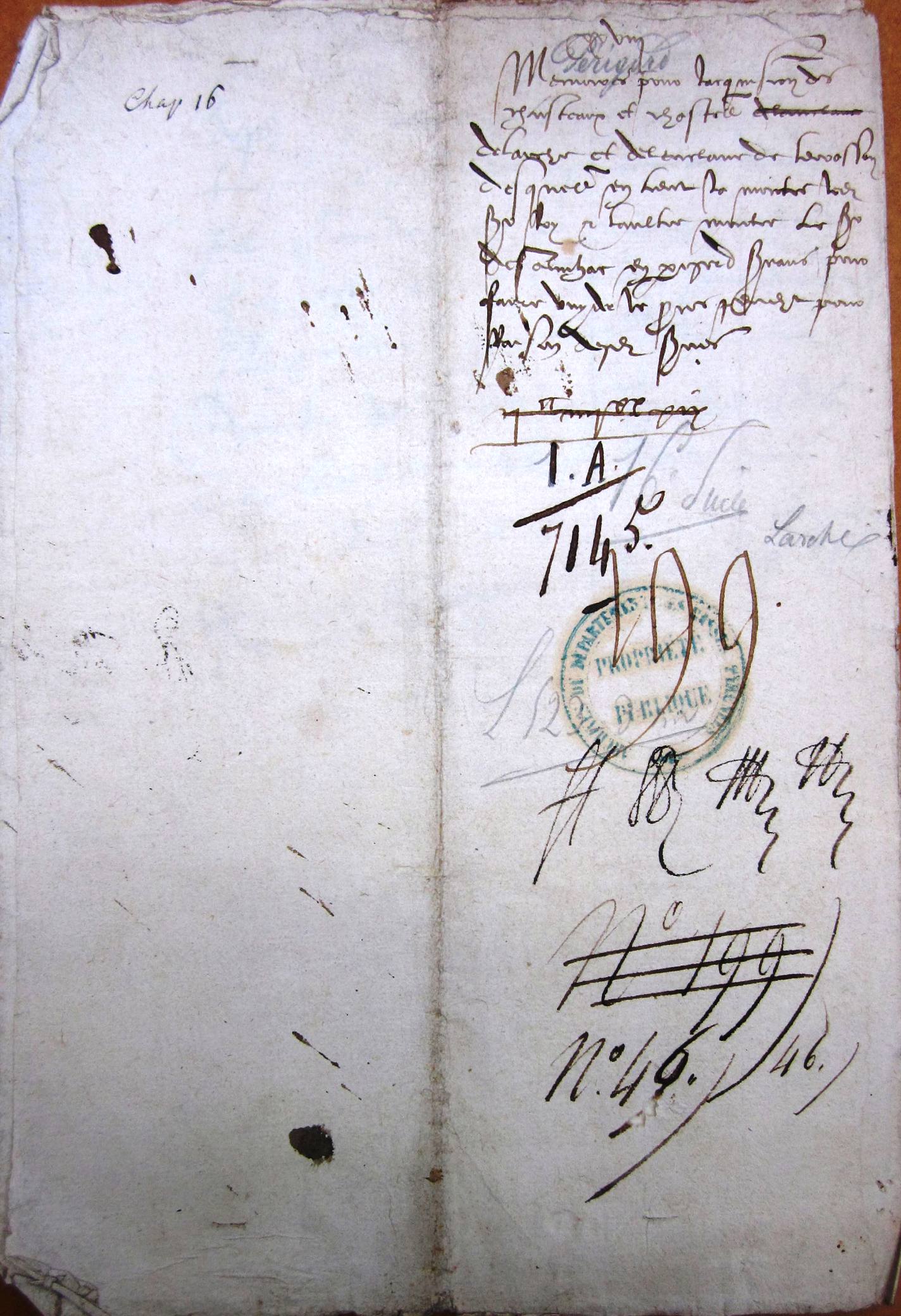 Mémoire our le roi de Navarre sur l'acquisition de la moitié de Larche et Terrasson par le cardinal Amanieu d'Albret (16ème siècle) .
