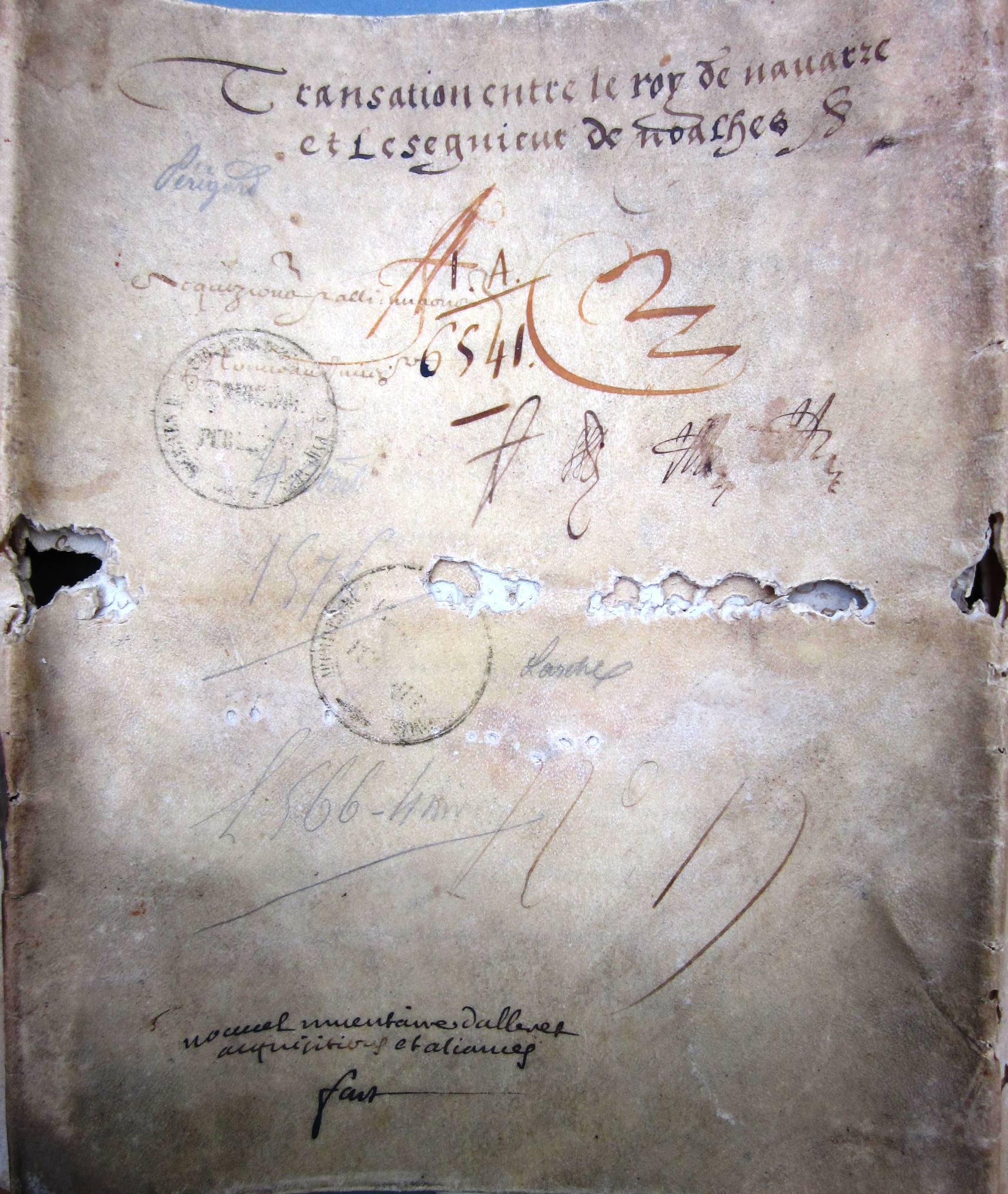 Transaction entre le roi de Navarre et le seigneur de Noailles concernant Larche, Terrasson et Nadaillac (4 août 1576).