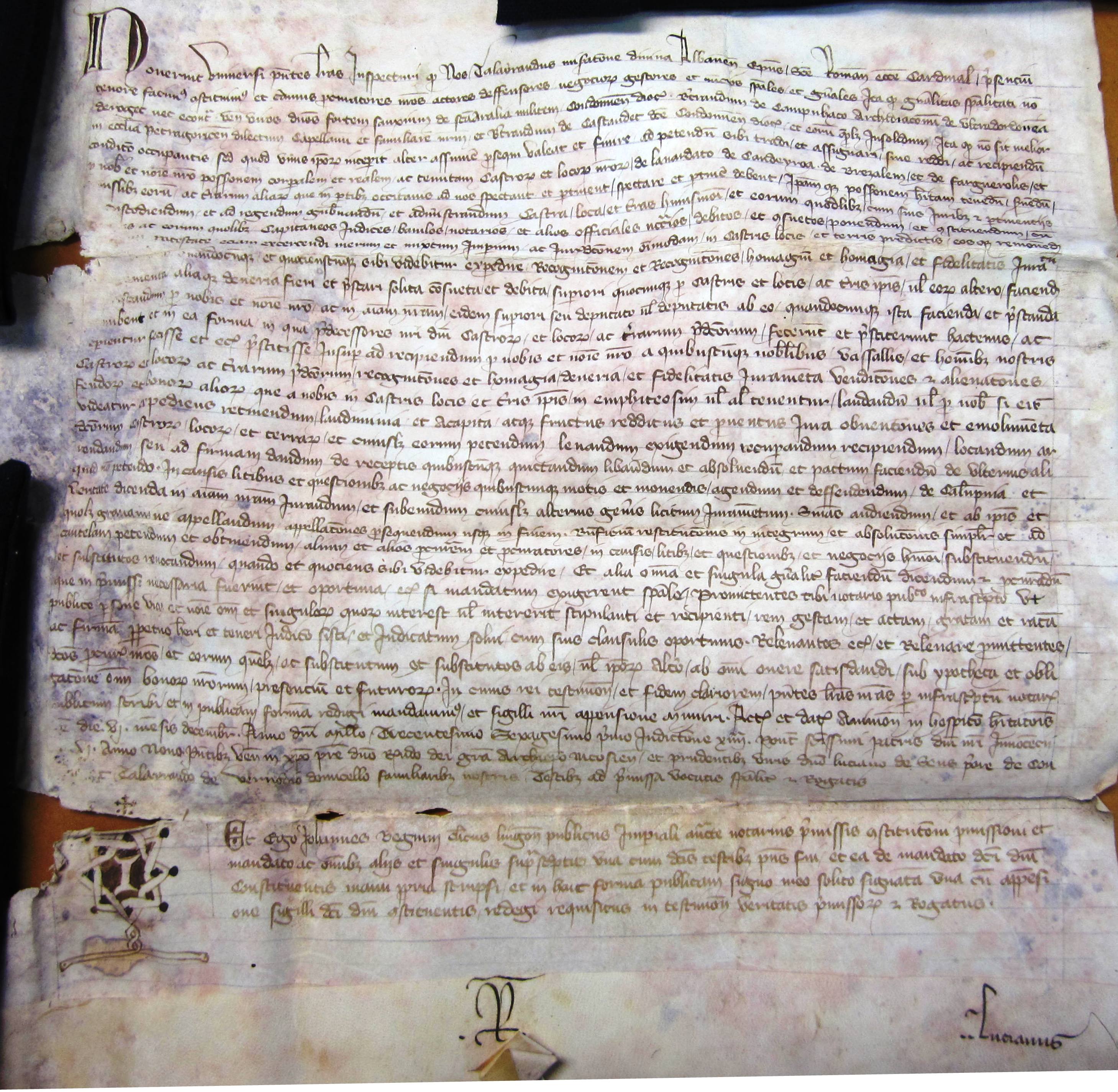 Procuration donnée par Talleyrand, cardinal de Périgord, pour prendre possession des terres de Laverdac, Cauderoue, etc. (1361).