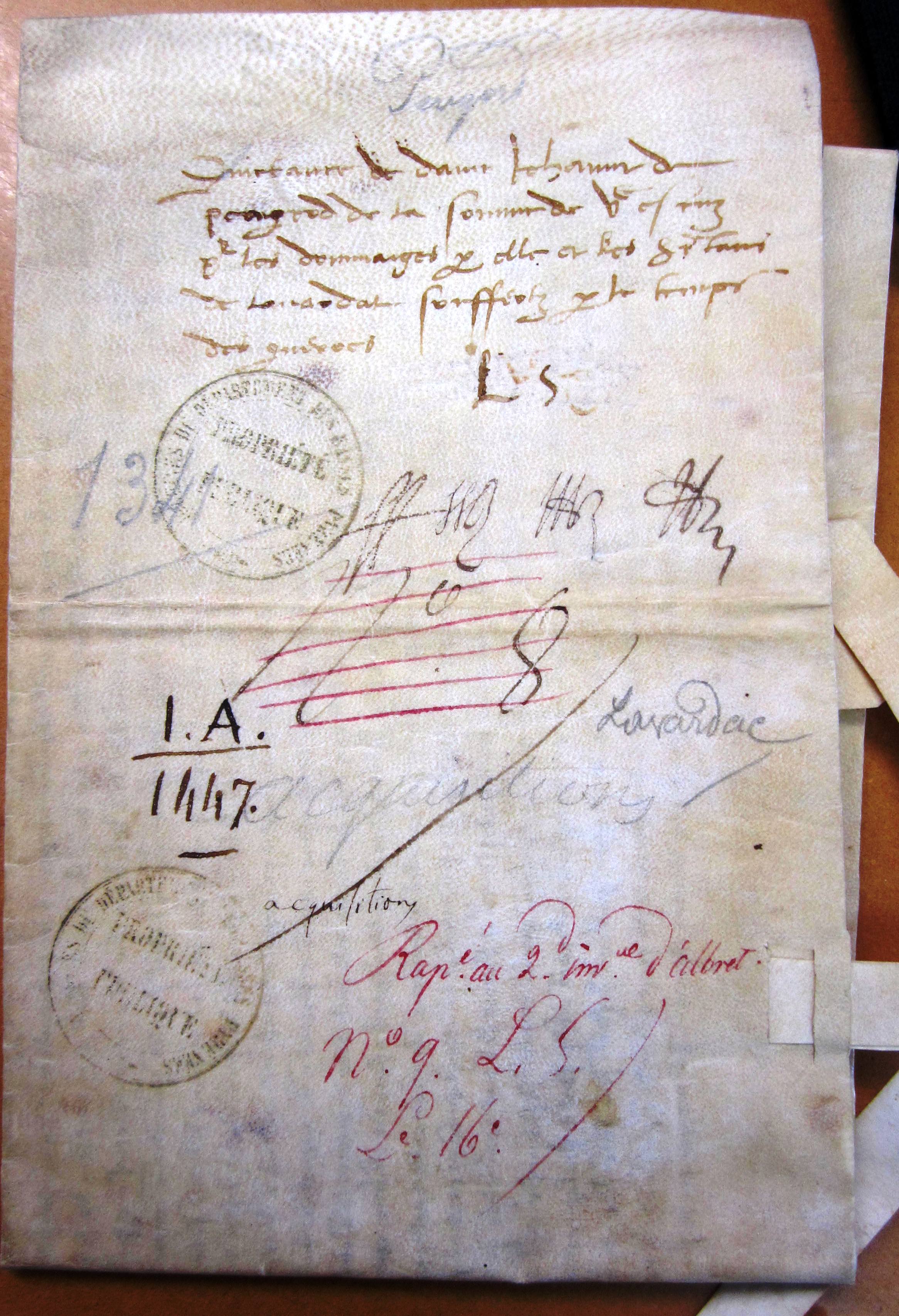 Quittance de dame Jeanne de Périgord pour 500 écus (1341).