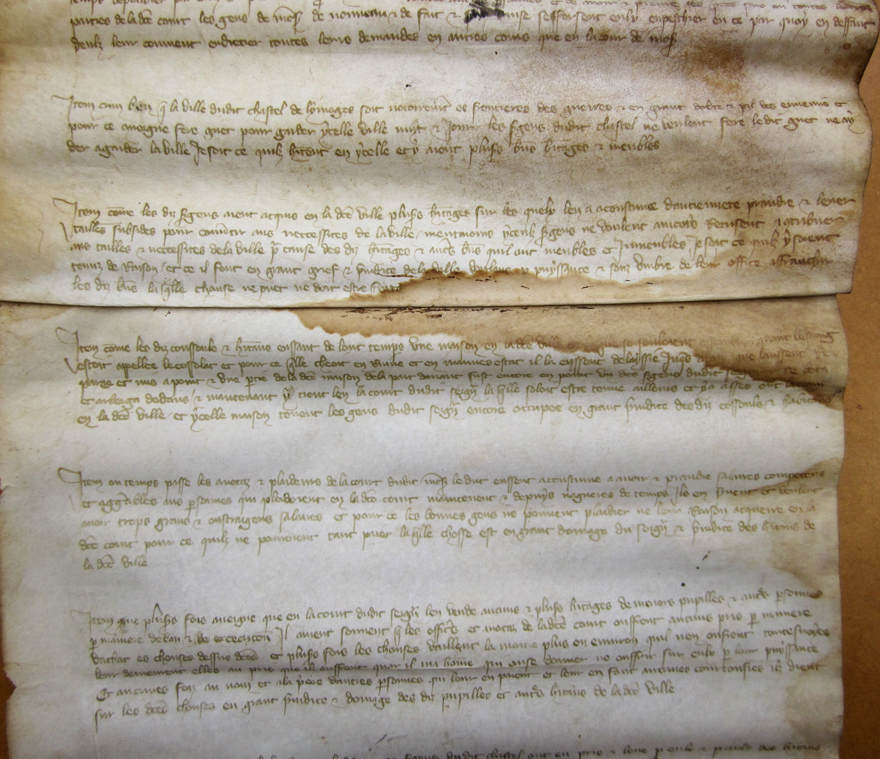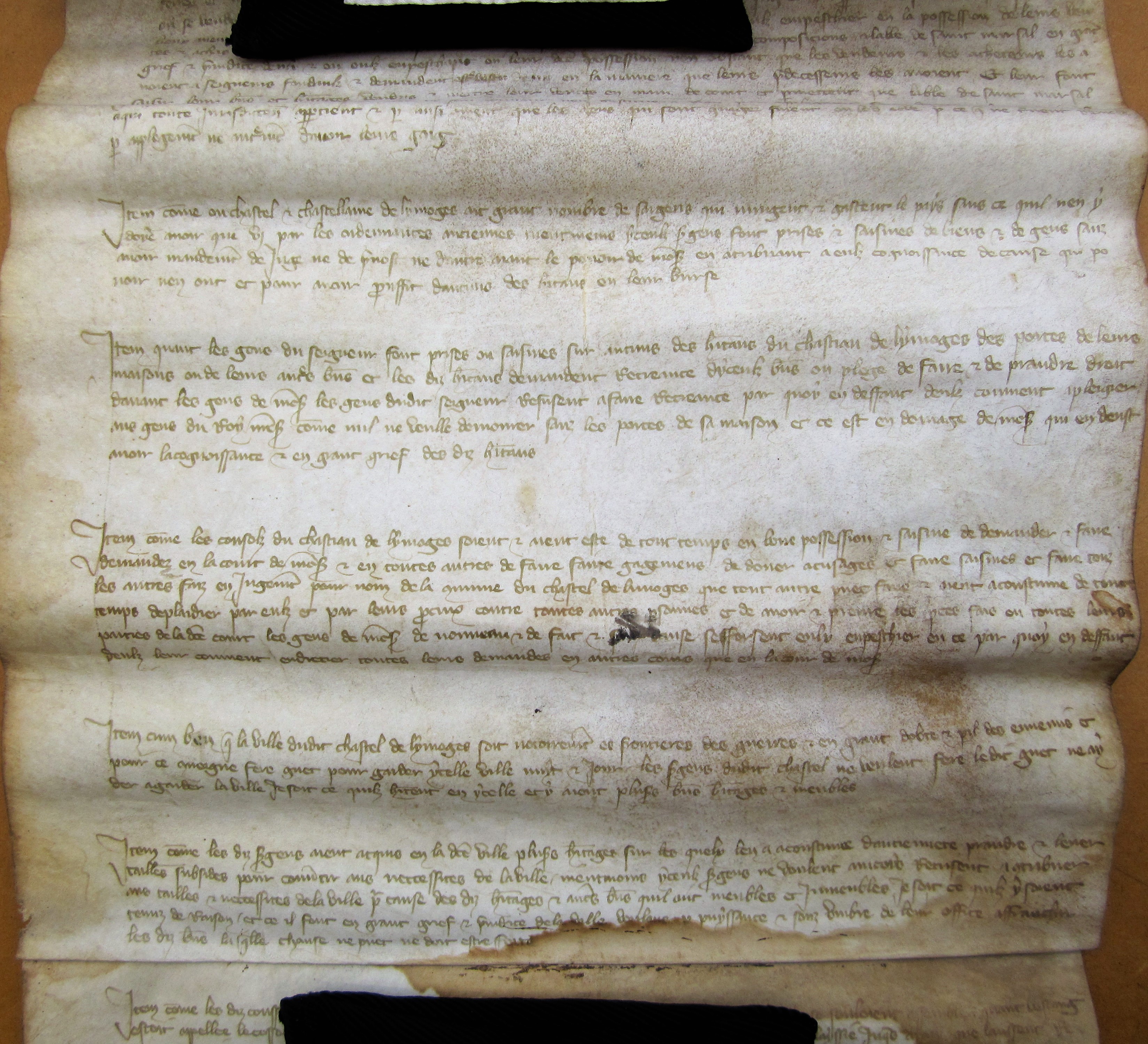 en parchemin contenant les griefs que les gens du vicomte faisoient aux